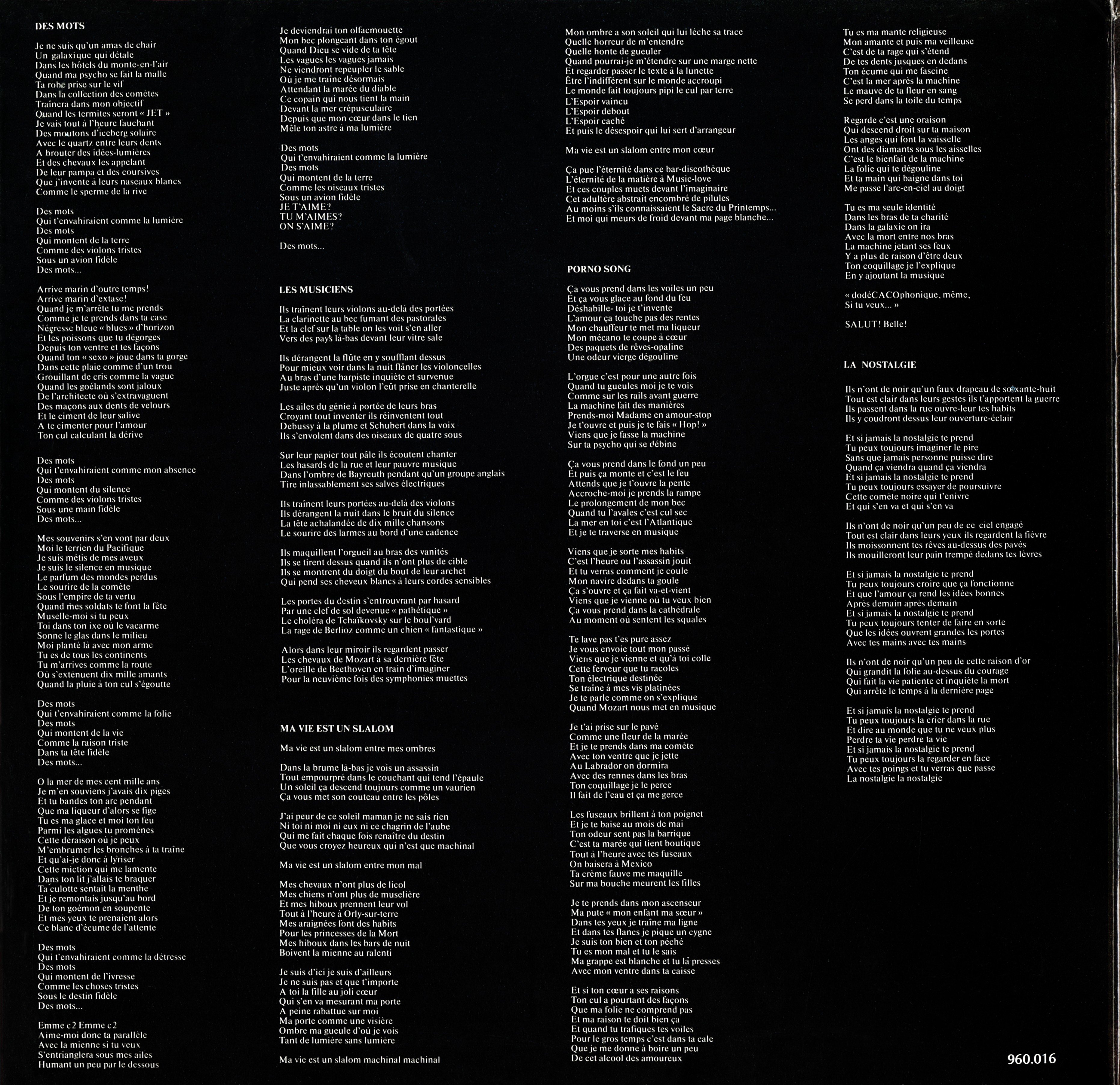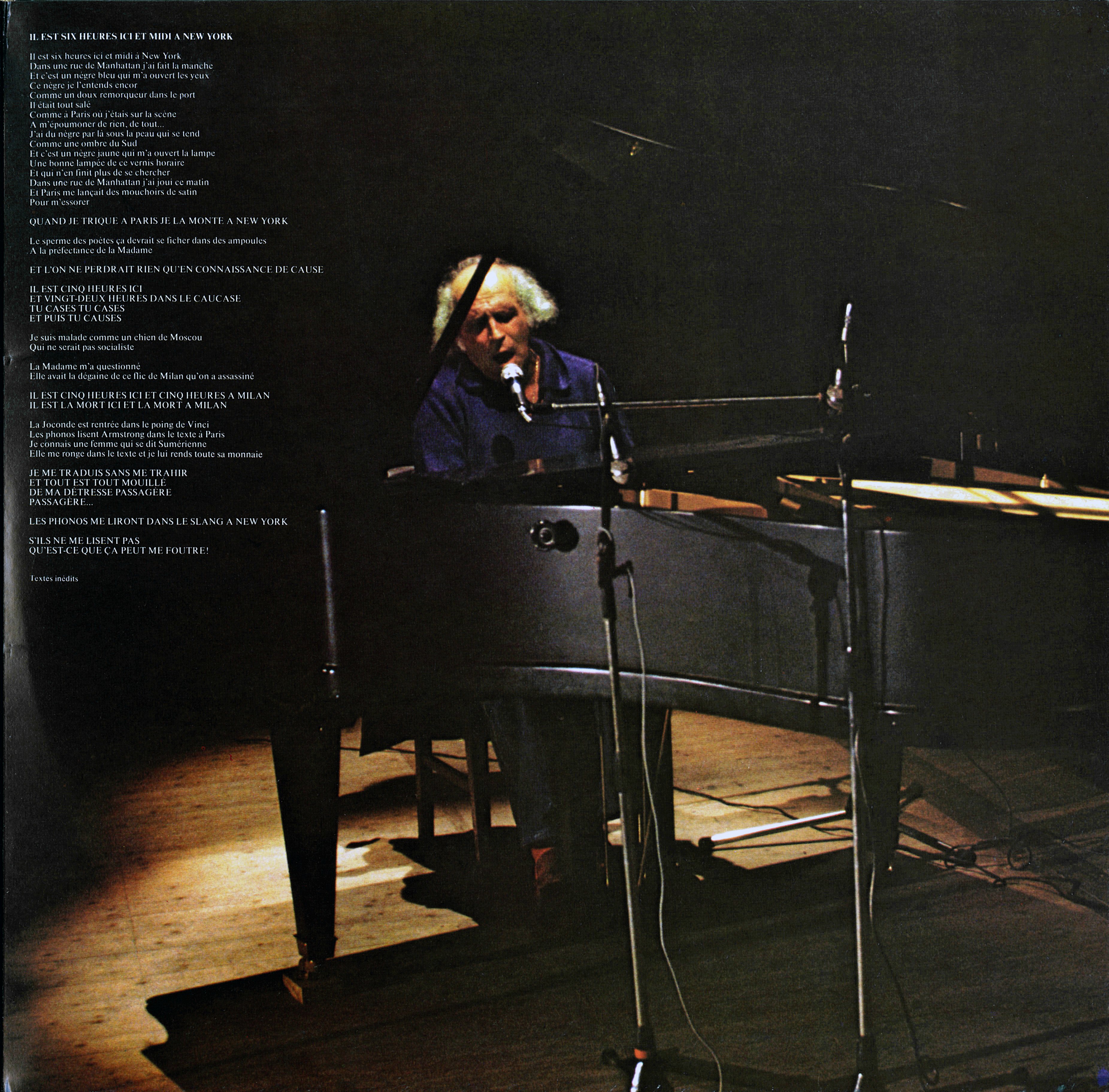 Des mots – Les musiciens – Ma vie est un slalom – Porno song – La nostalgie – Il est six heures ici… et midi à New-York