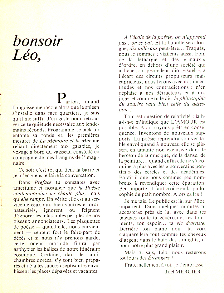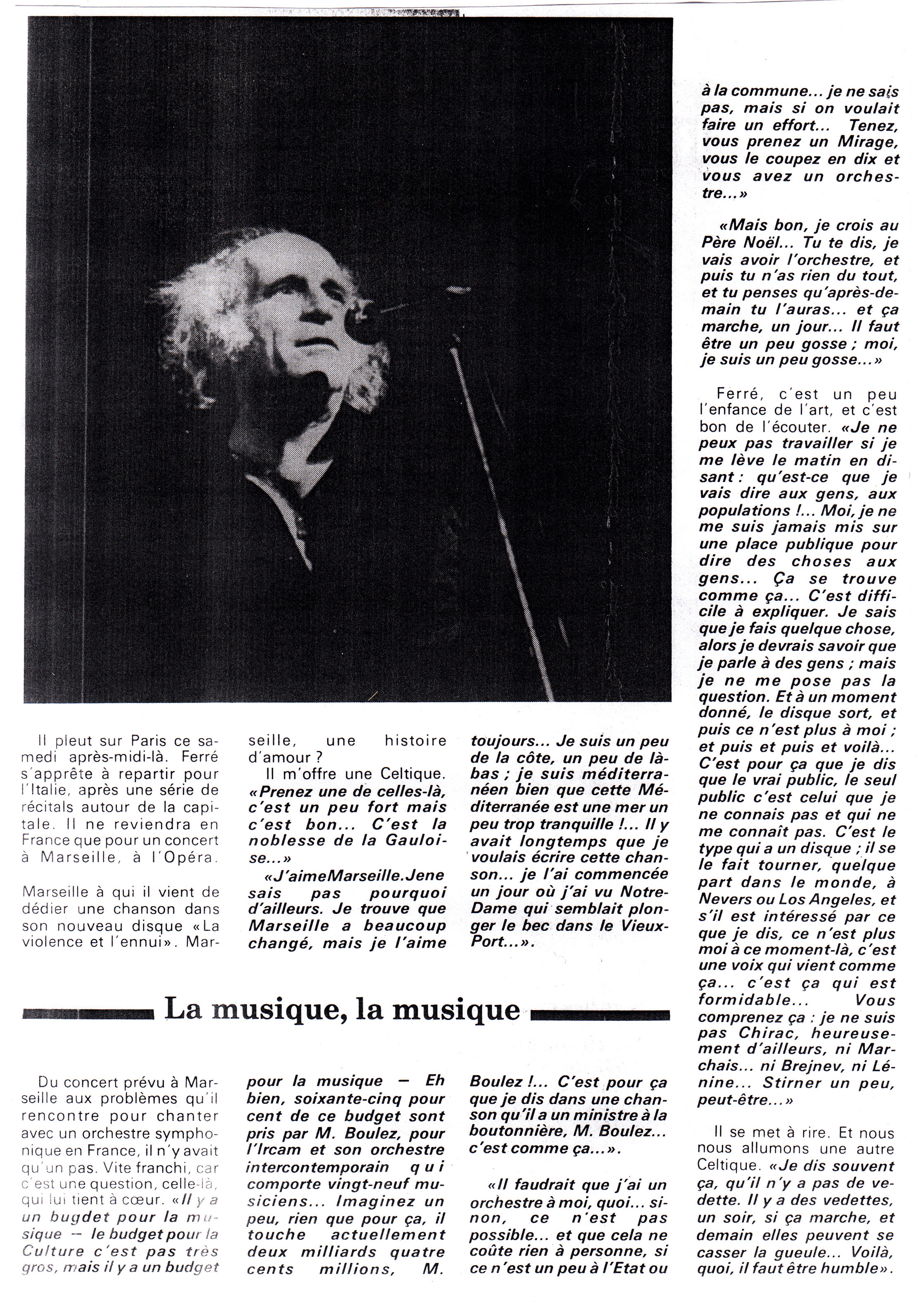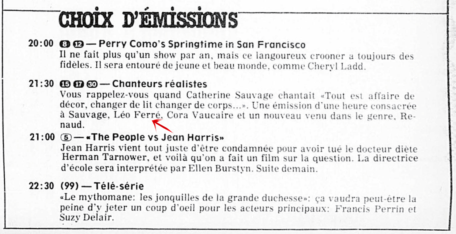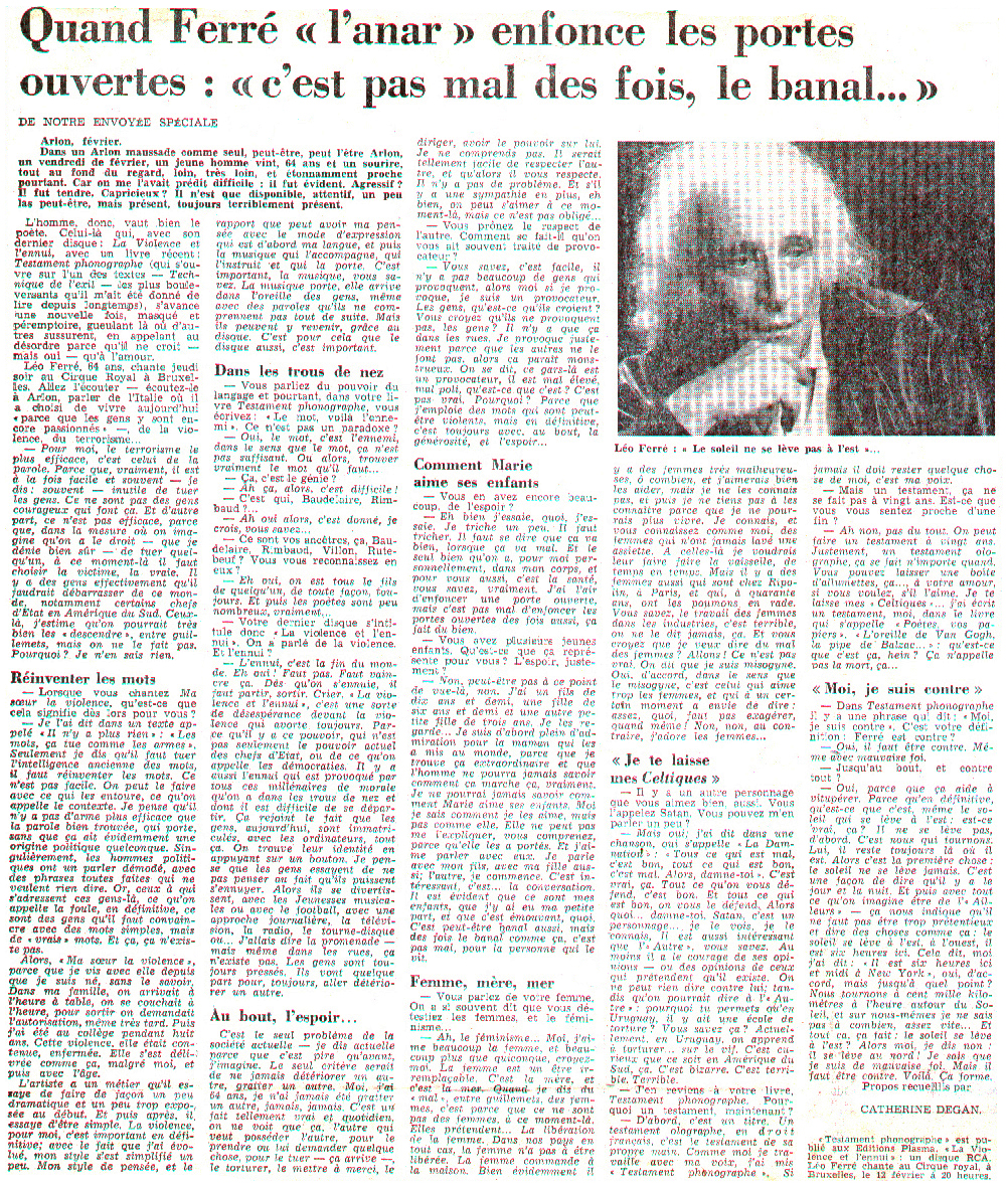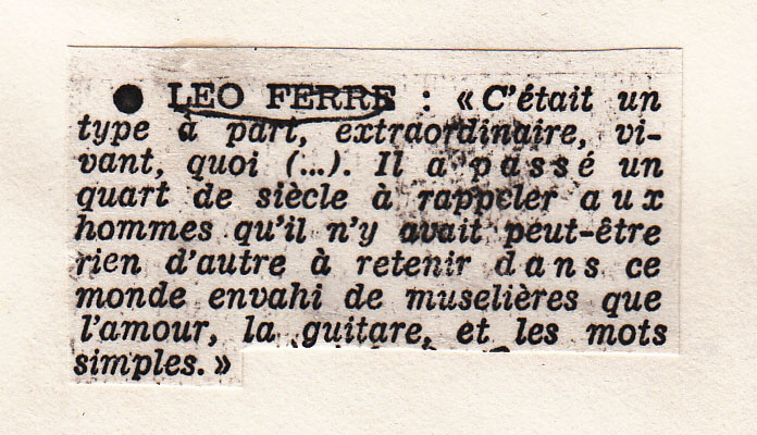 Témoignage par téléphone de Léo Ferré.