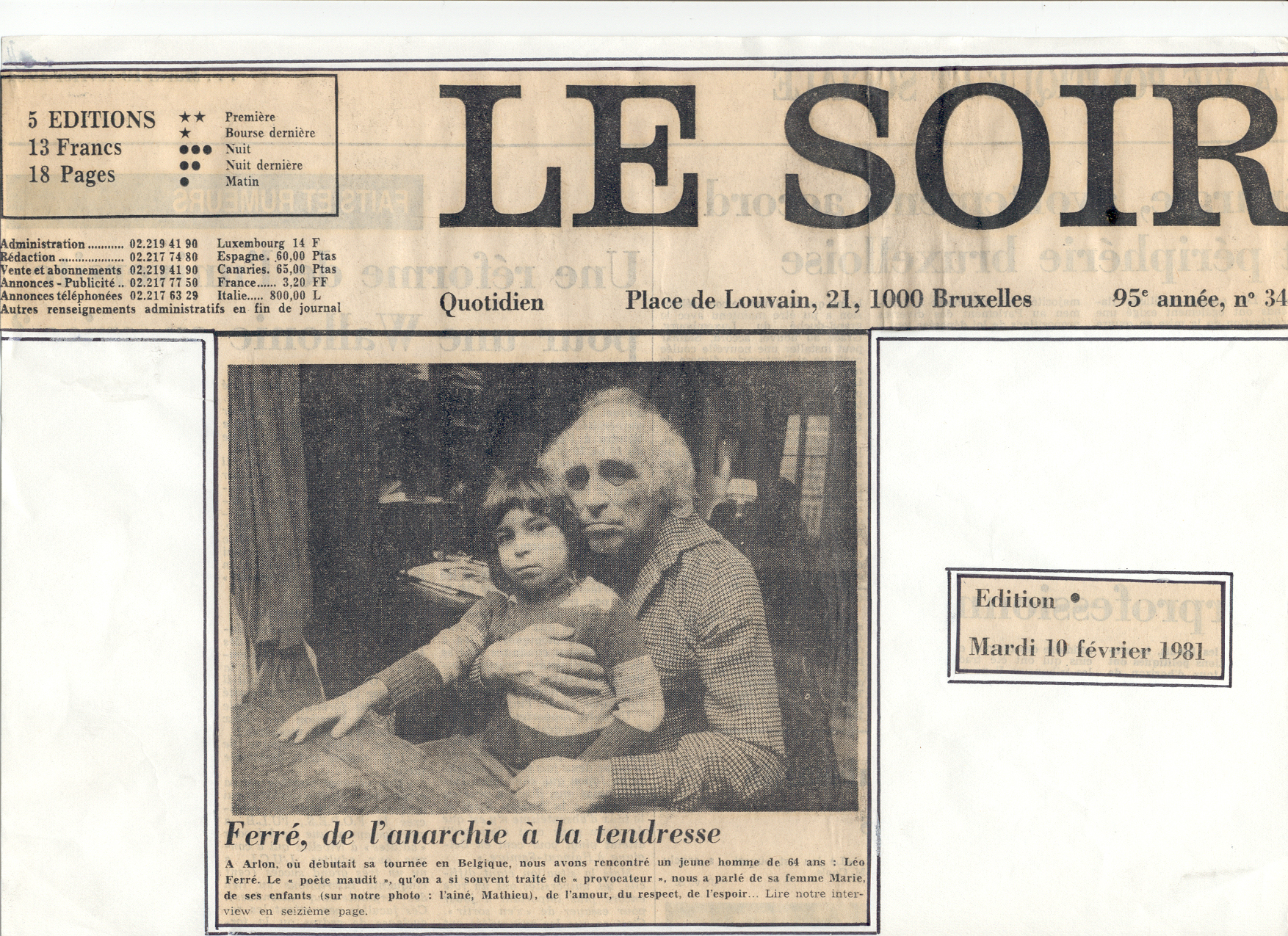 Le Soir de Bruxelles du 10/02/1981