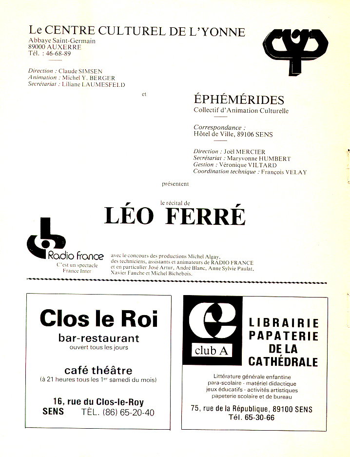 25.02 : Léo Ferré se produit à Sens.