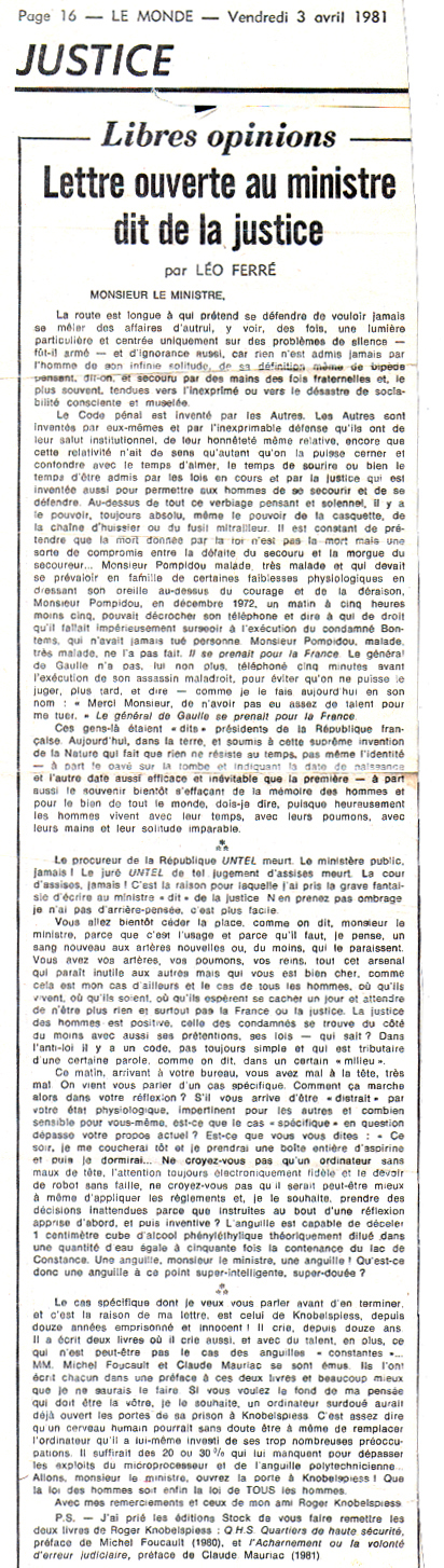 Justice - Libre opinions, par Léo Ferré
