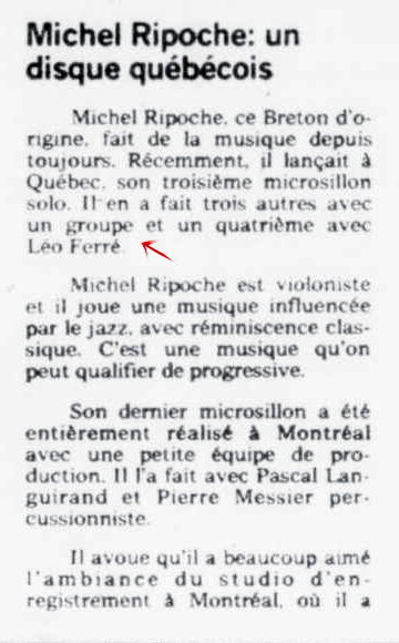 • Michel Ripoche : un disque québécois