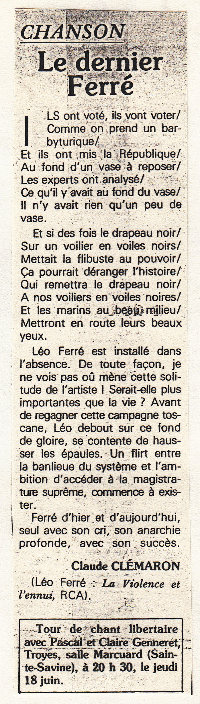 Chanson, par Claude Clémaron