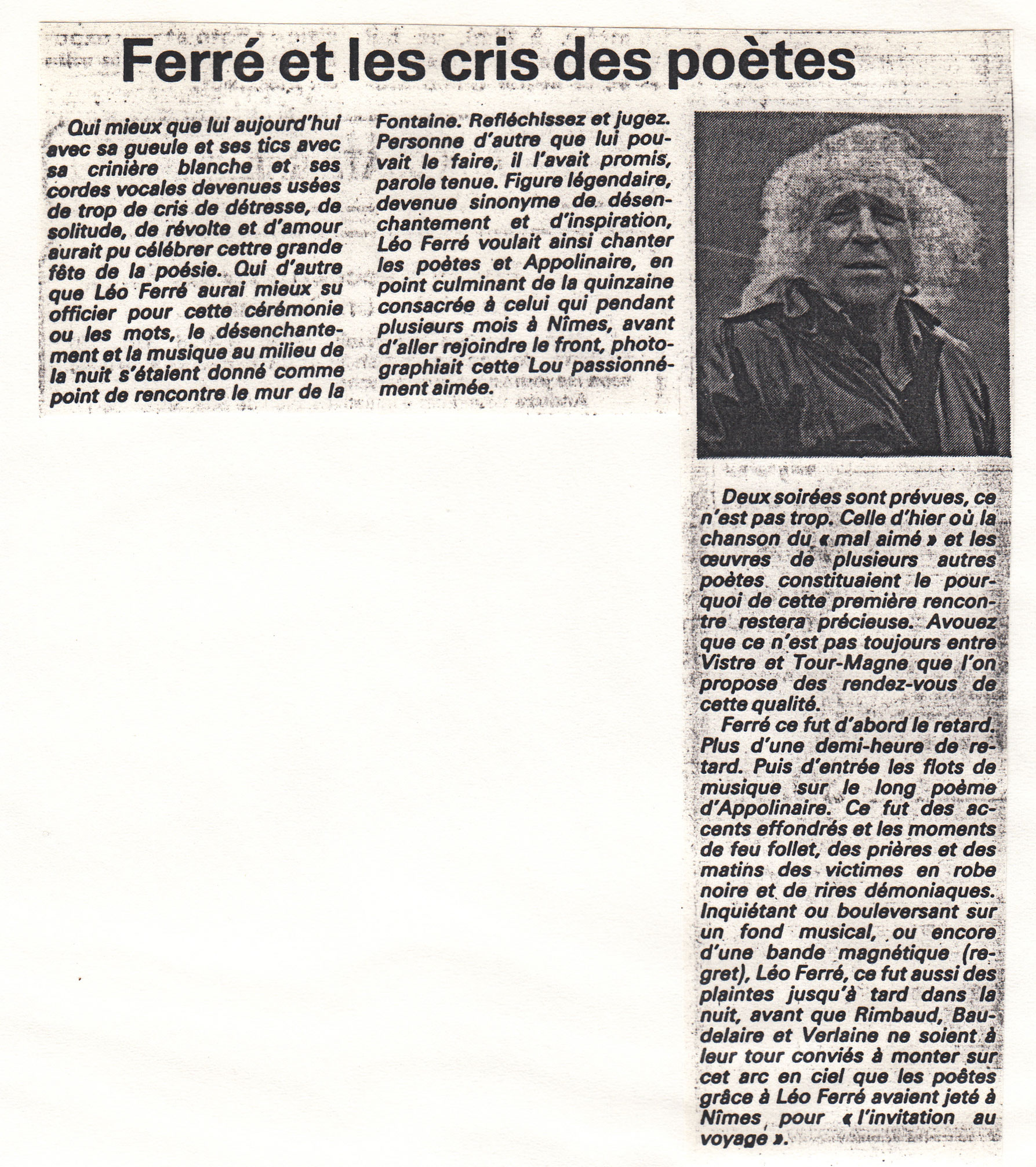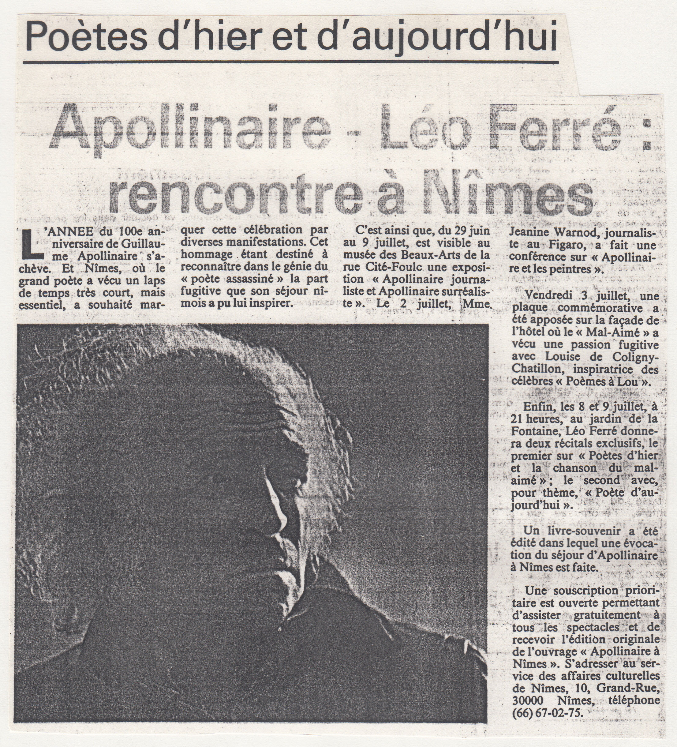 • Apollinaire - Léo Ferré : rencontre à Nîmes