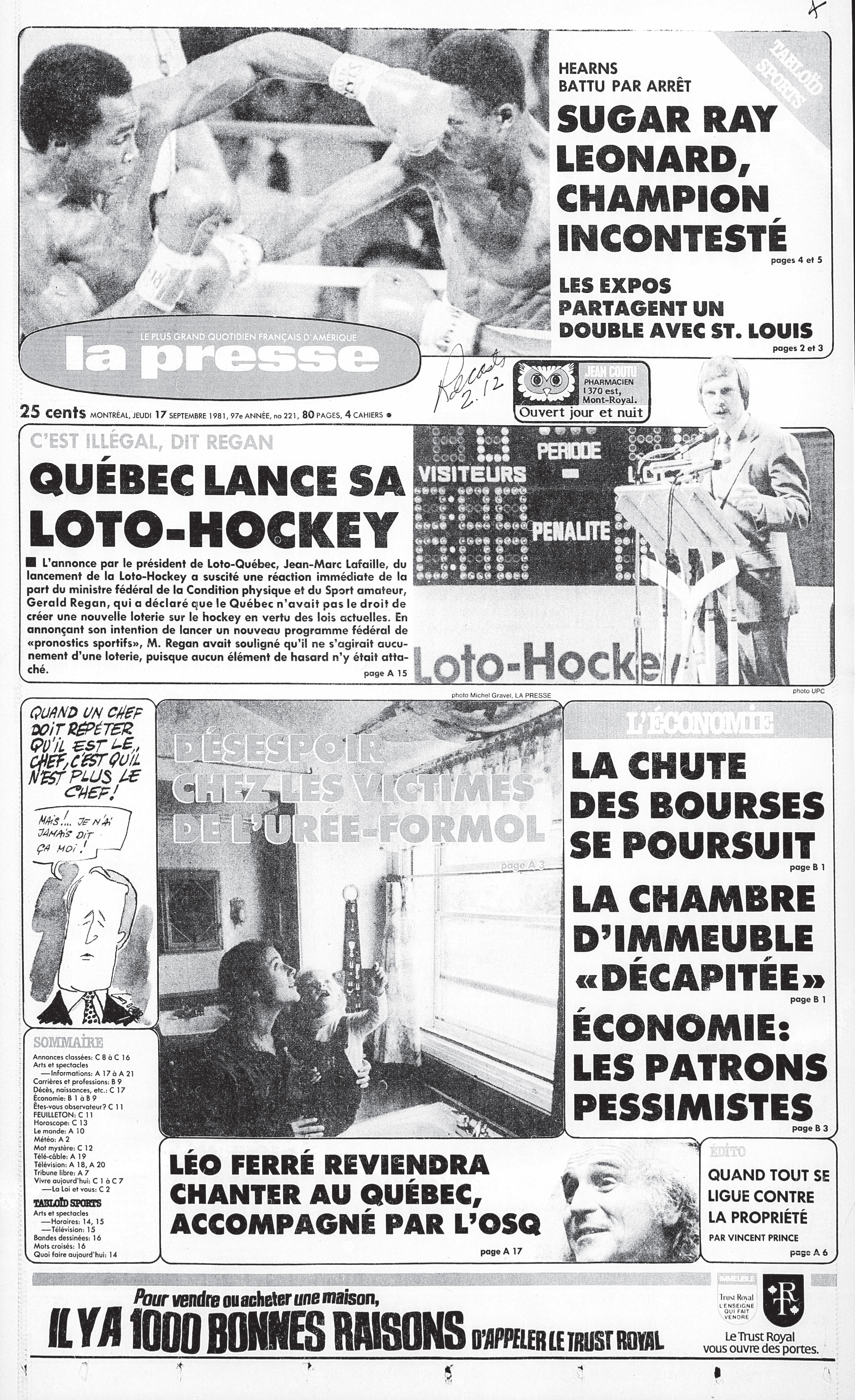 17.09 : La Presse, 17 septembre 1981, Cahier A