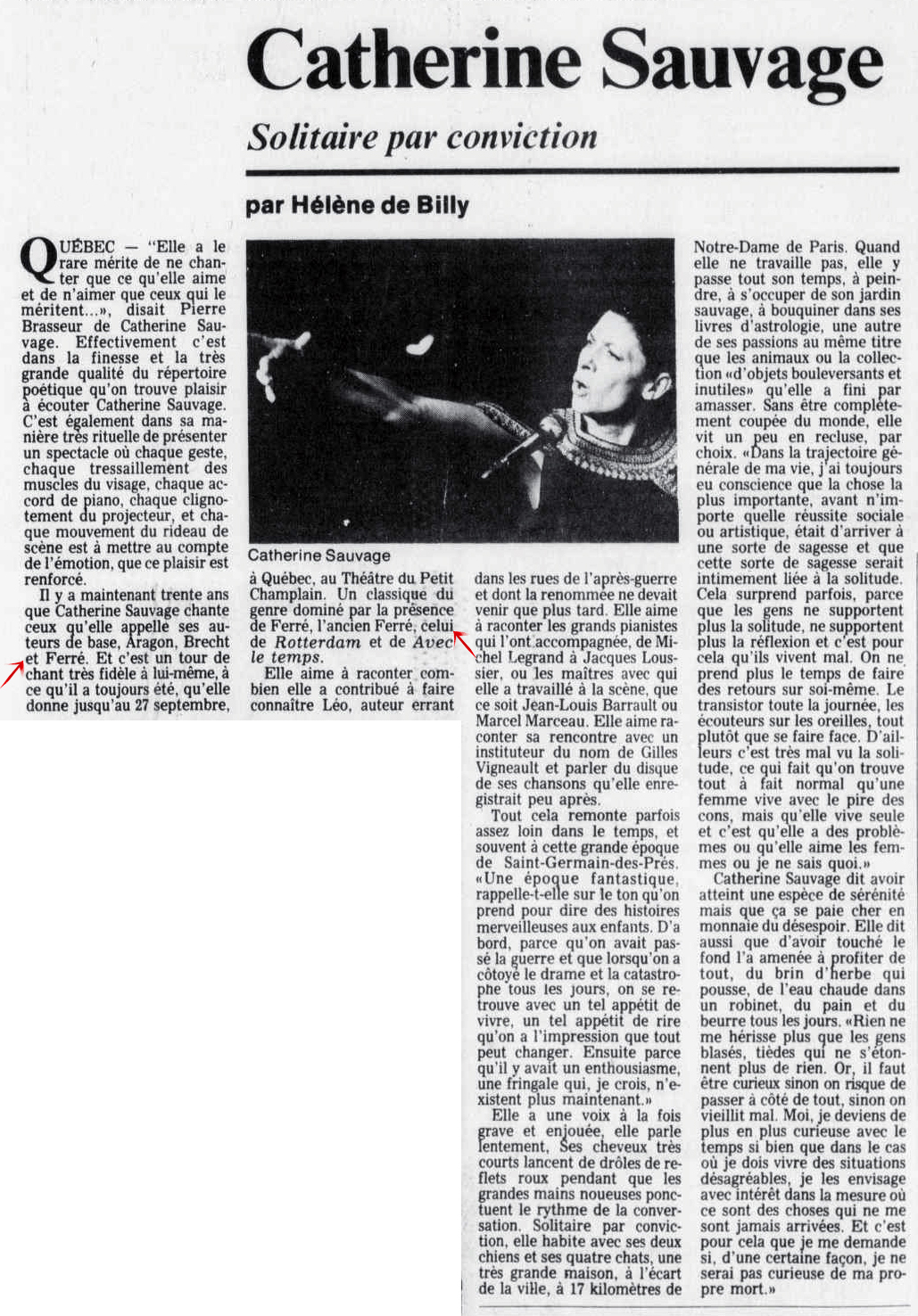 • Catherine Sauvage - Solitaire par conviction