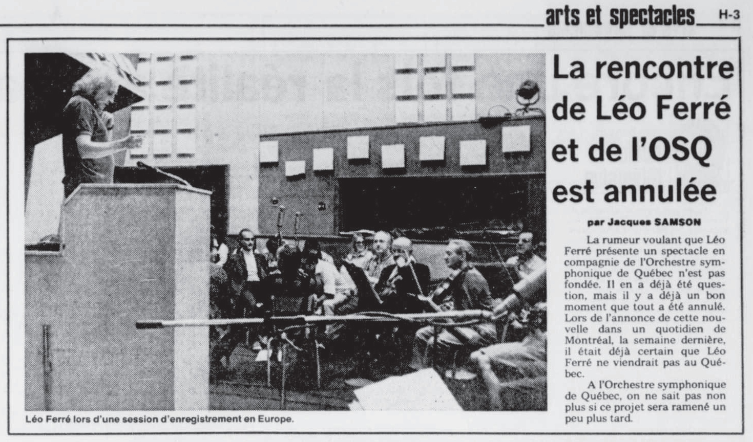 • La rencontre de Léo Ferré et de l'OSQ est annulée