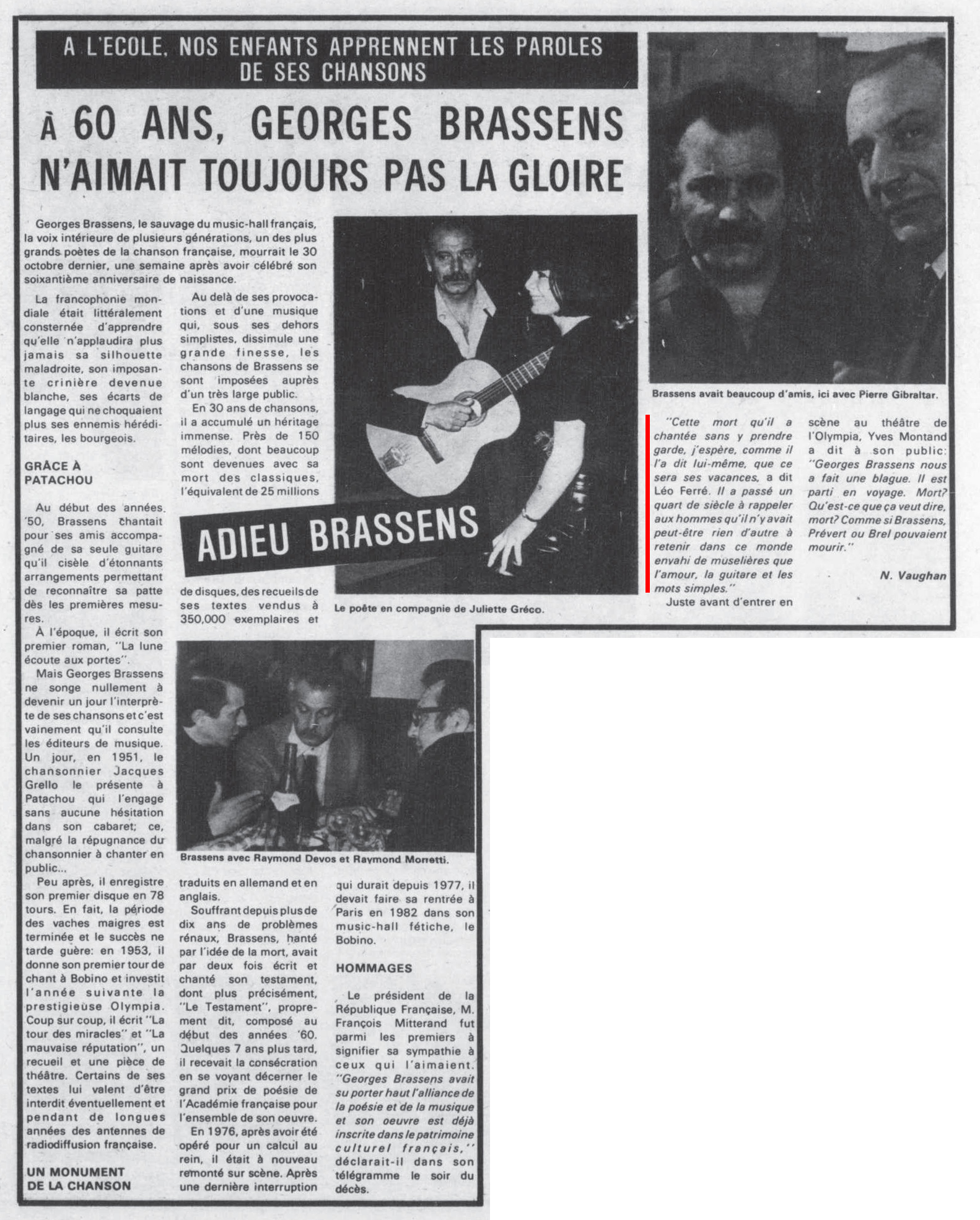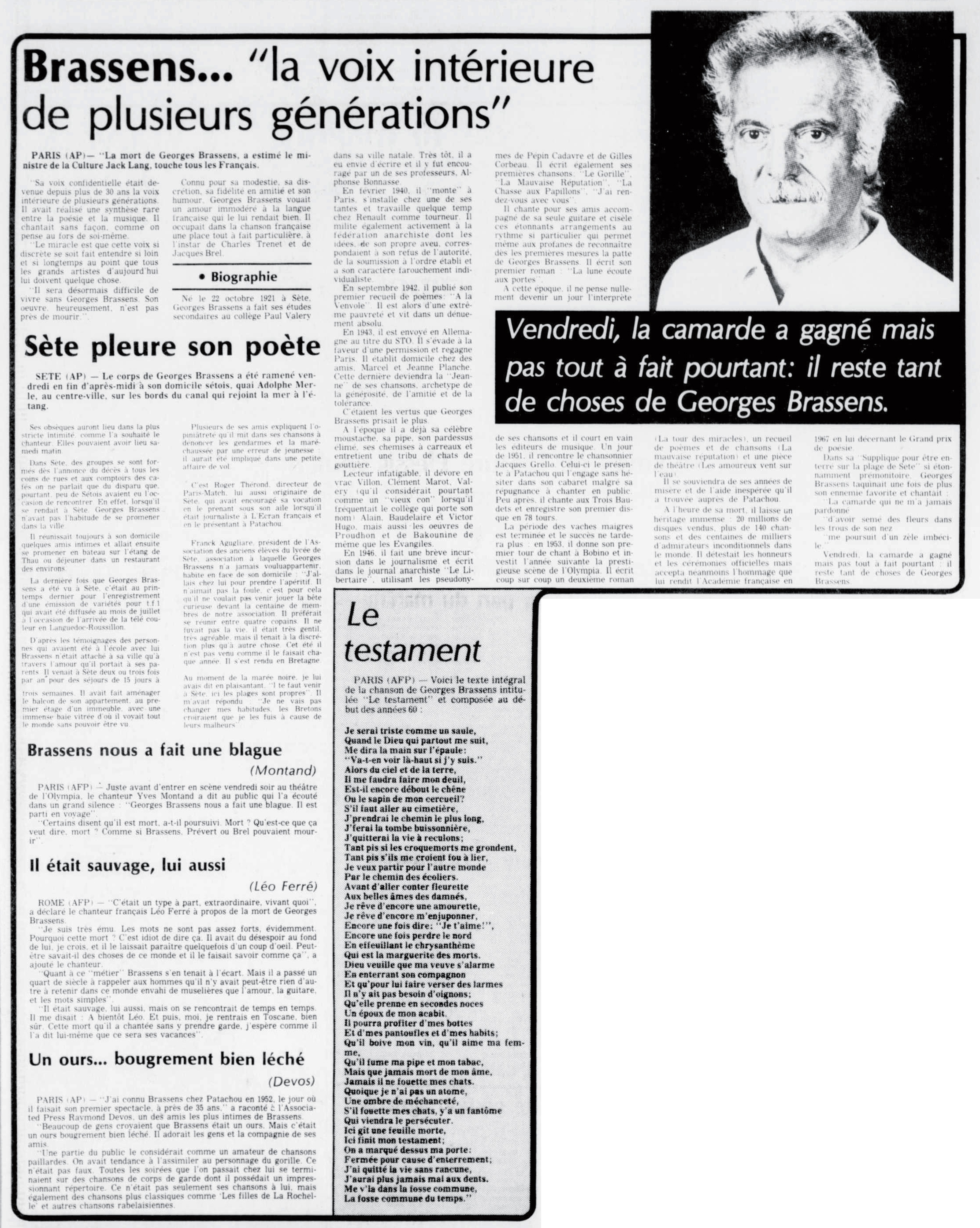 • Brassens "la voix intérieure de plusieurs générations"