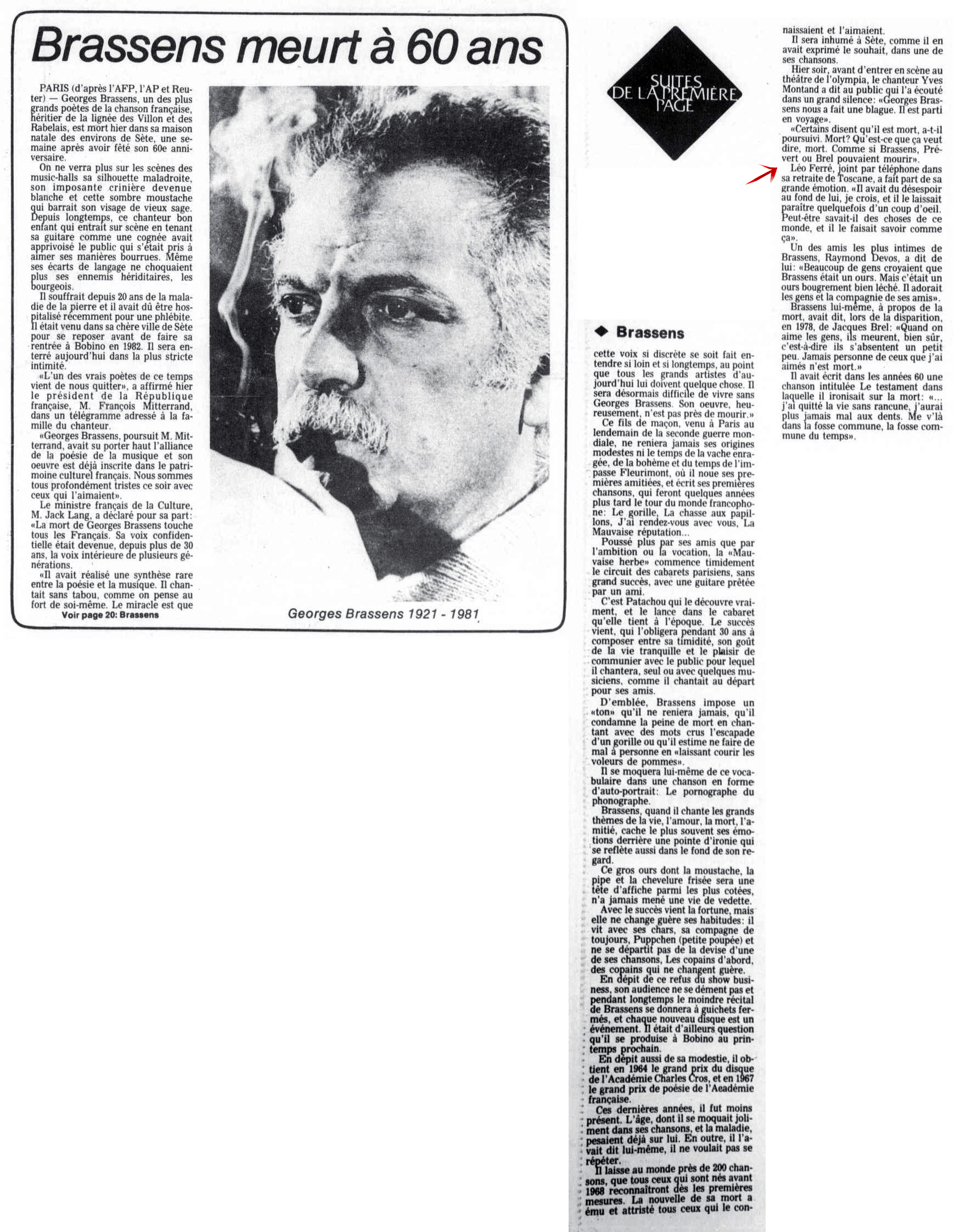 • Brassens meurt à 60 ans