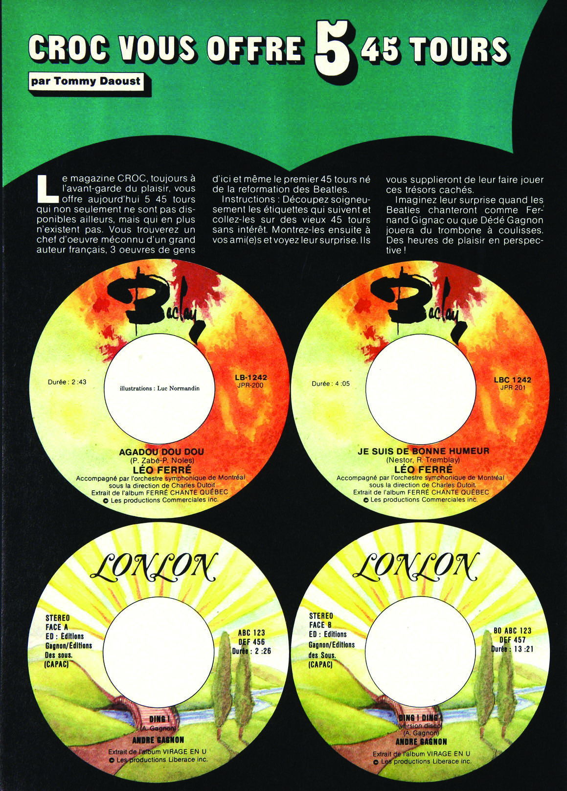 • Croc vous offre 5 45 tours