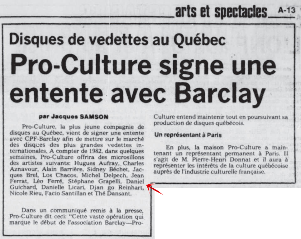 • Disques de vedettes au Québec - Pro-Culture signe une entente avec Barclay