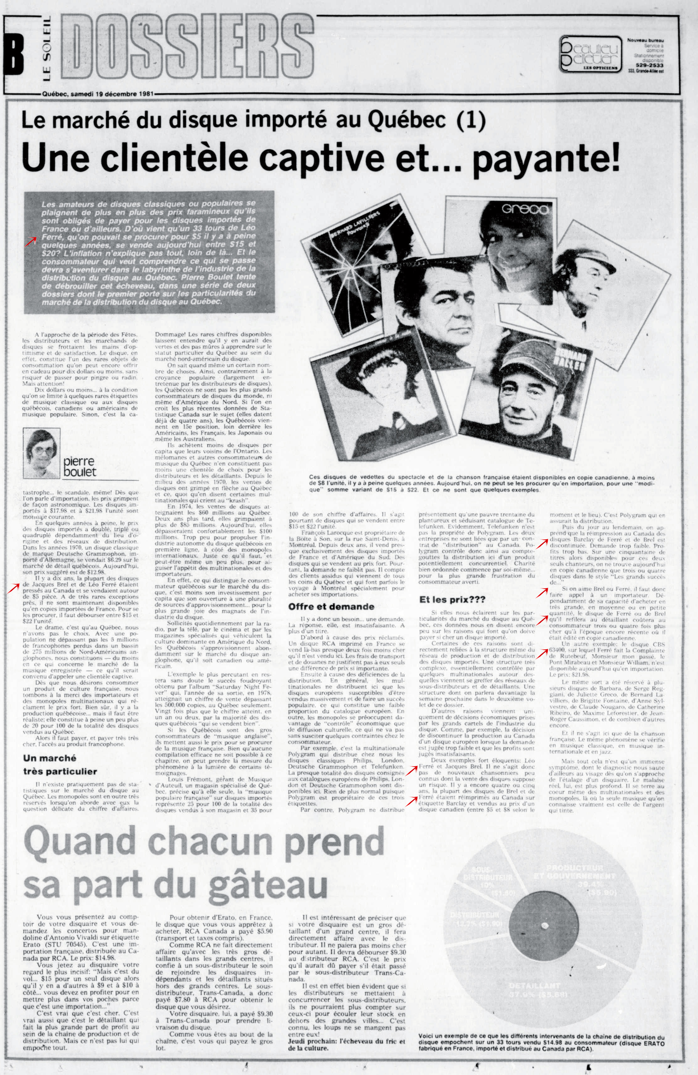 • Le marché du disque importé au Québec (1) - Une clientèle captive et... payante !