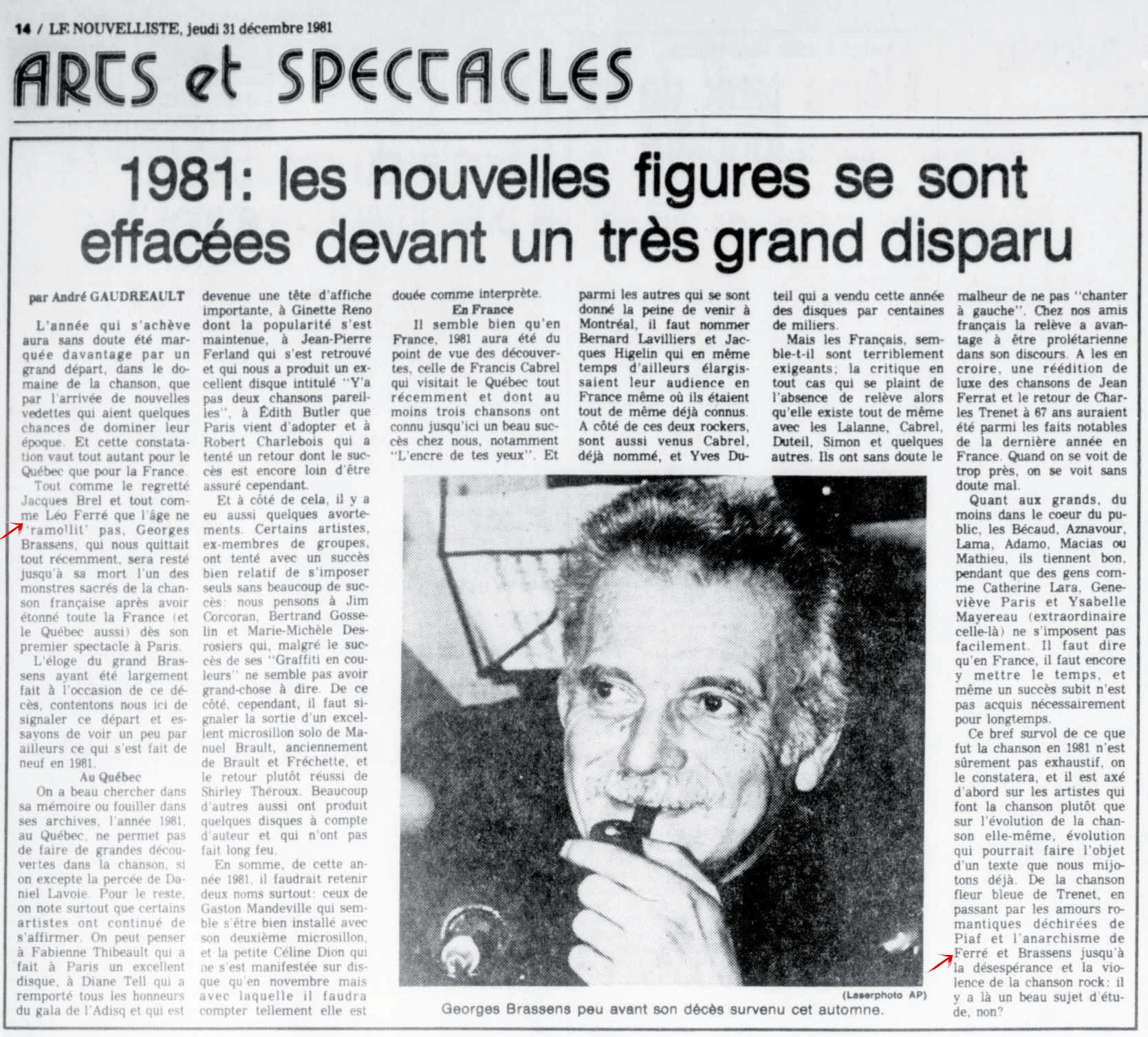 26.12 : La Presse, 26 décembre 1981, D. Arts et spectacles