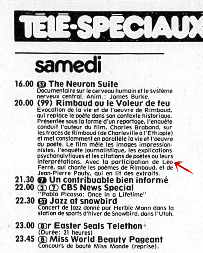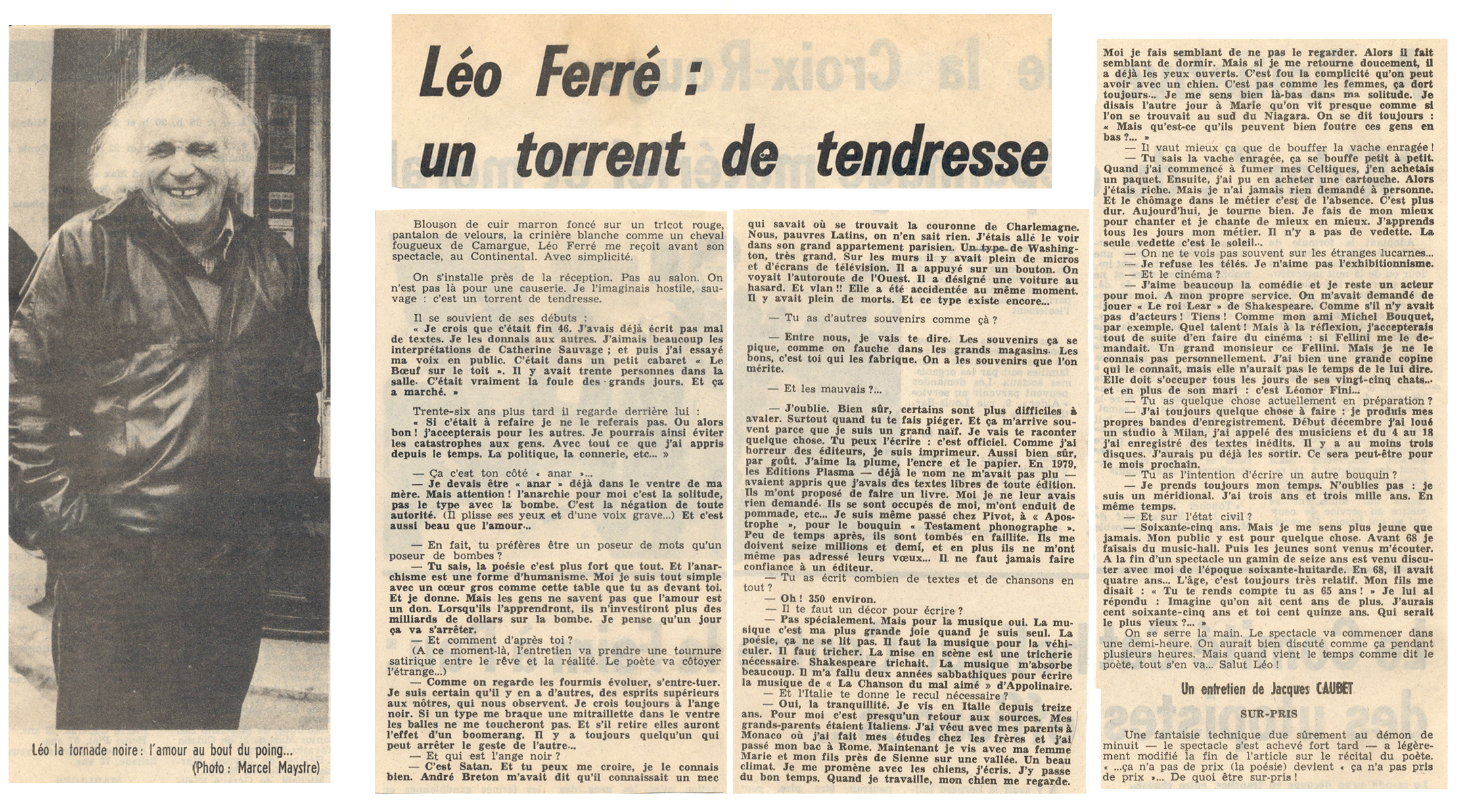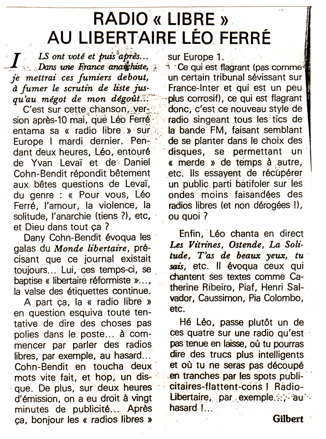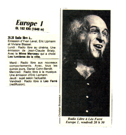 07.12 : diffusion de l’émission Radio Libre à... Léo Ferré sur Europe I avec Ivan Levaï avec la participation de Daniel Cohn-Bendit.