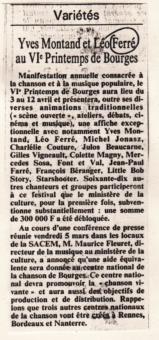 • Yves Montant et Léo Ferré au VIe Printemps de Bourges