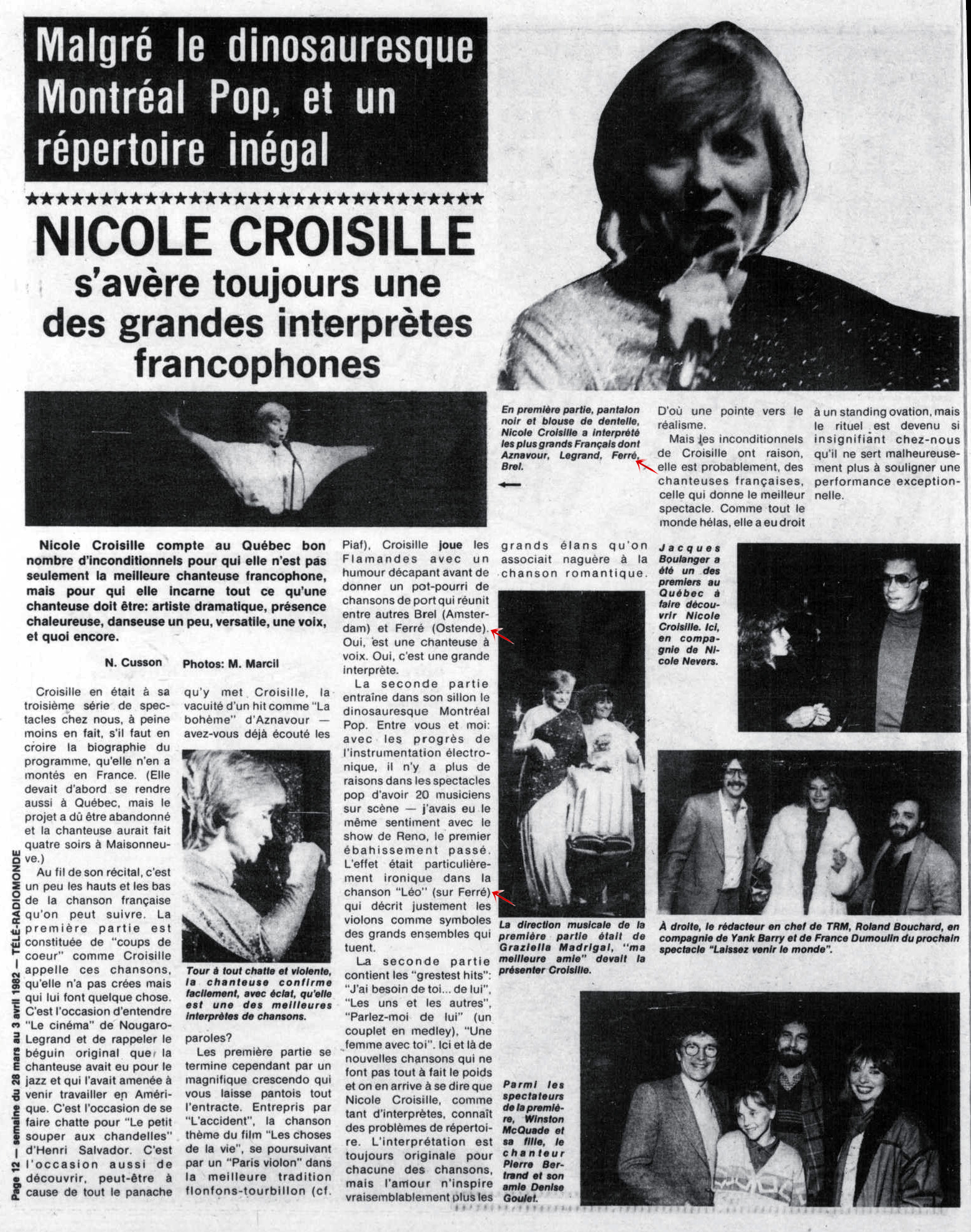 • Nicole Croisille s'avère toujours une des très grandes interprètes francophone