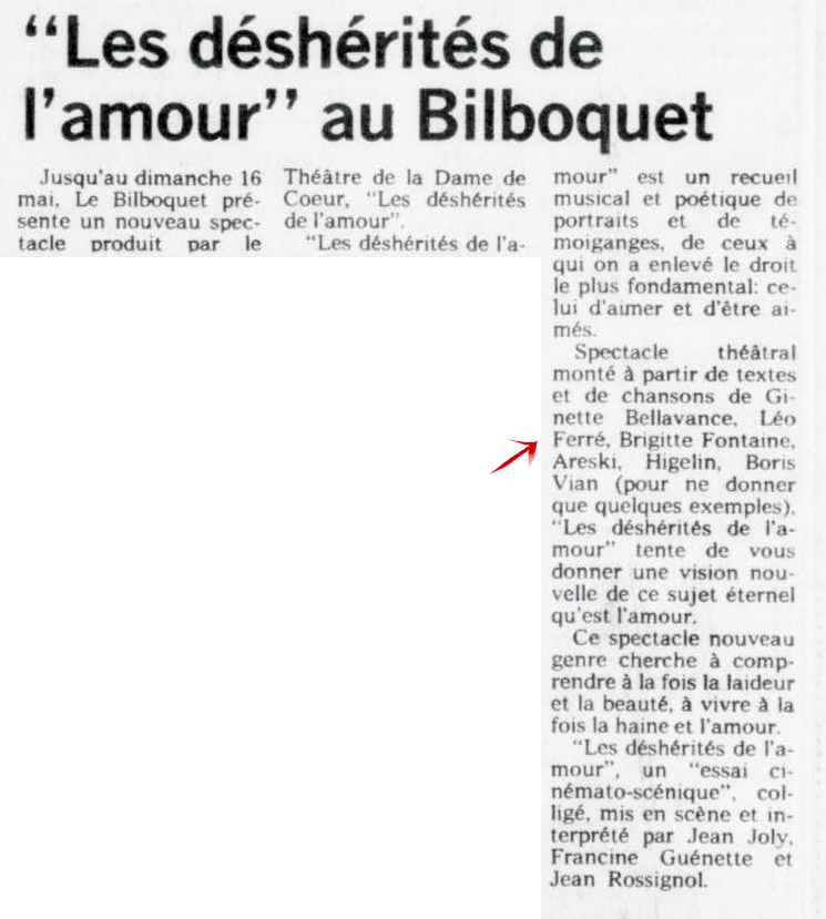 Richard Martin crée ALMA MATRIX, texte de Léo Ferré