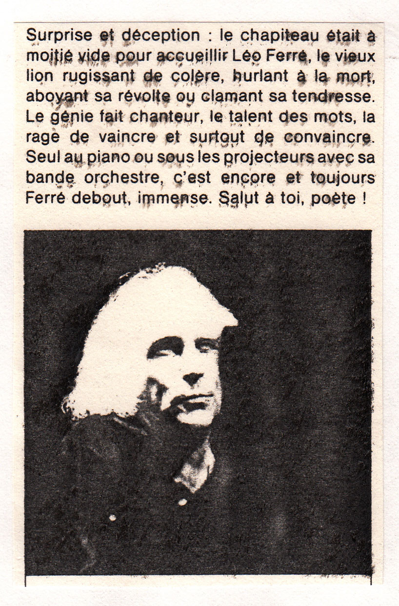 • Il a chanté, jeudi soir au Théâtre de verdure à Nice - Léo Ferré : un poète sous le chapiteau
