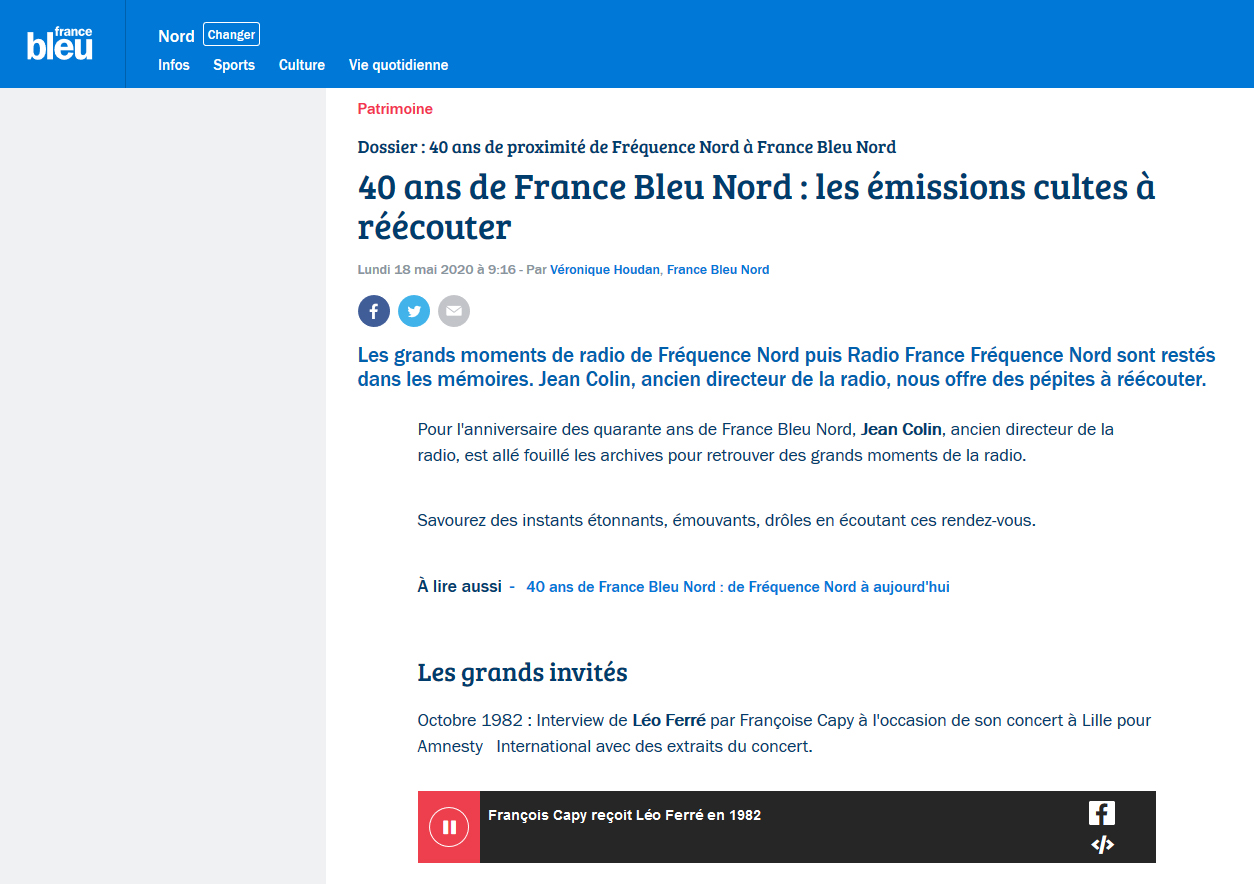Octobre 1982 : Interview de Léo Ferré par Françoise Capy à l'occasion de son concert à Lille pour Amnesty International avec des extraits du concert.