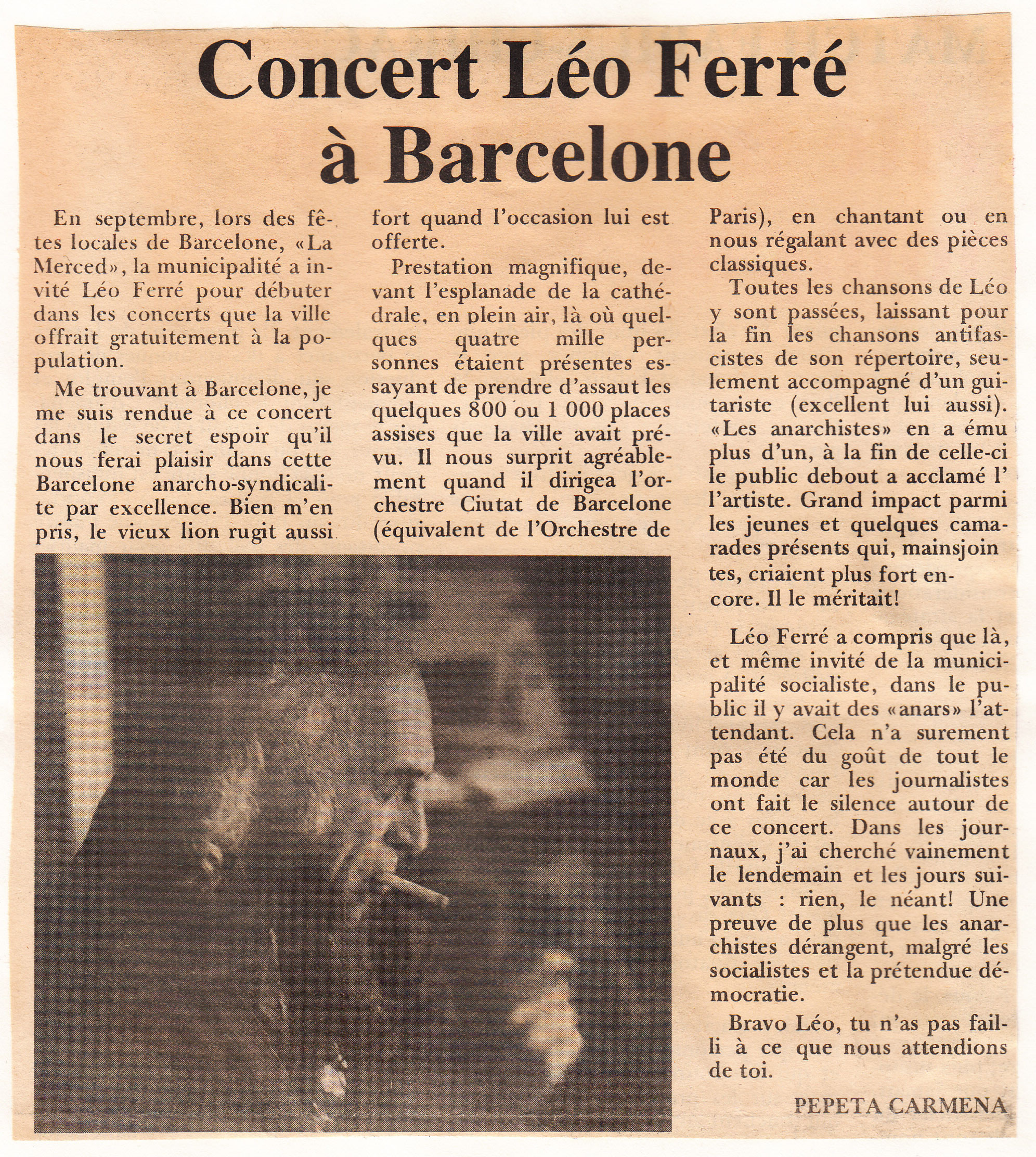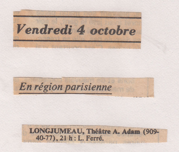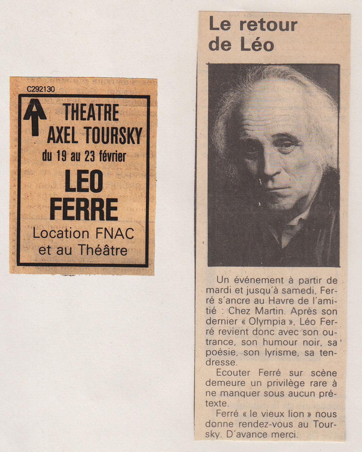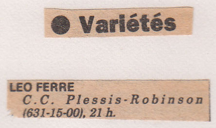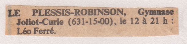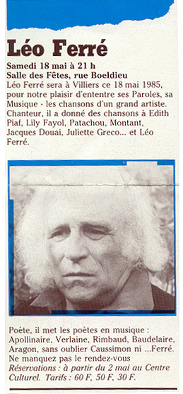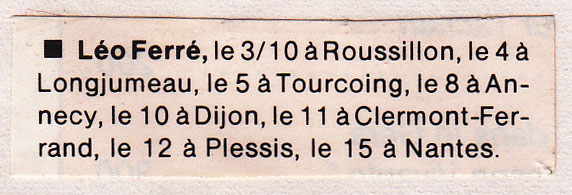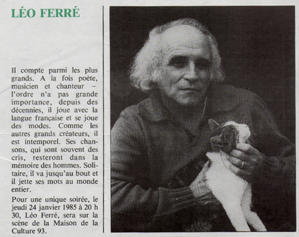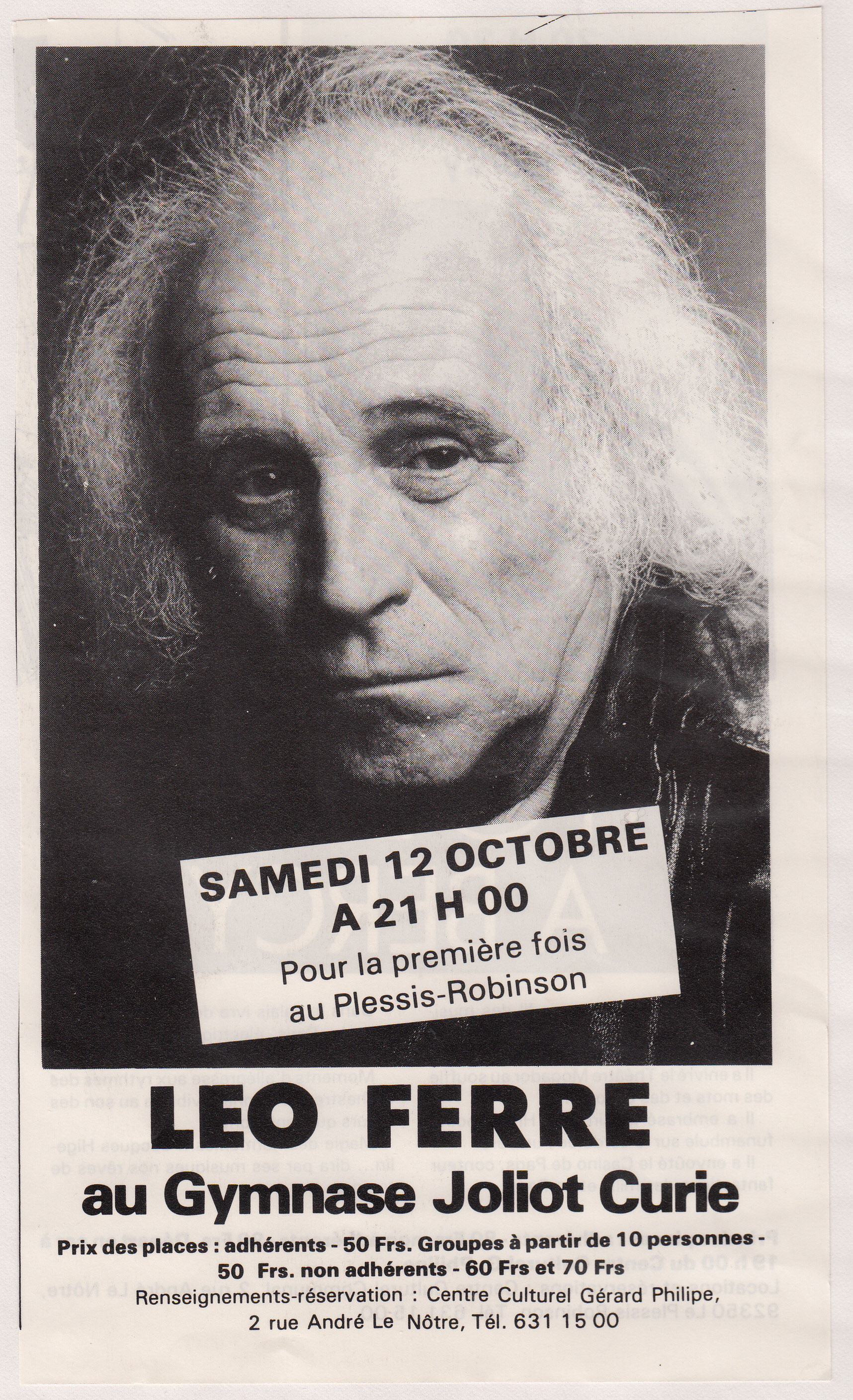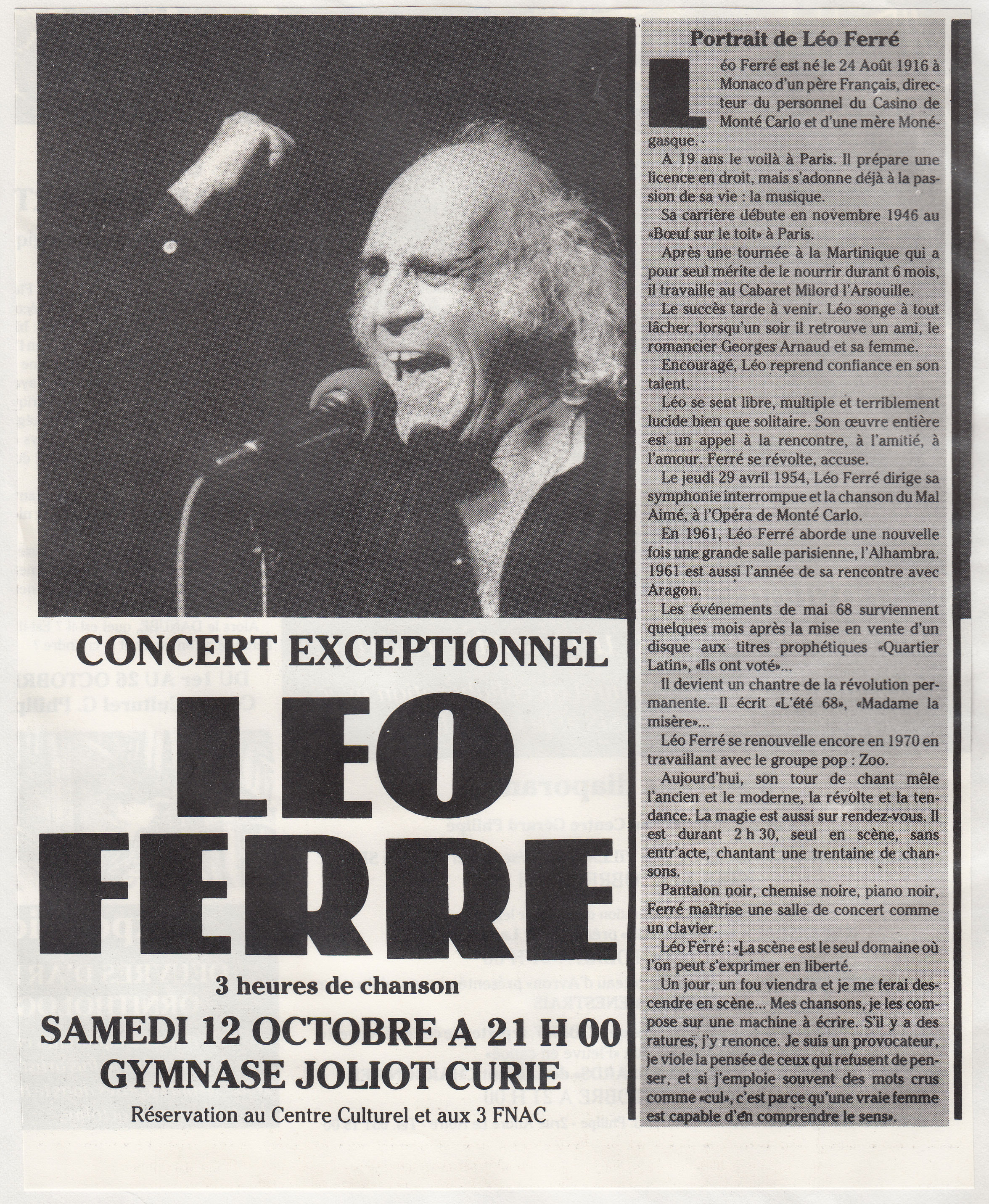 • Léo Ferré au Gymnase Joliot Curie - Samedi 12 octobre