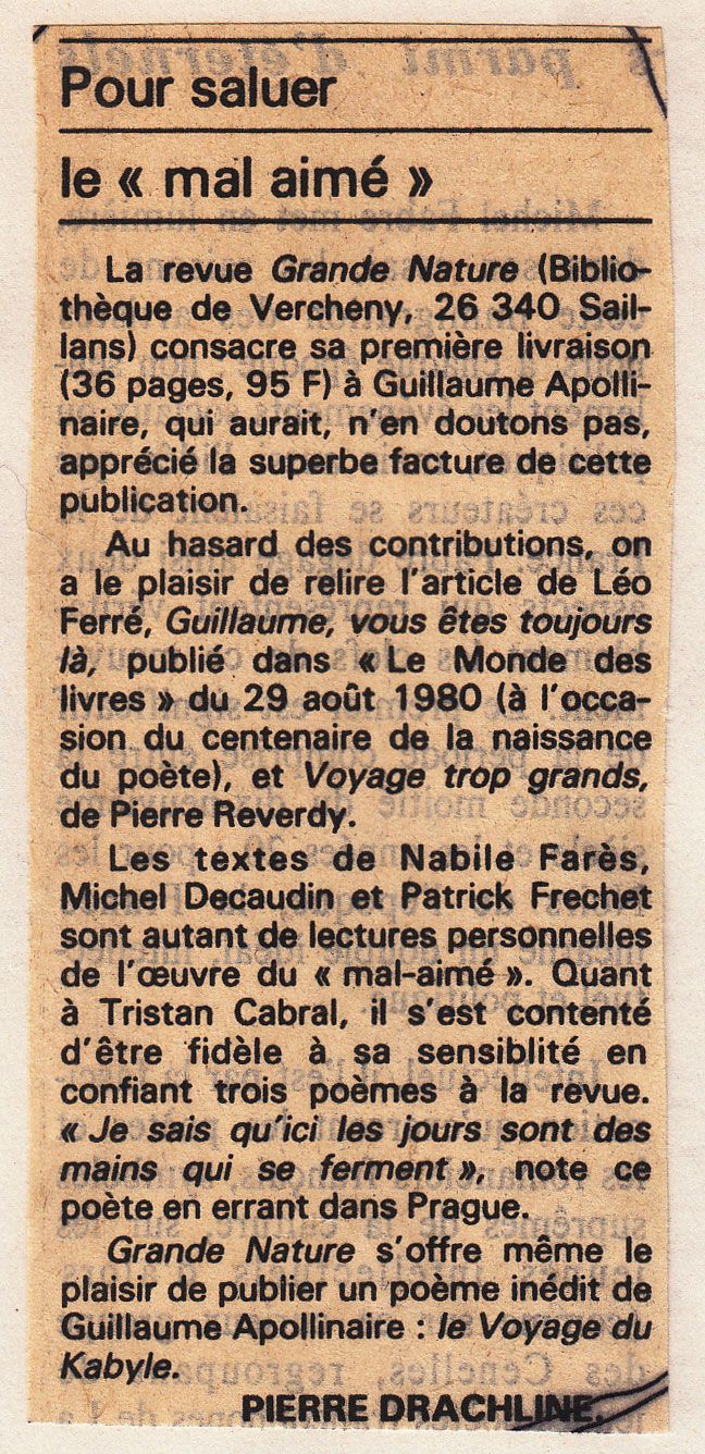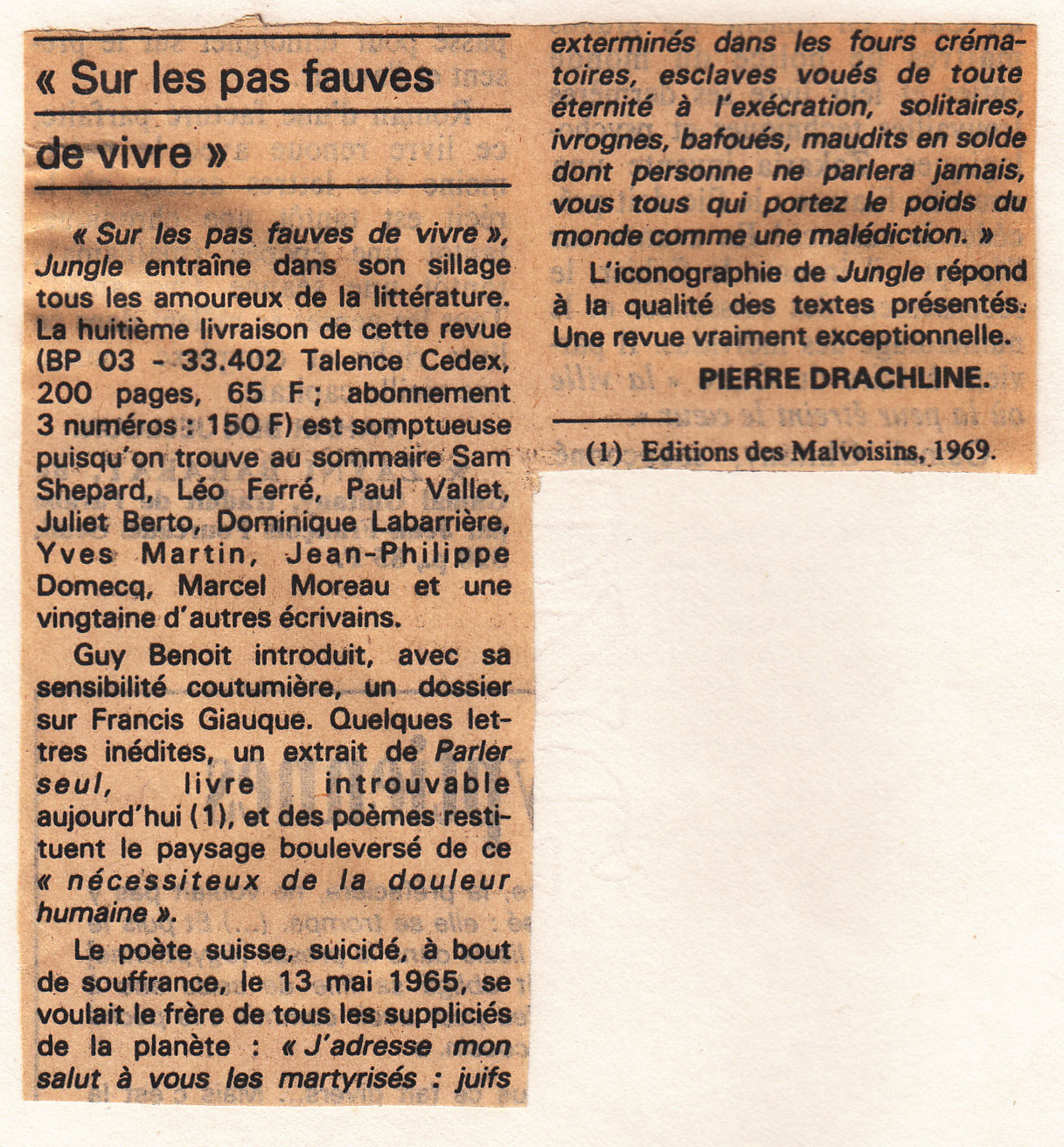 Entretien réalisé le 24 février 1985 et publié l’été dans "Paroles et Musique"