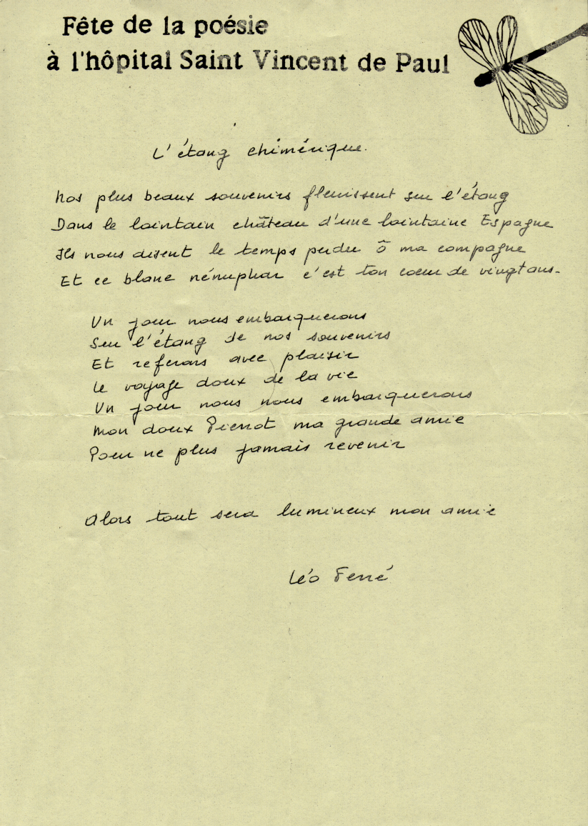 Fête de la poésie à l'Hôpital Saint-Vincent de Paul à Paris, mars 1985