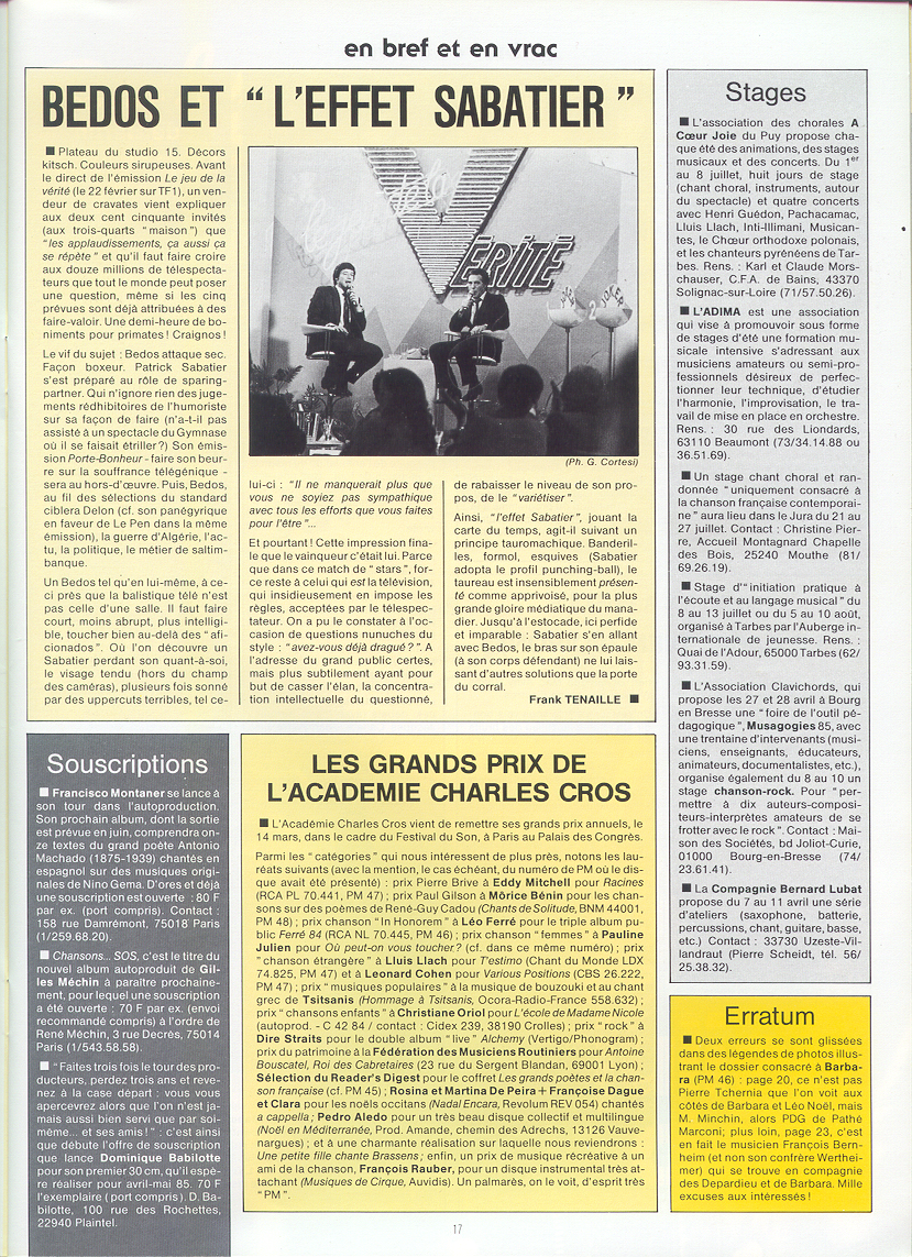 Paroles et Musique N°46, mensuel de Janvier 1985