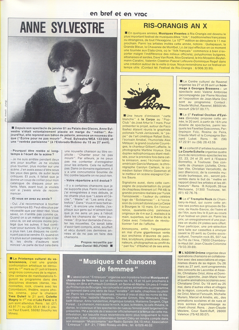 Paroles et Musique N°49, mensuel d'Avril 1985