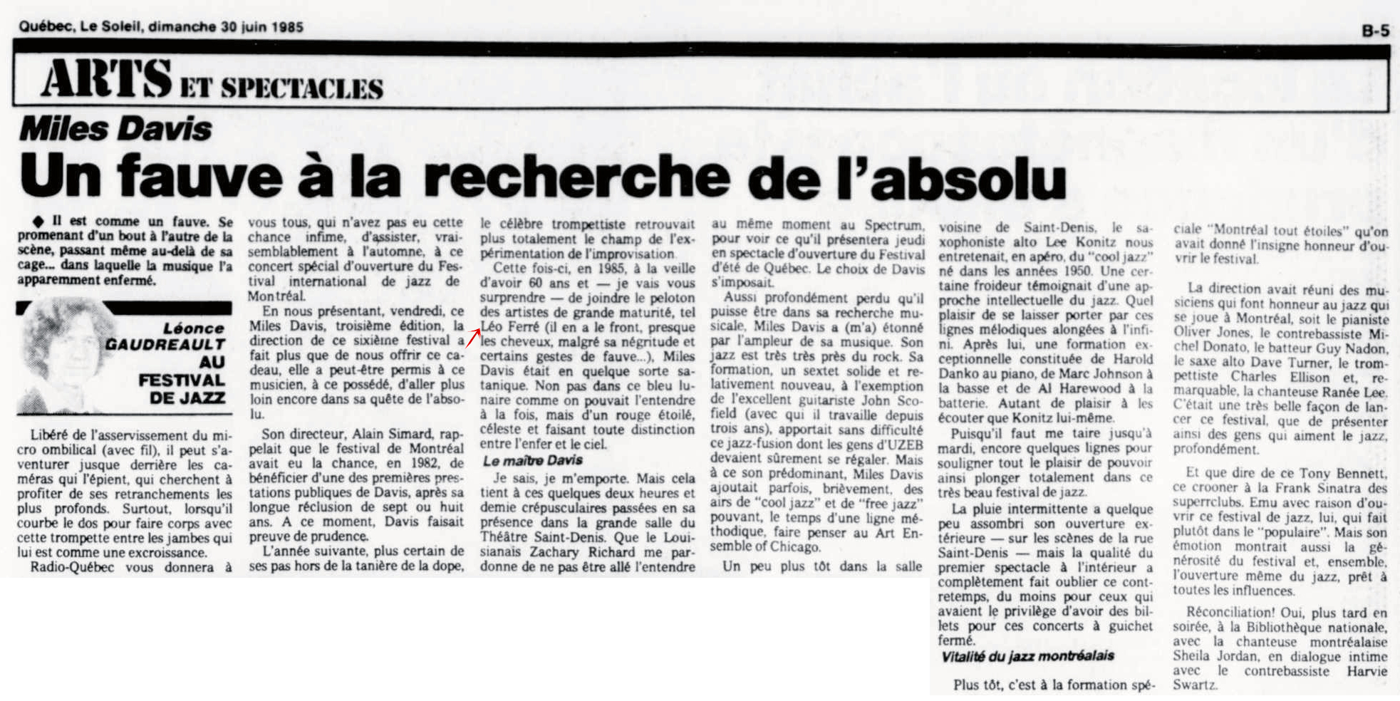 La Presse, 13 juillet 1985, C. Arts et spectacles