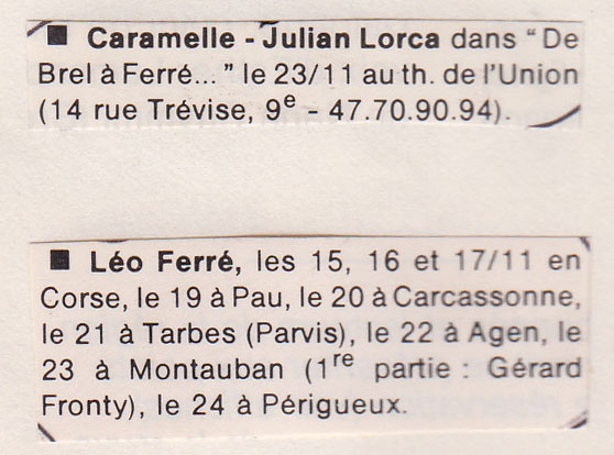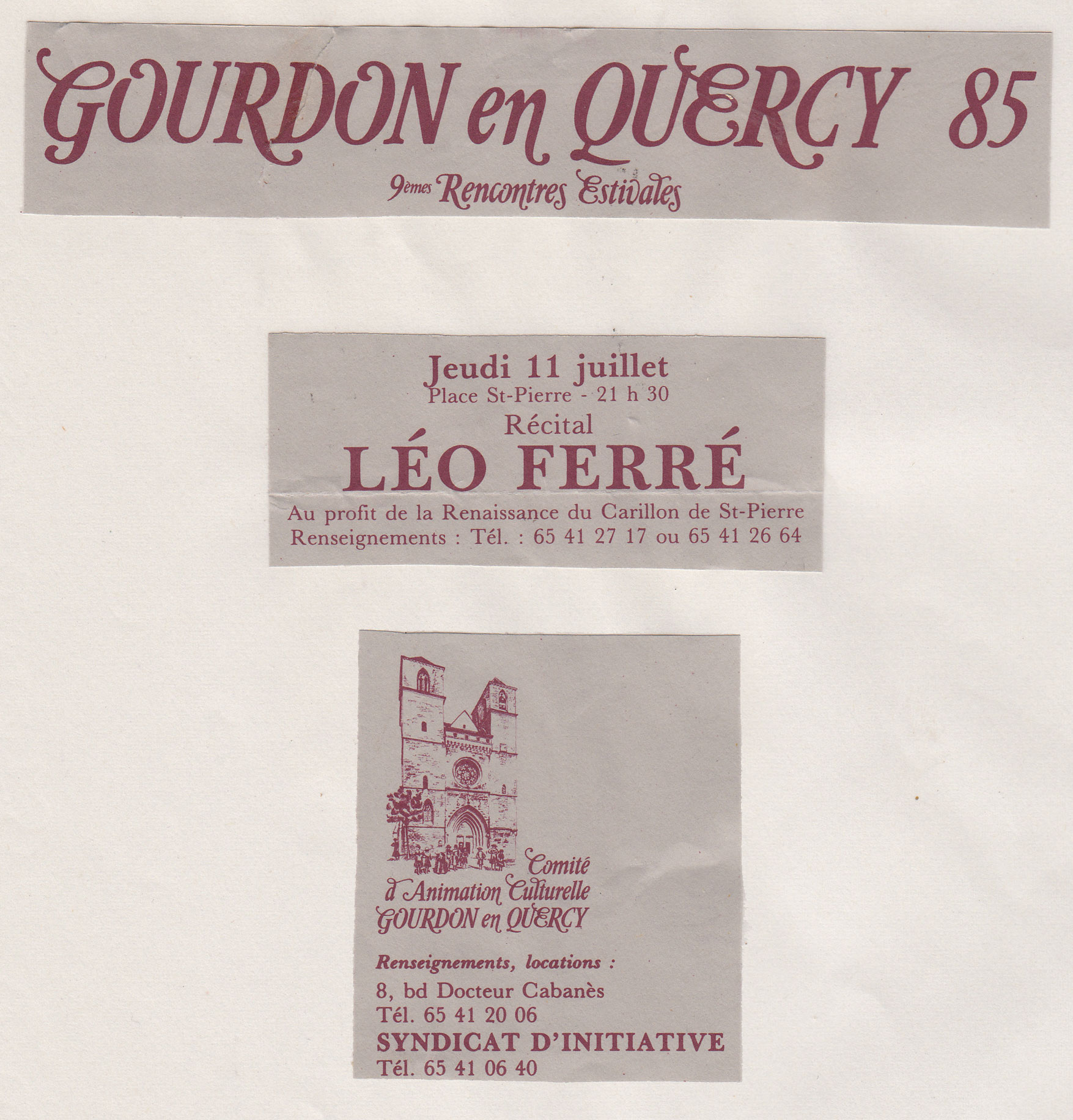 11.07 : Ce soir-là, Léo Ferré chante pour la Renaissance du Carillon de Saint-Pierre à Gourdon.