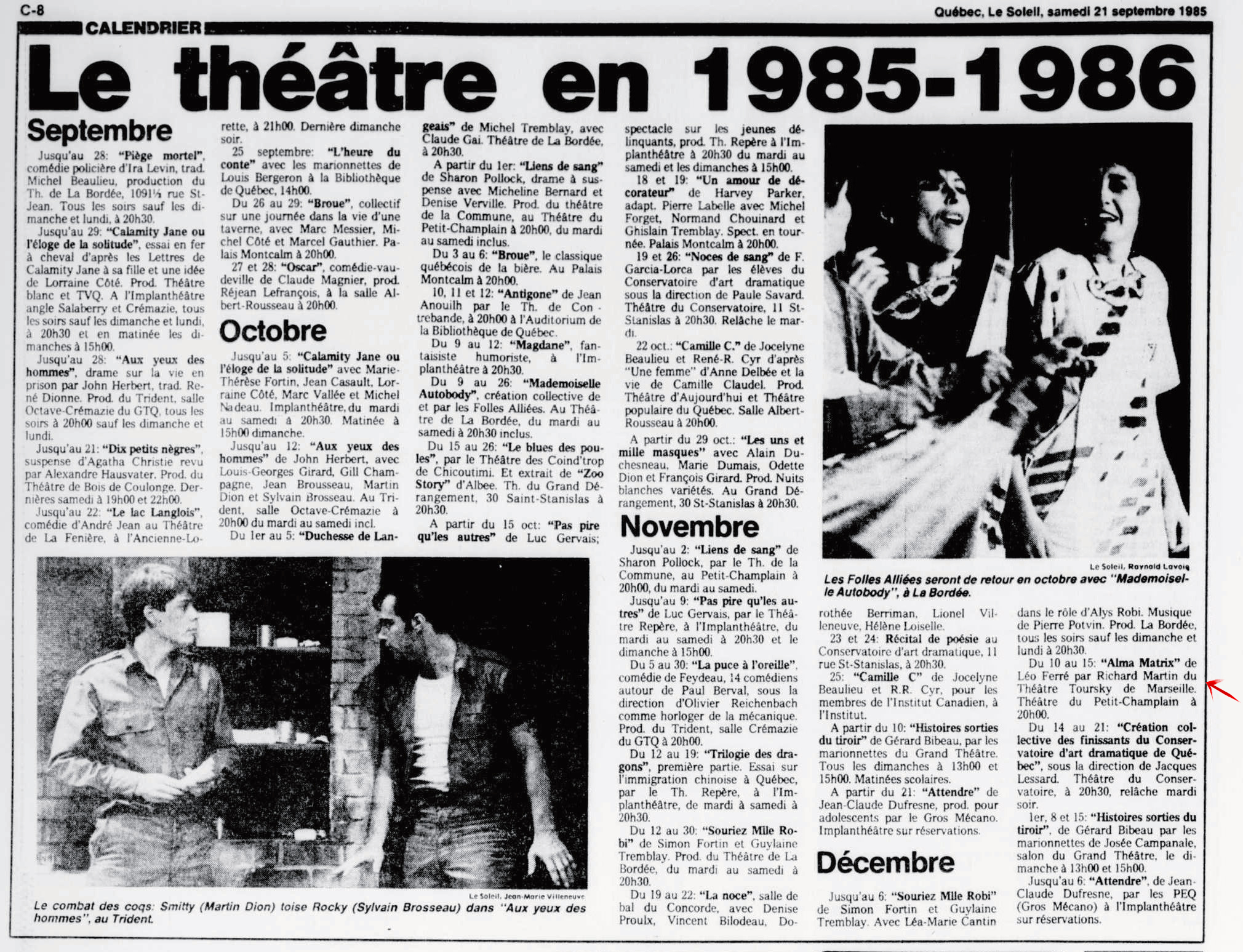 • Le théâtre en 1985-1986 (Alma Matrix)