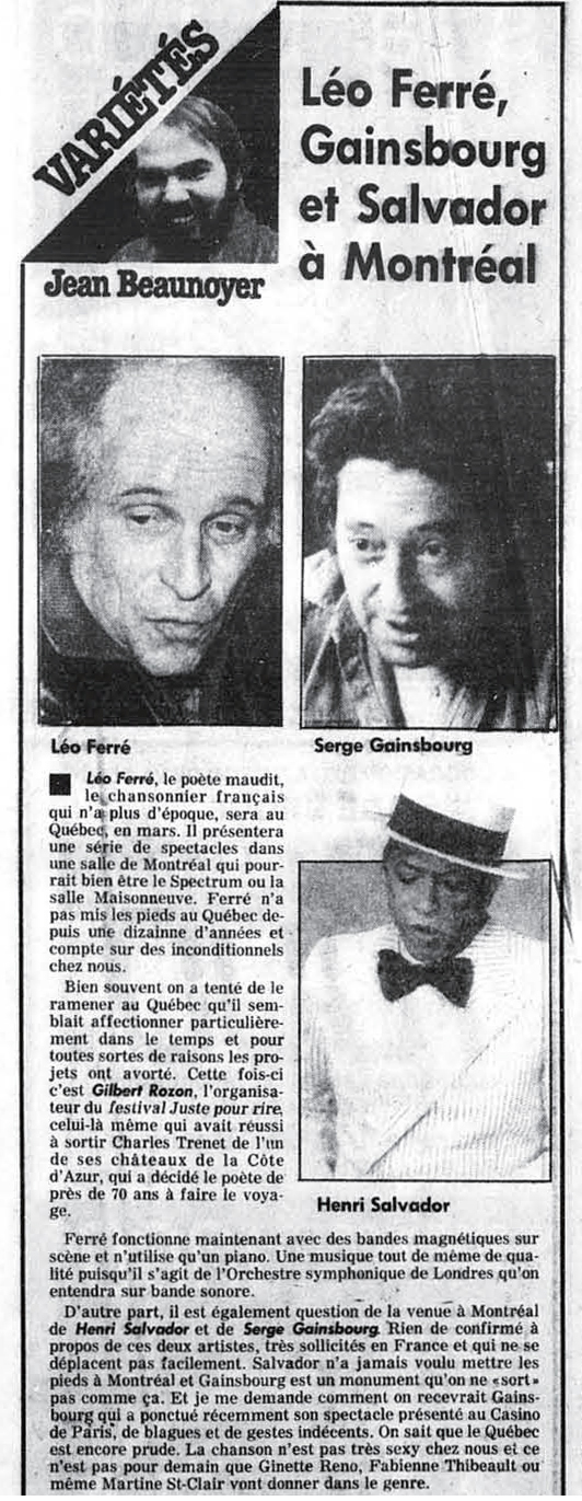 • Léo Ferré, Gainsbourg et Salvador à Montréal