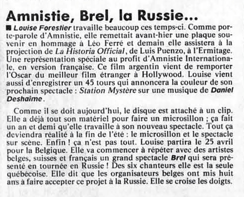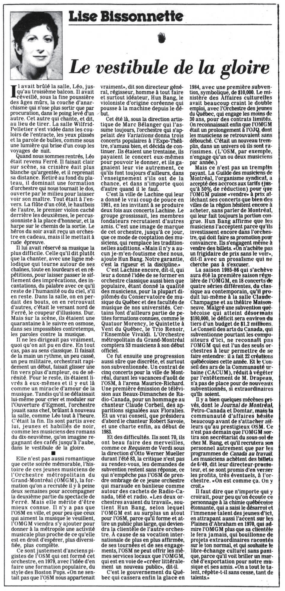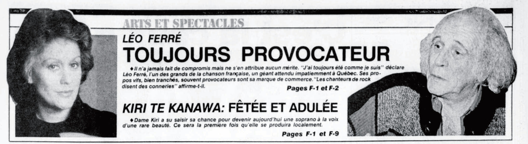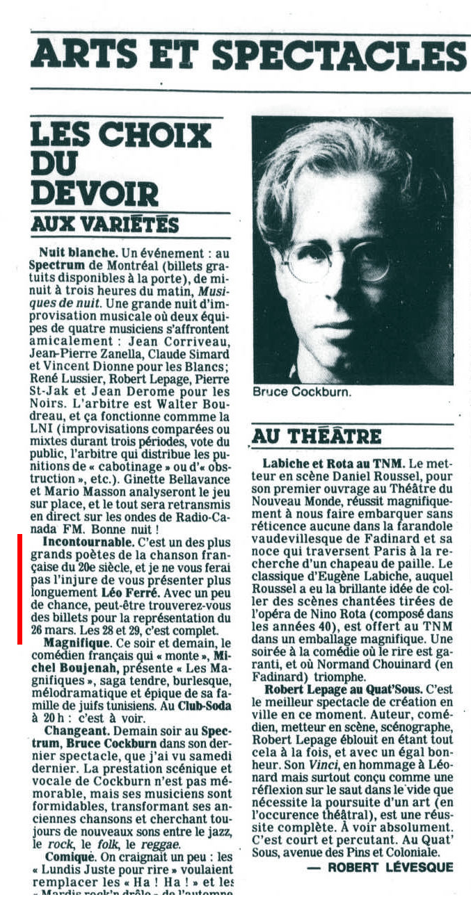 La Presse, 1 mars 1986, E. Arts et spectacles
