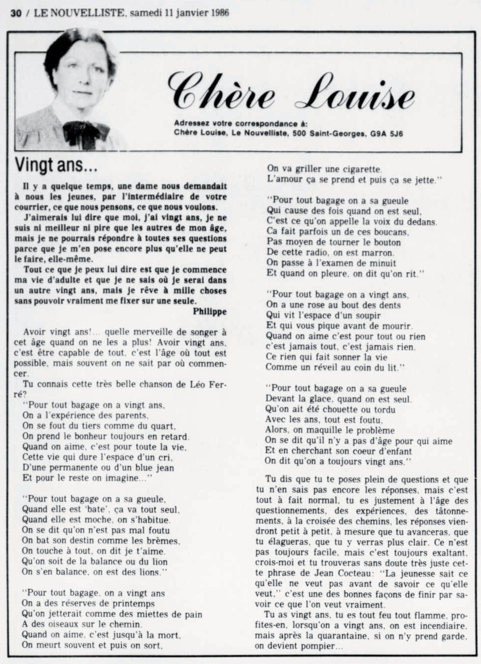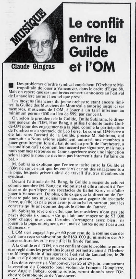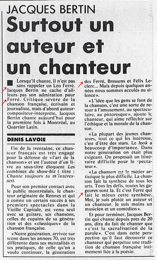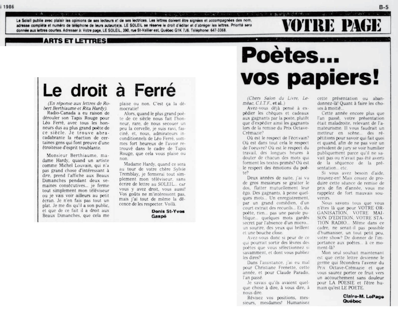 La Presse, 1 mars 1986, E. Arts et spectacles