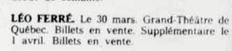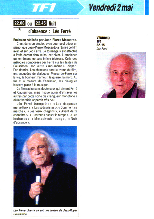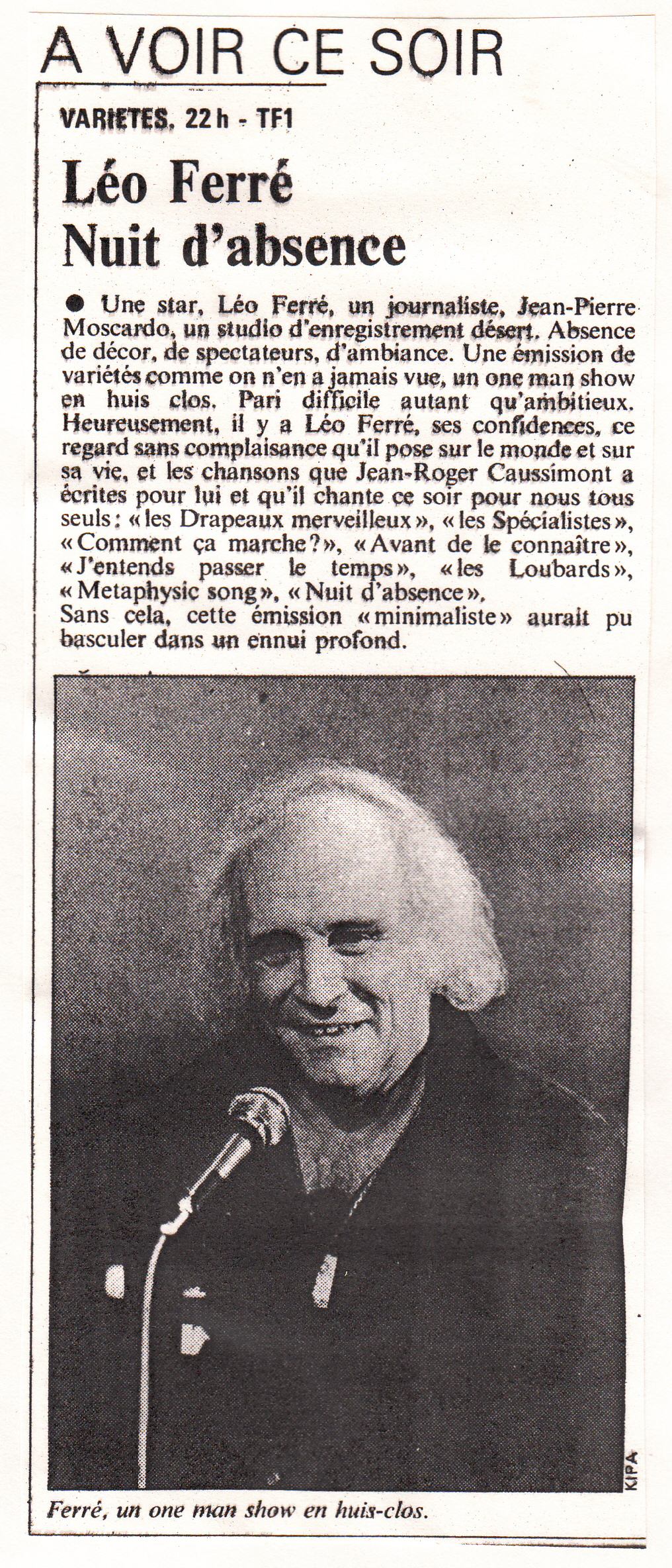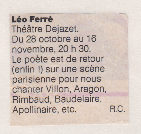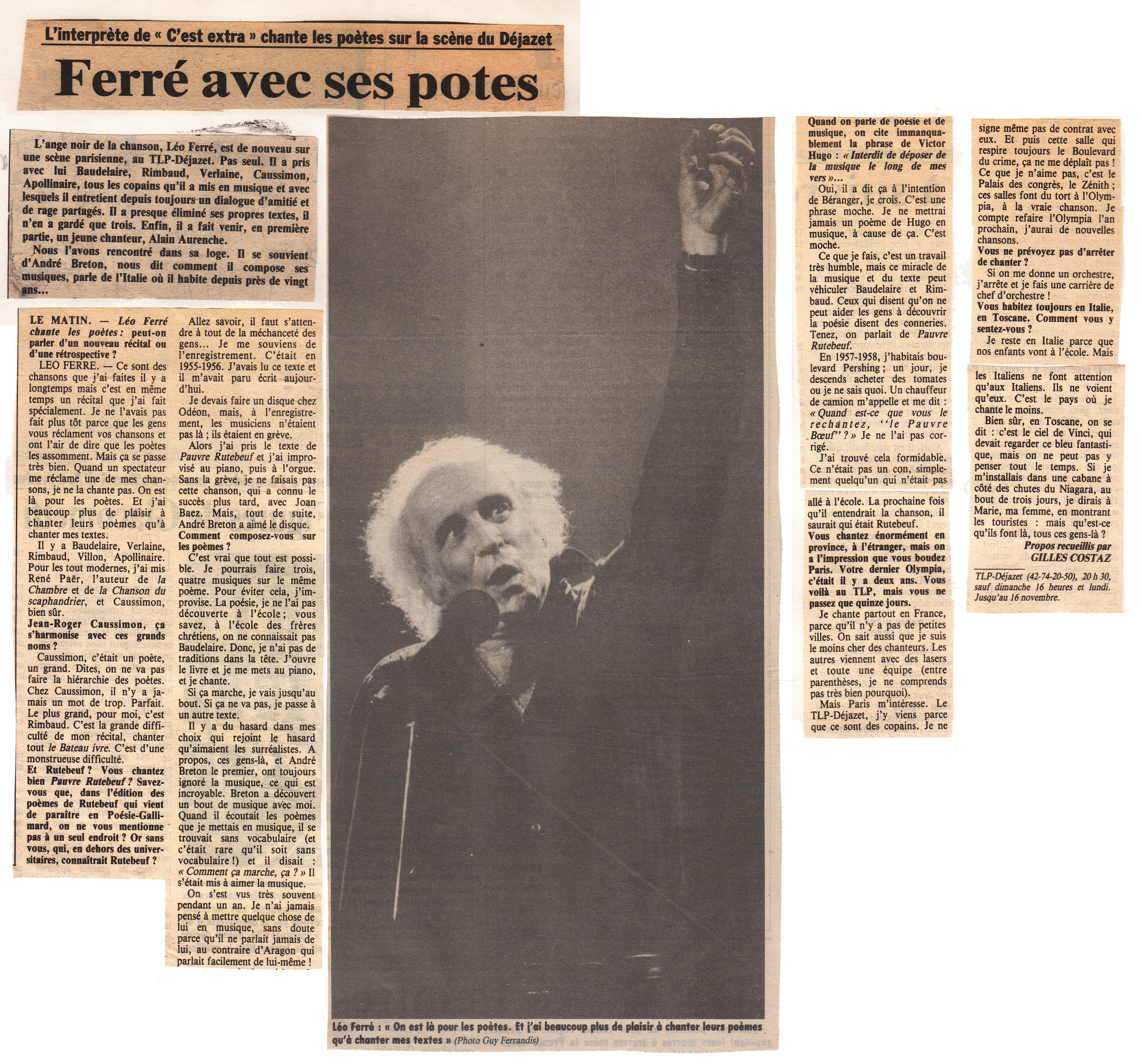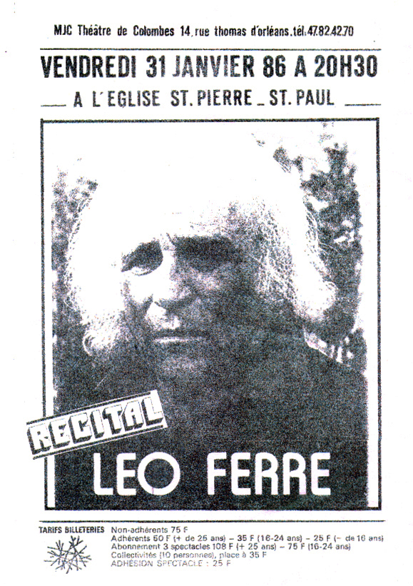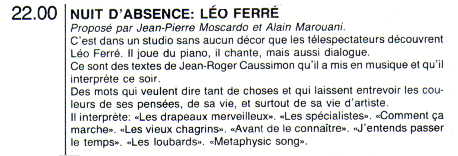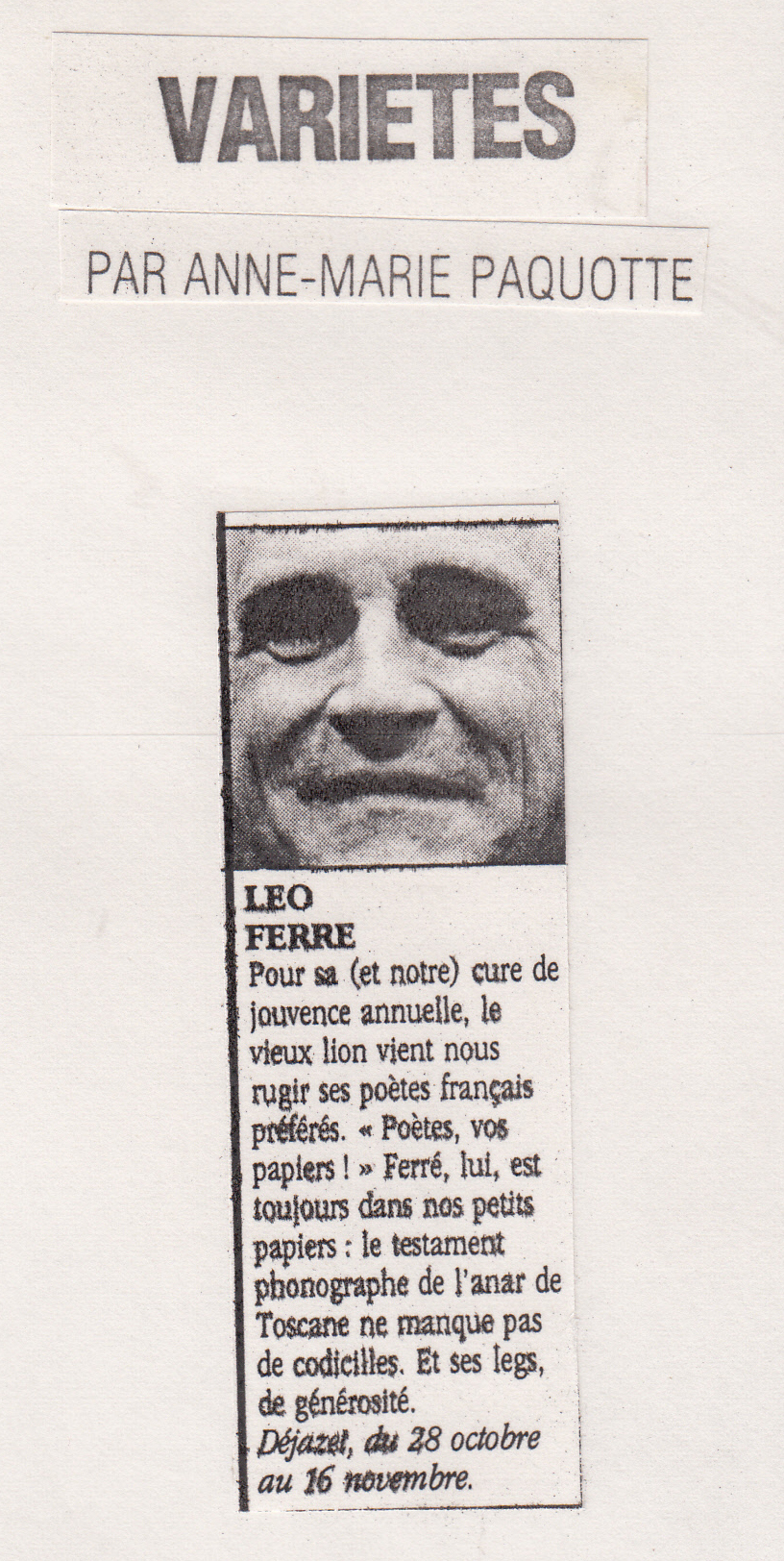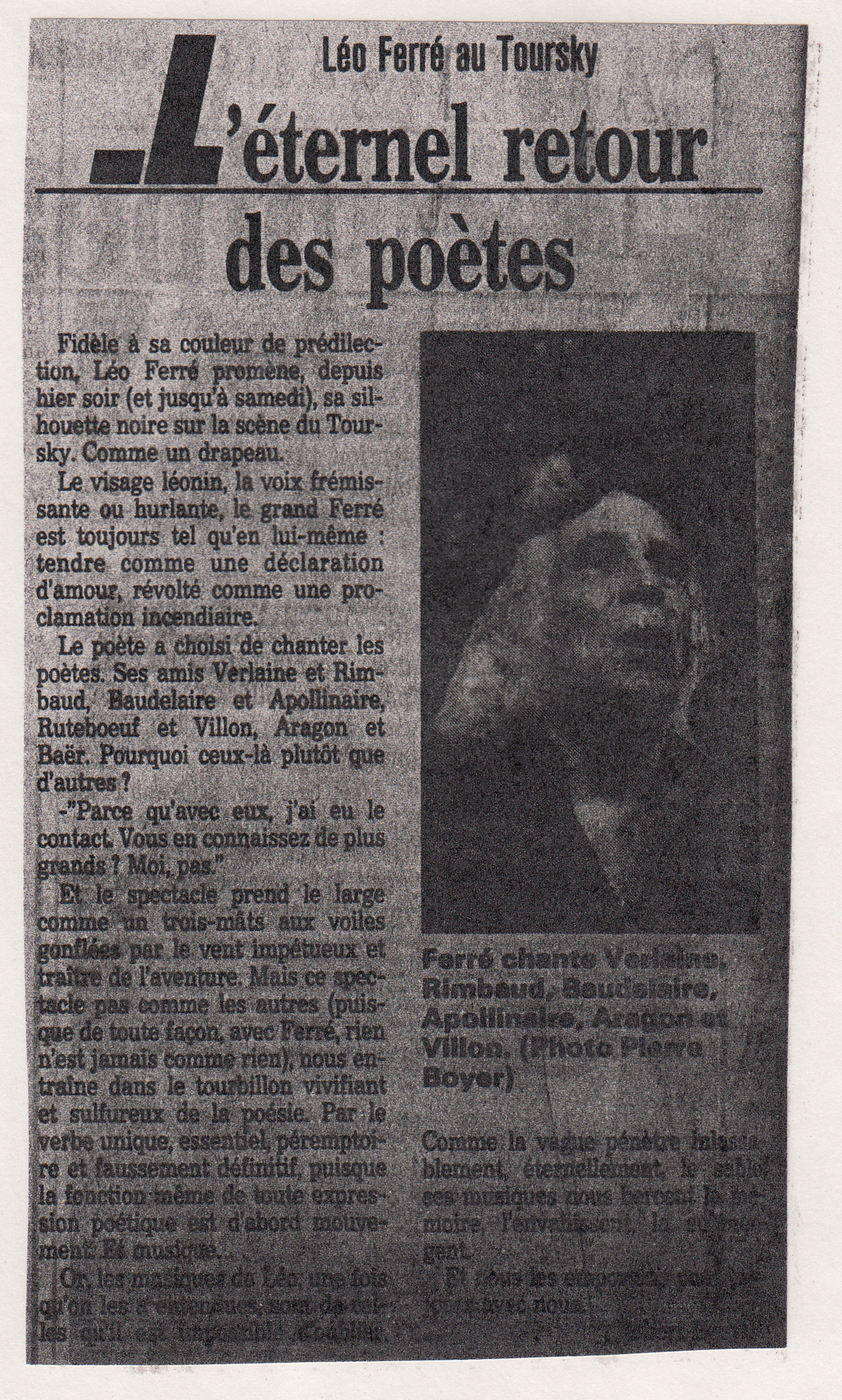 • Après 10 ans d'absence Léo Ferré Supplémentaire 1er avril