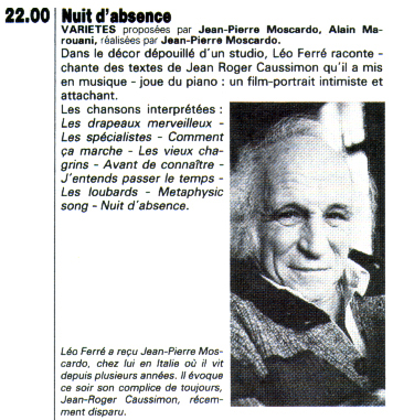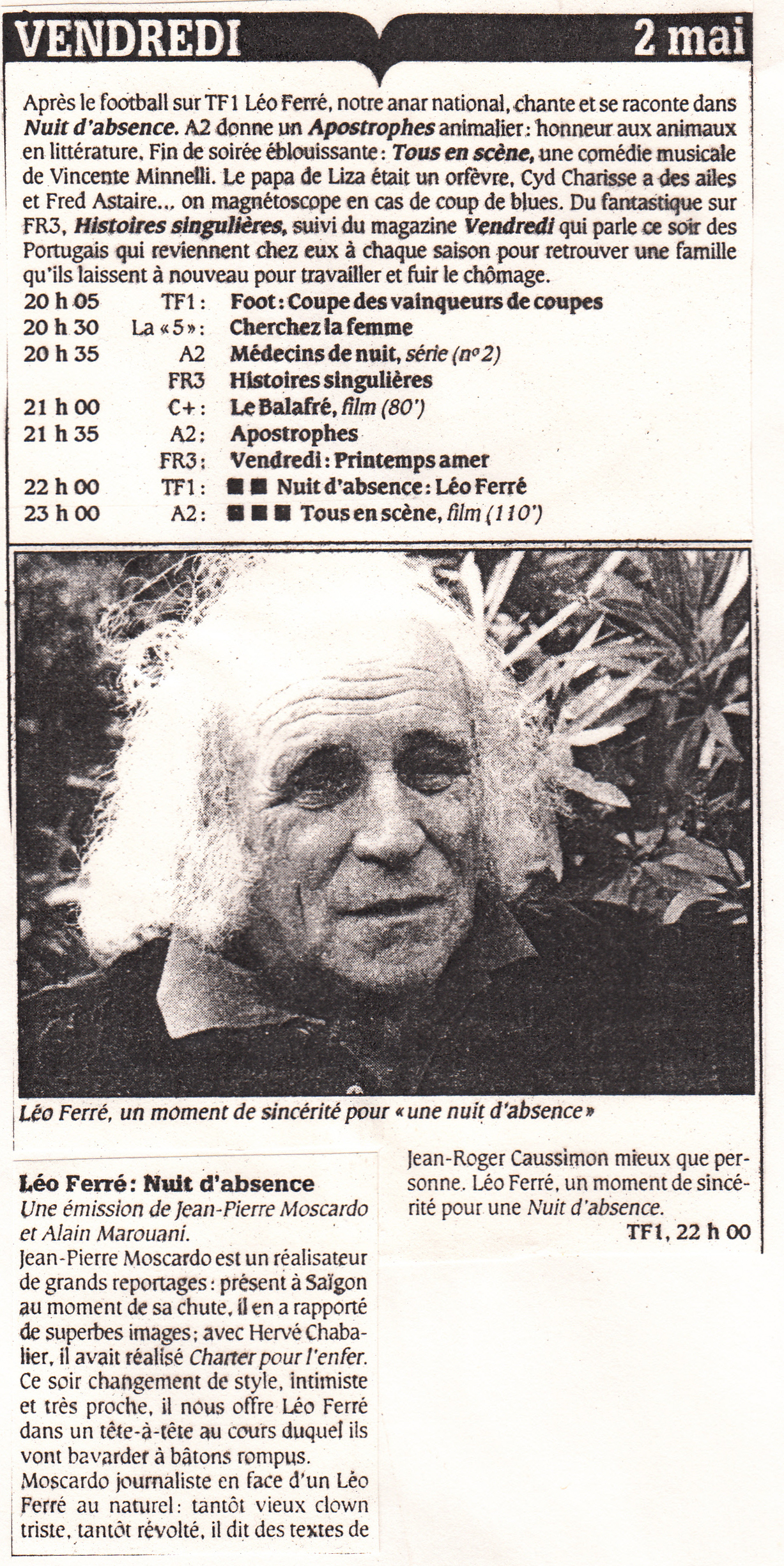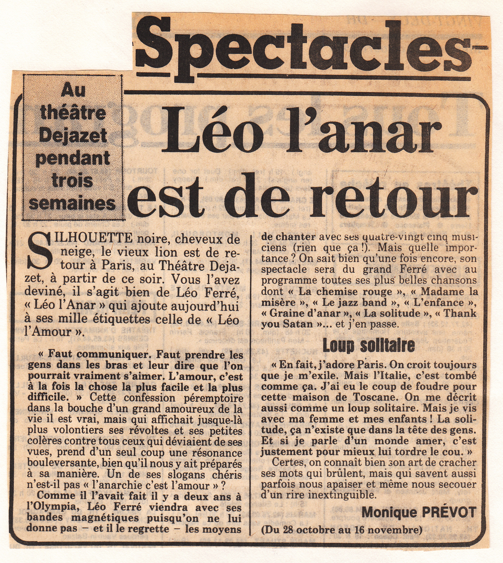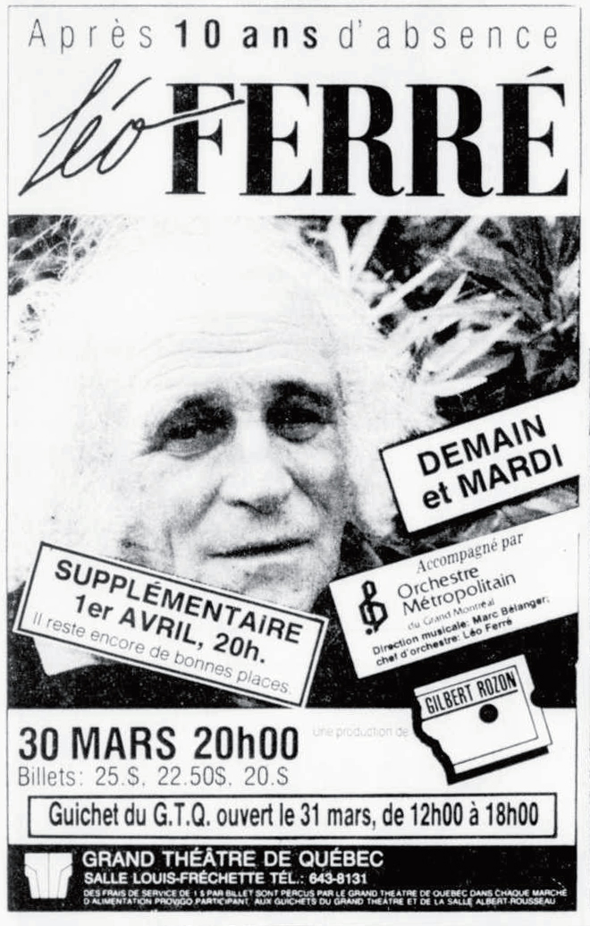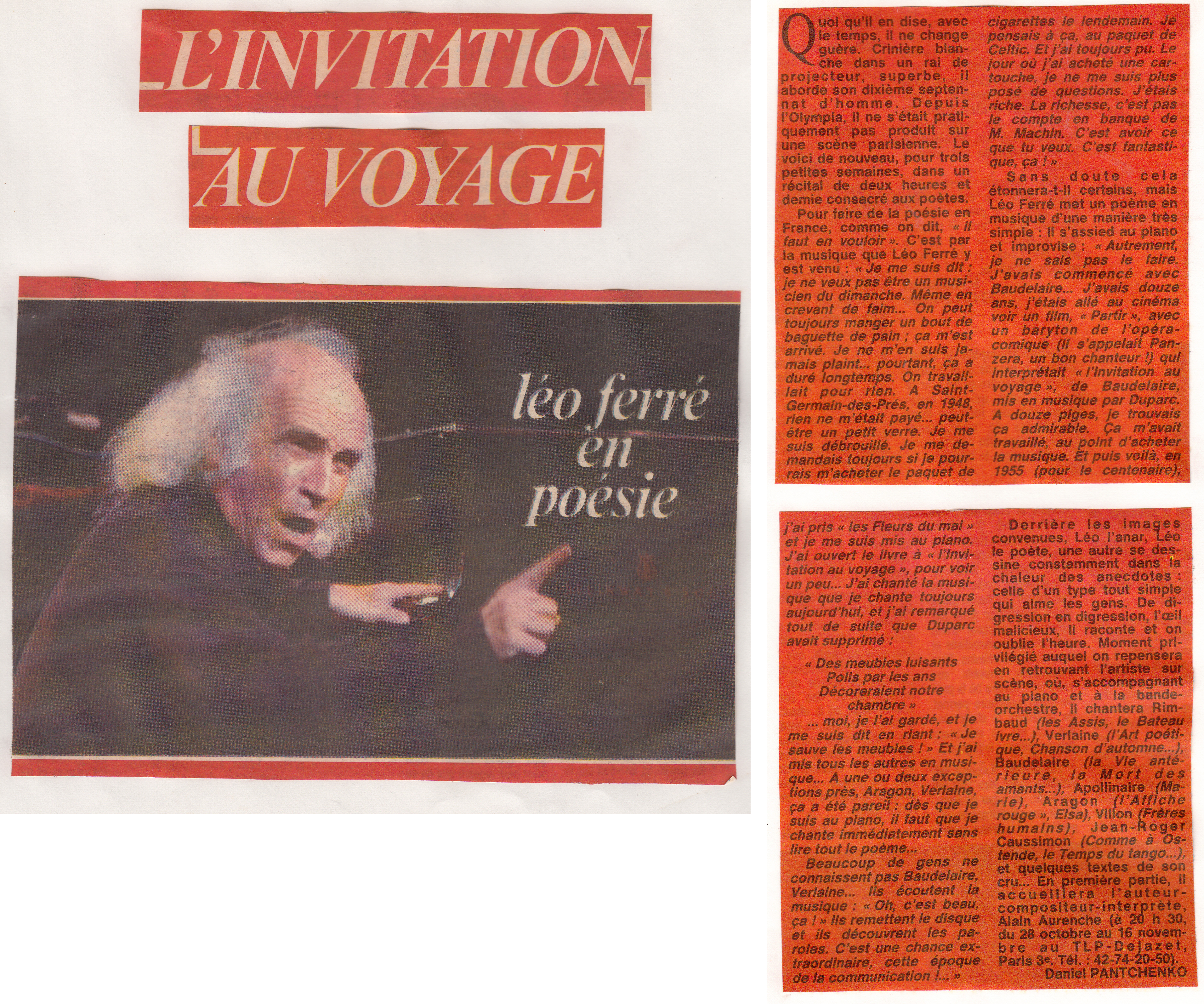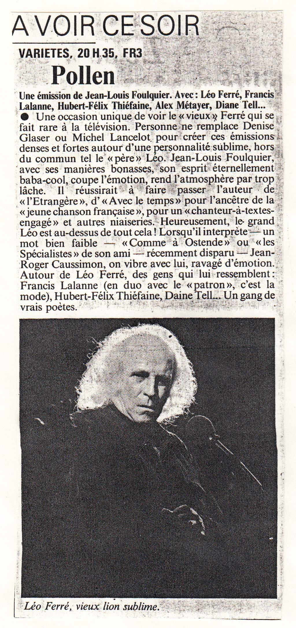 • Après 10 ans d'absence Léo Ferré Supplémentaire 1er avril