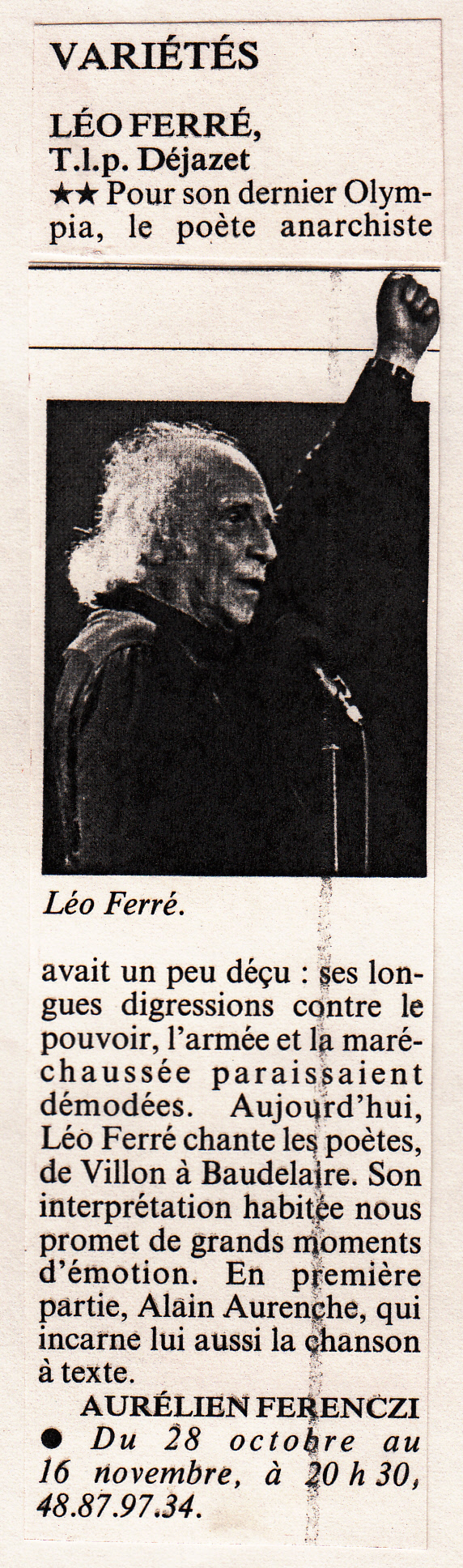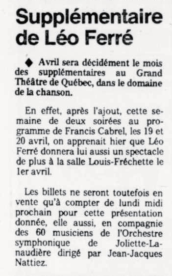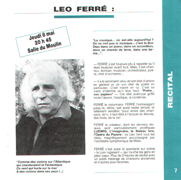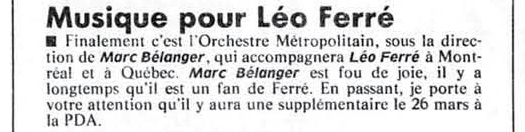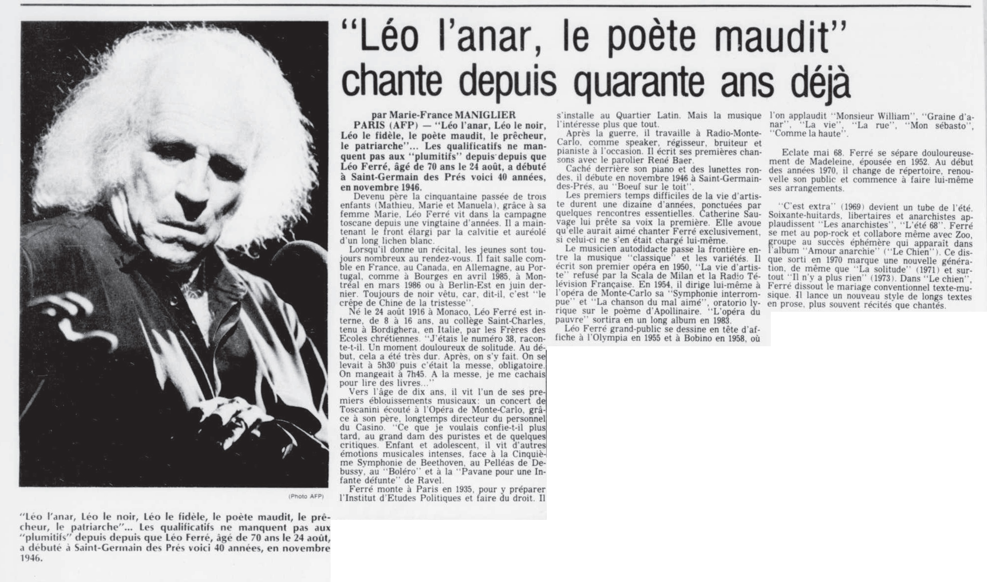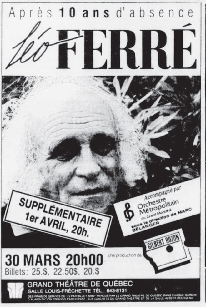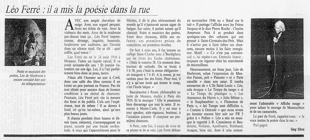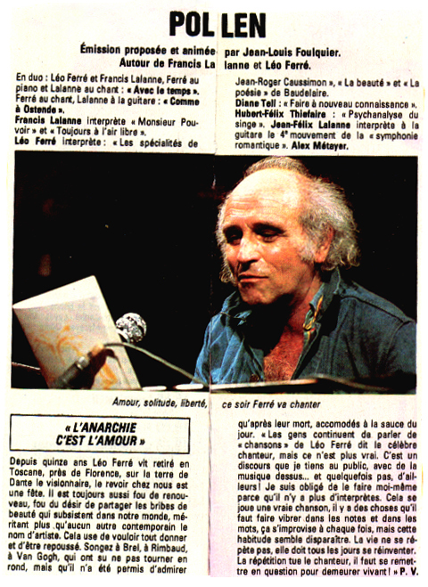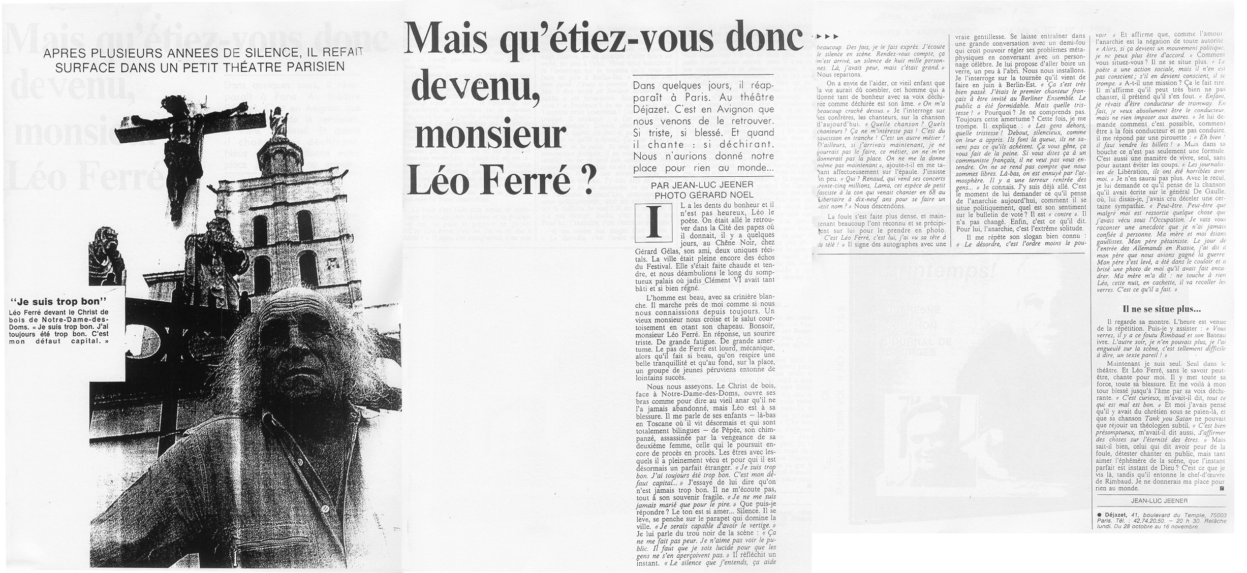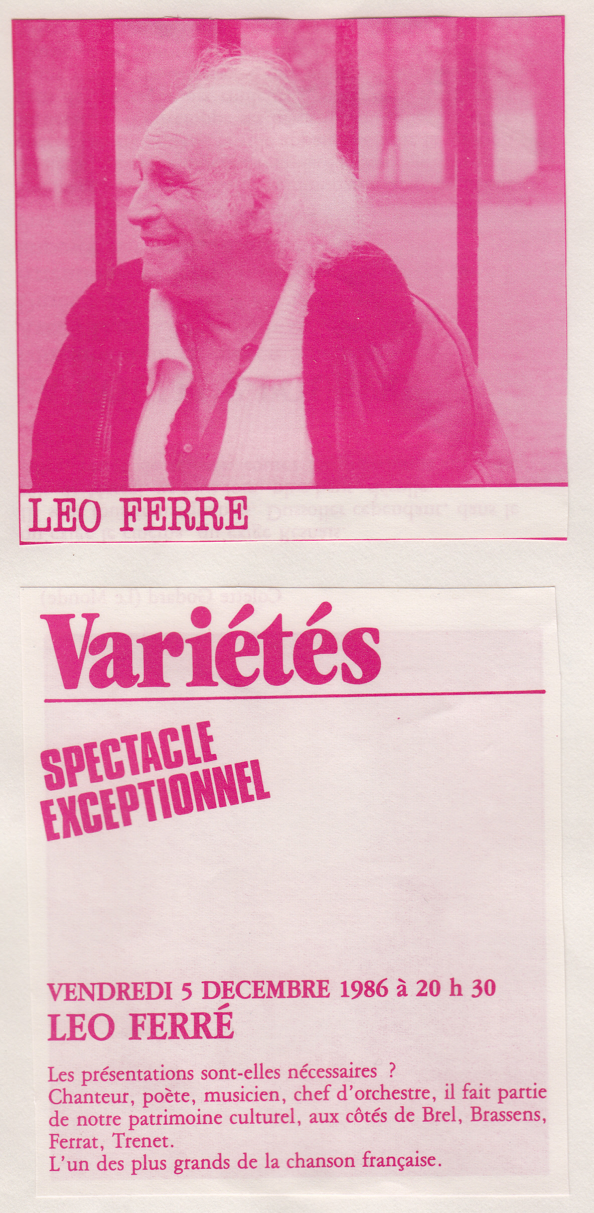 • Après 10 ans d'absence Léo Ferré Supplémentaire 1er avril
