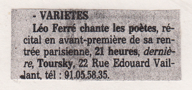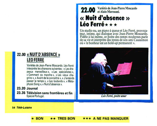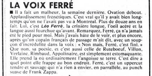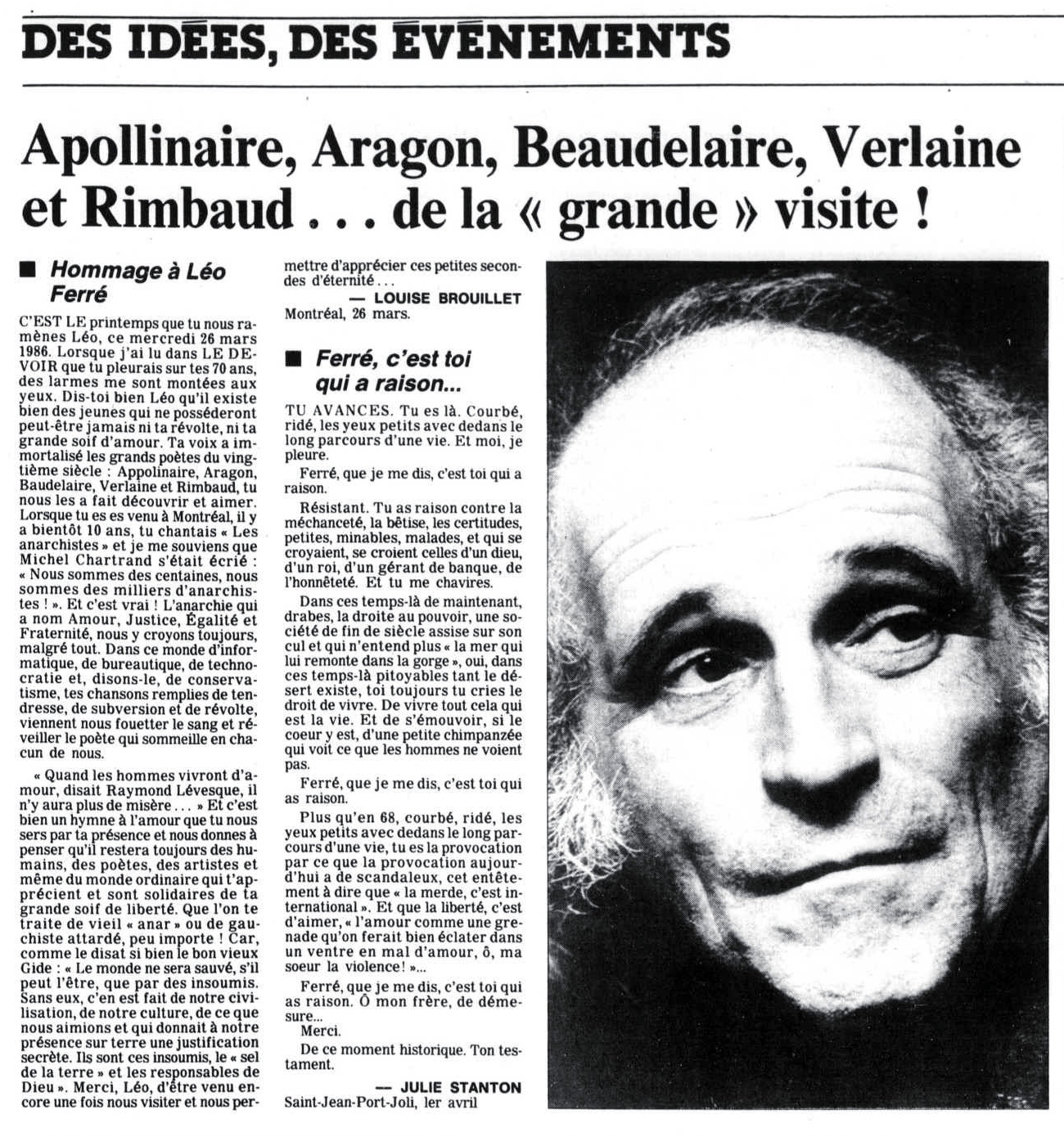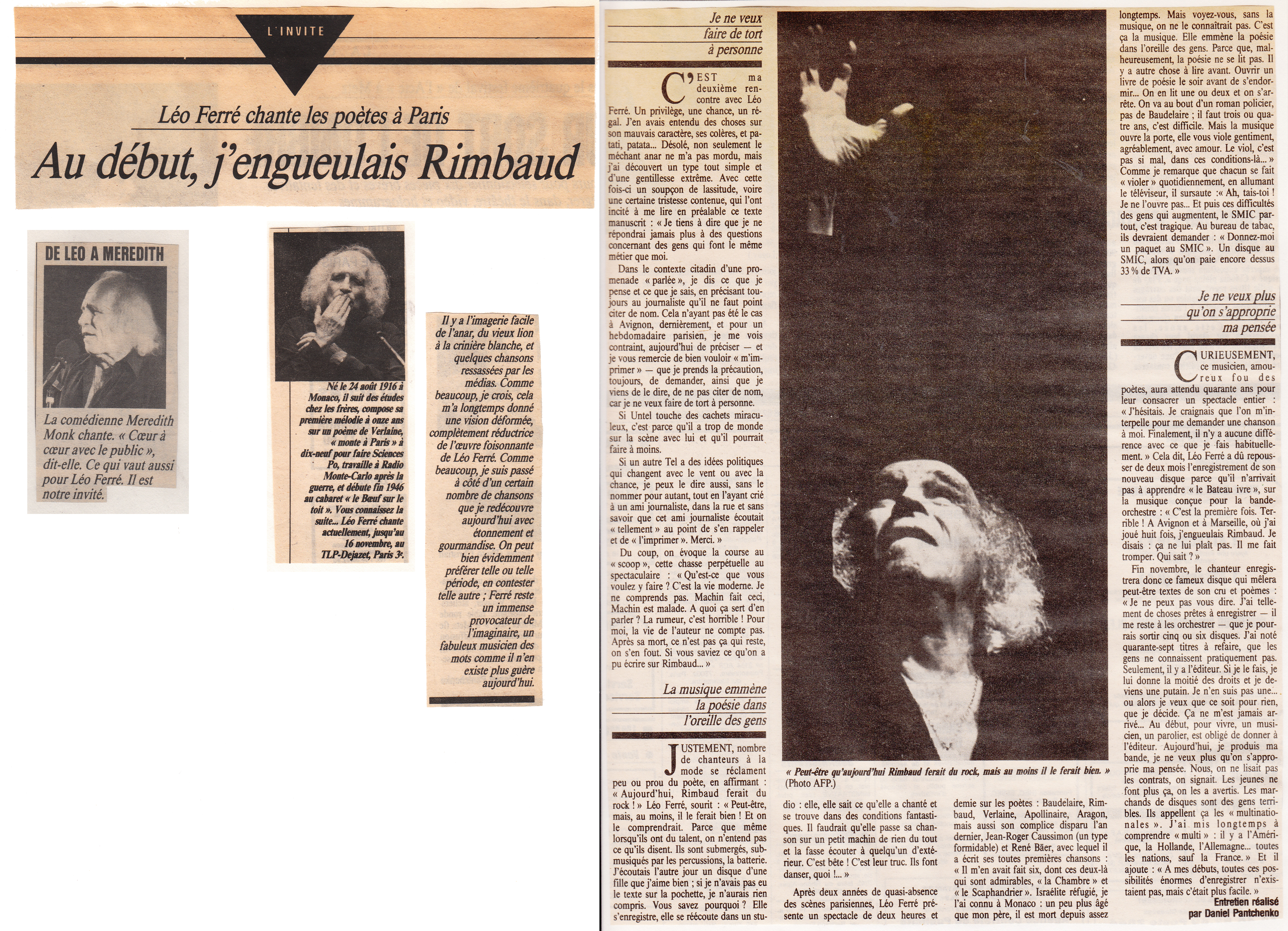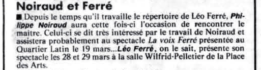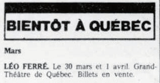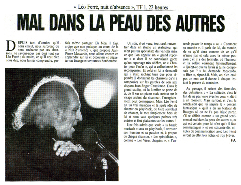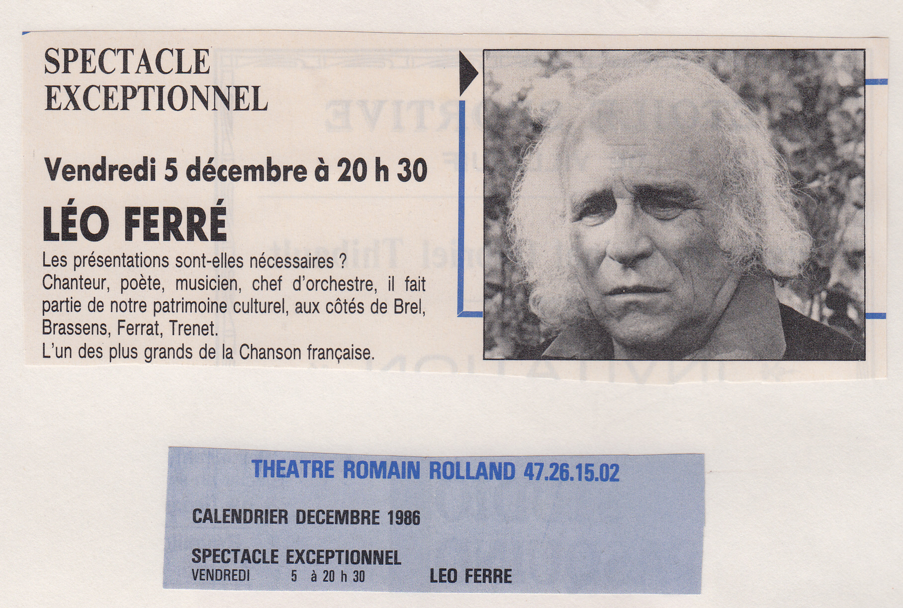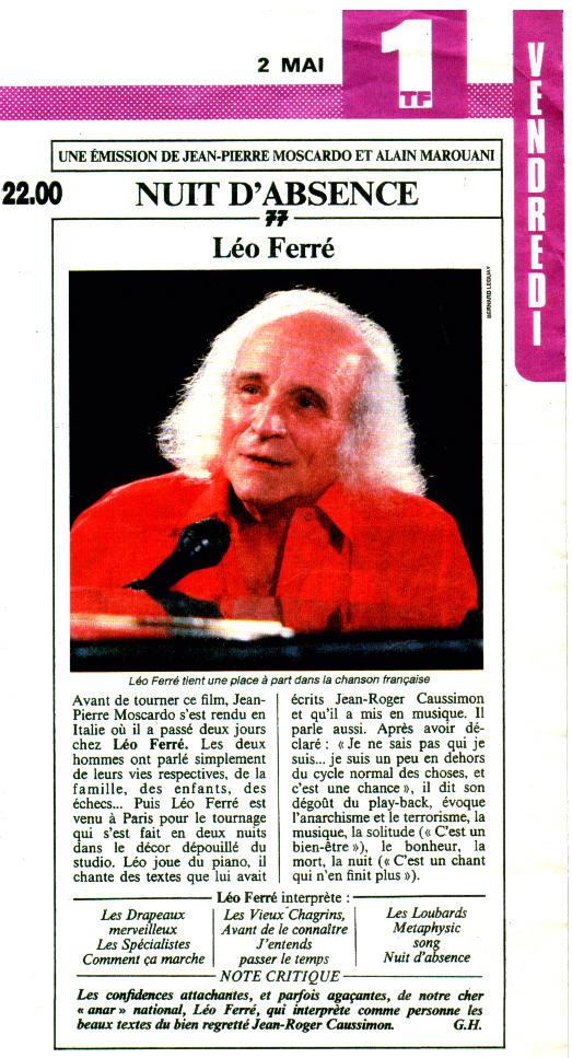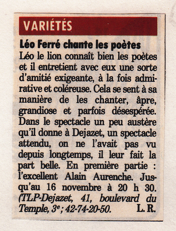 • Après 10 ans d'absence Léo Ferré Supplémentaire 1er avril
