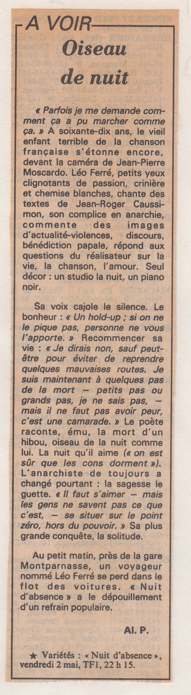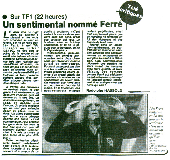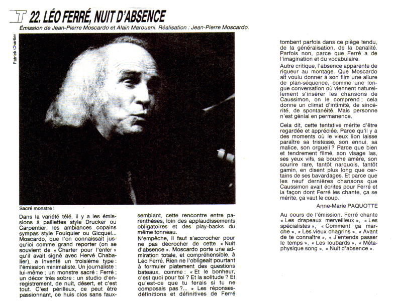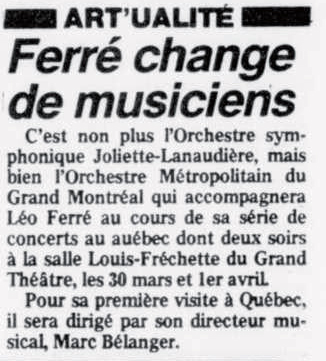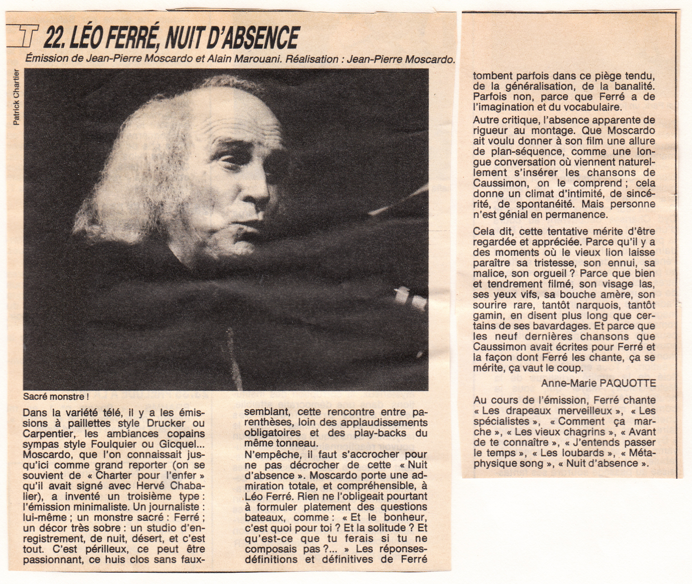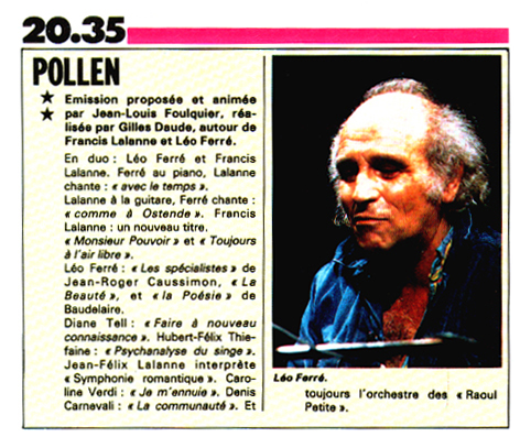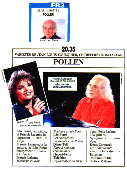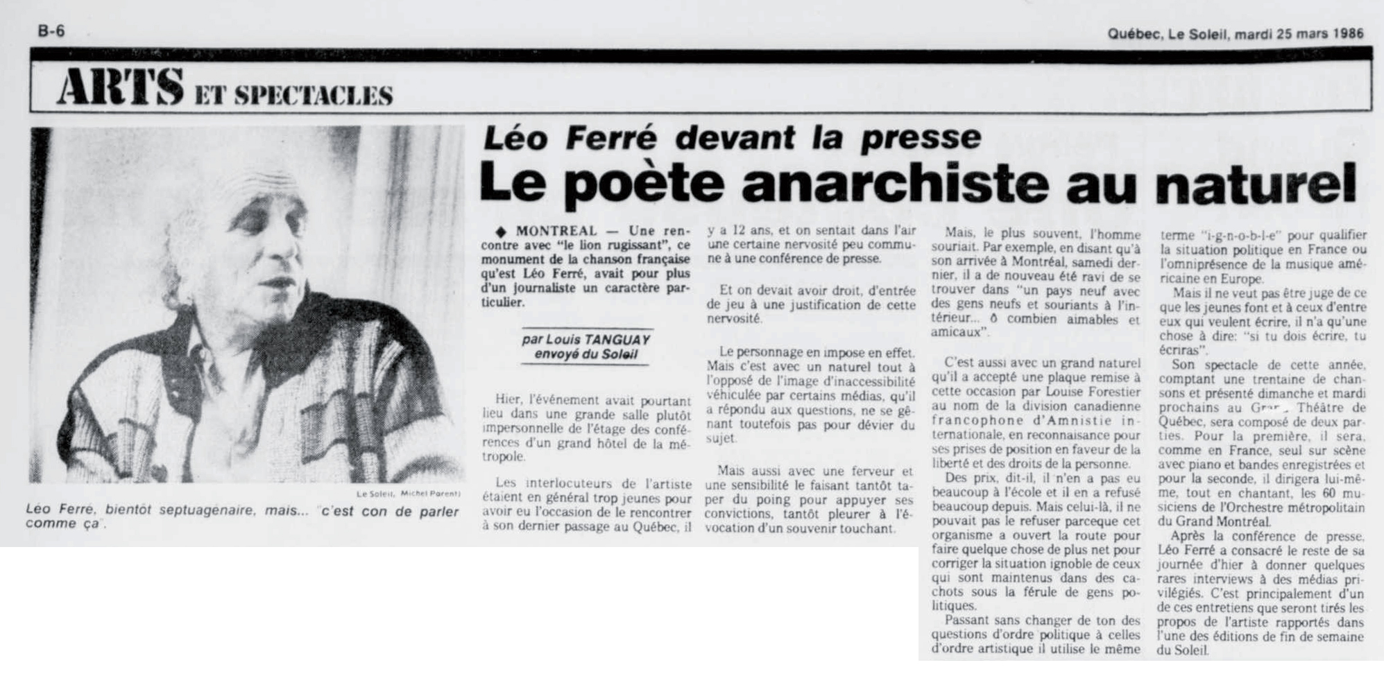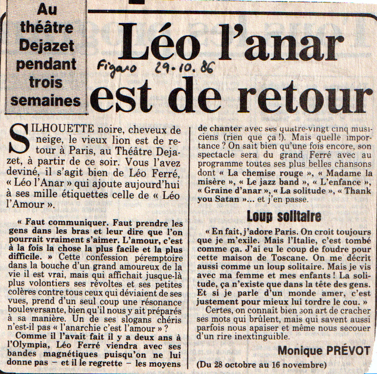 • Après 10 ans d'absence Léo Ferré Supplémentaire 1er avril