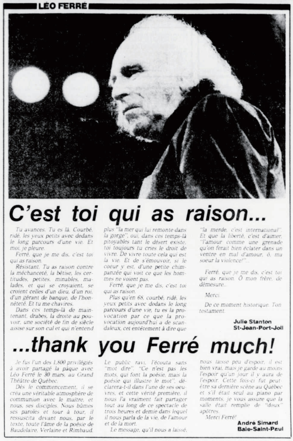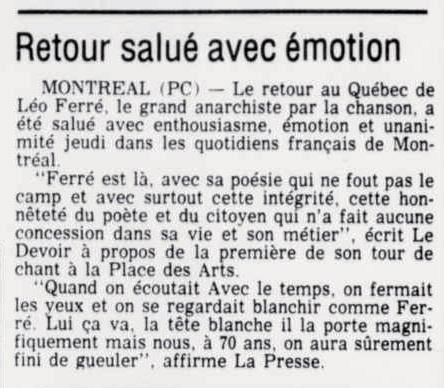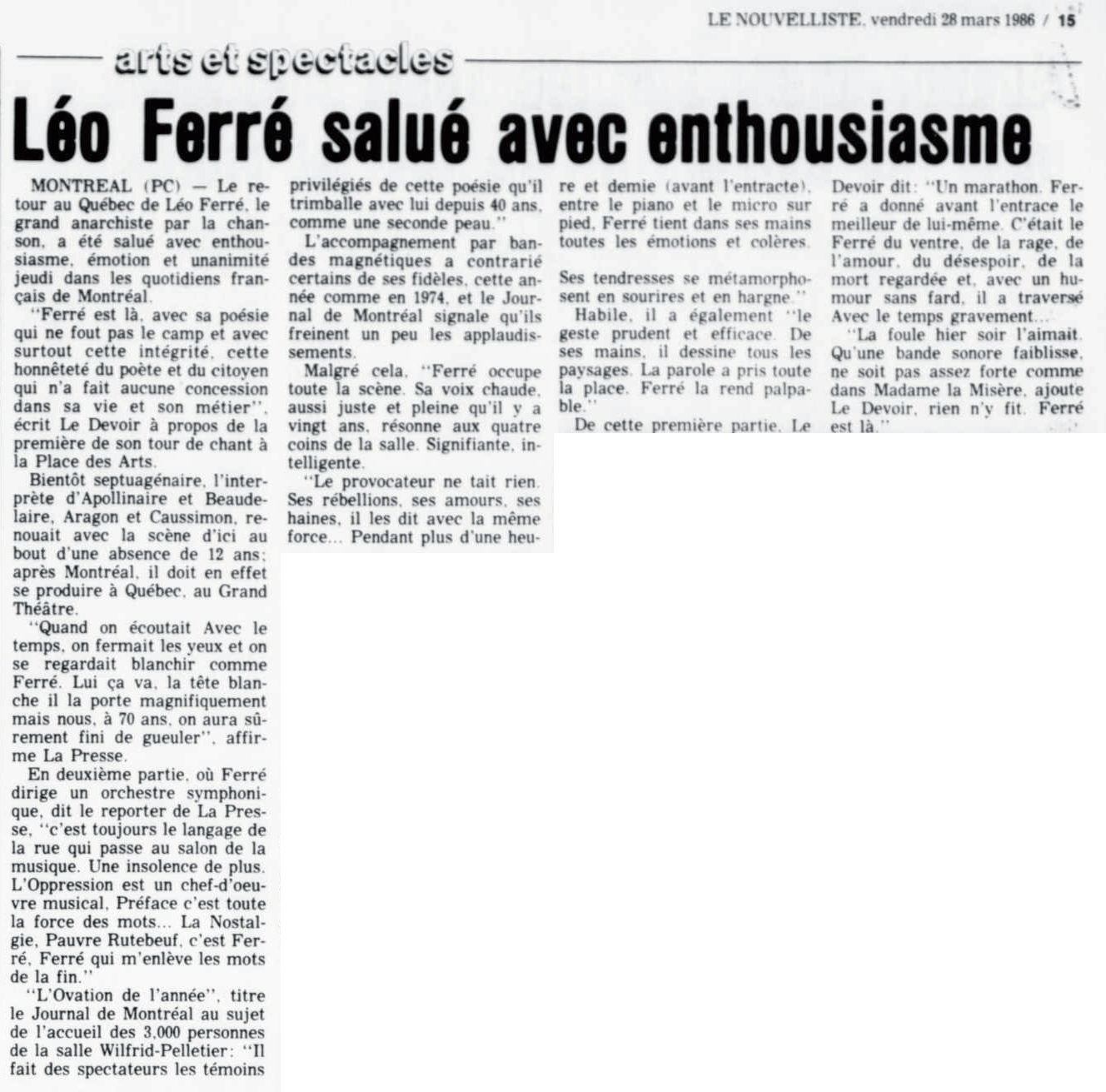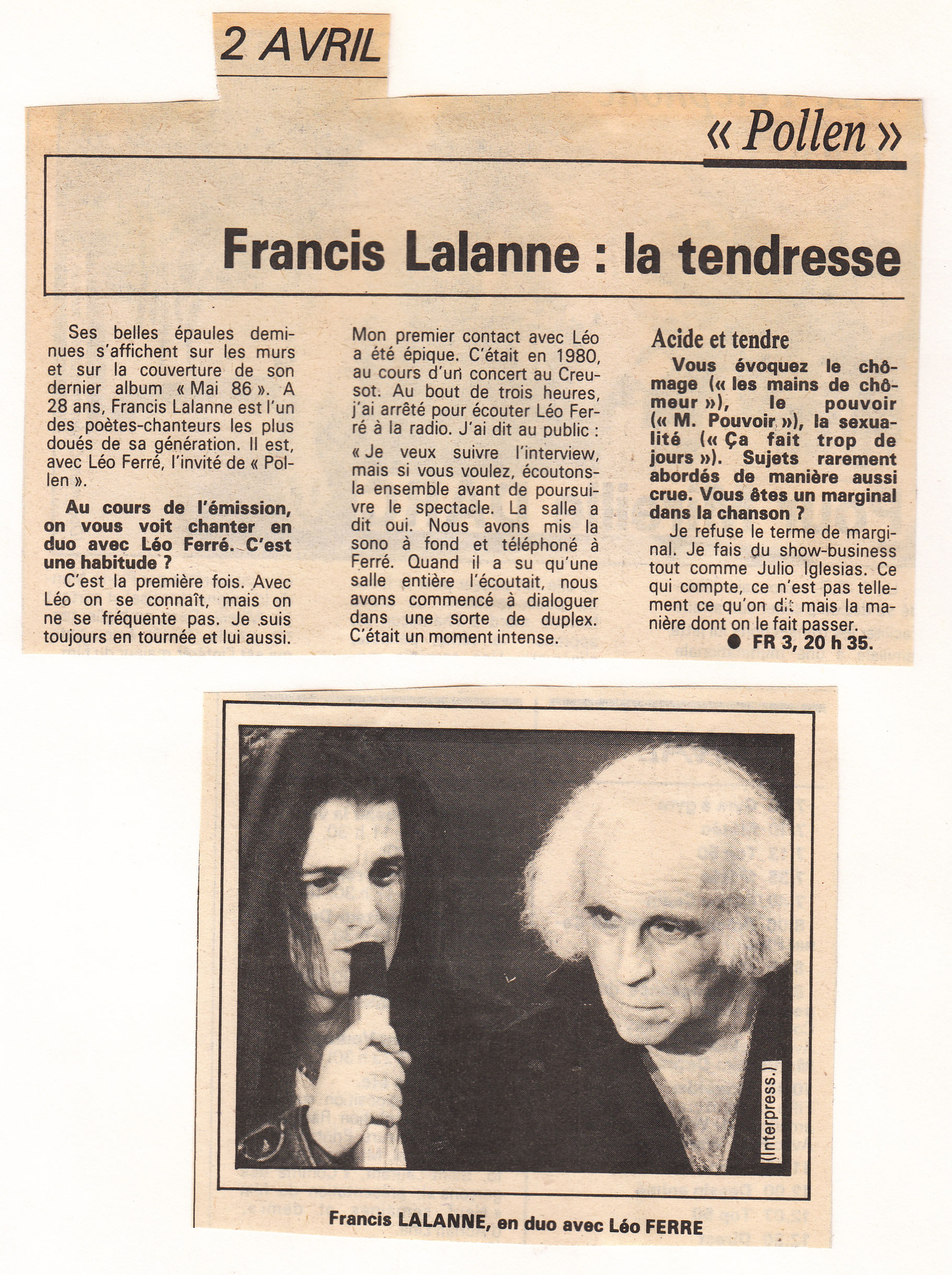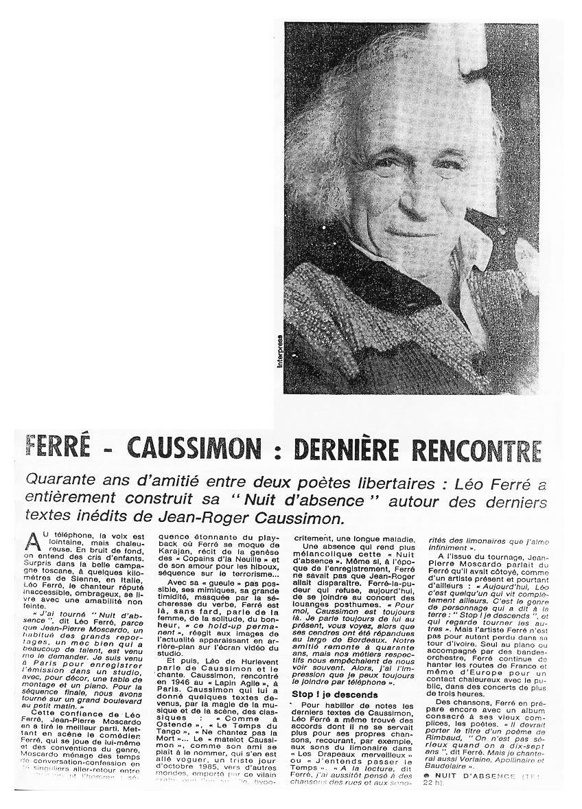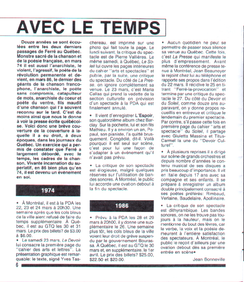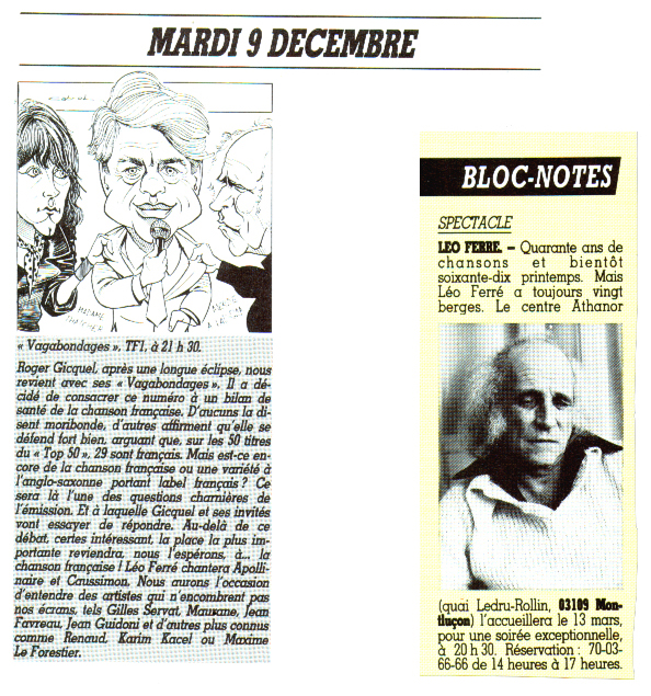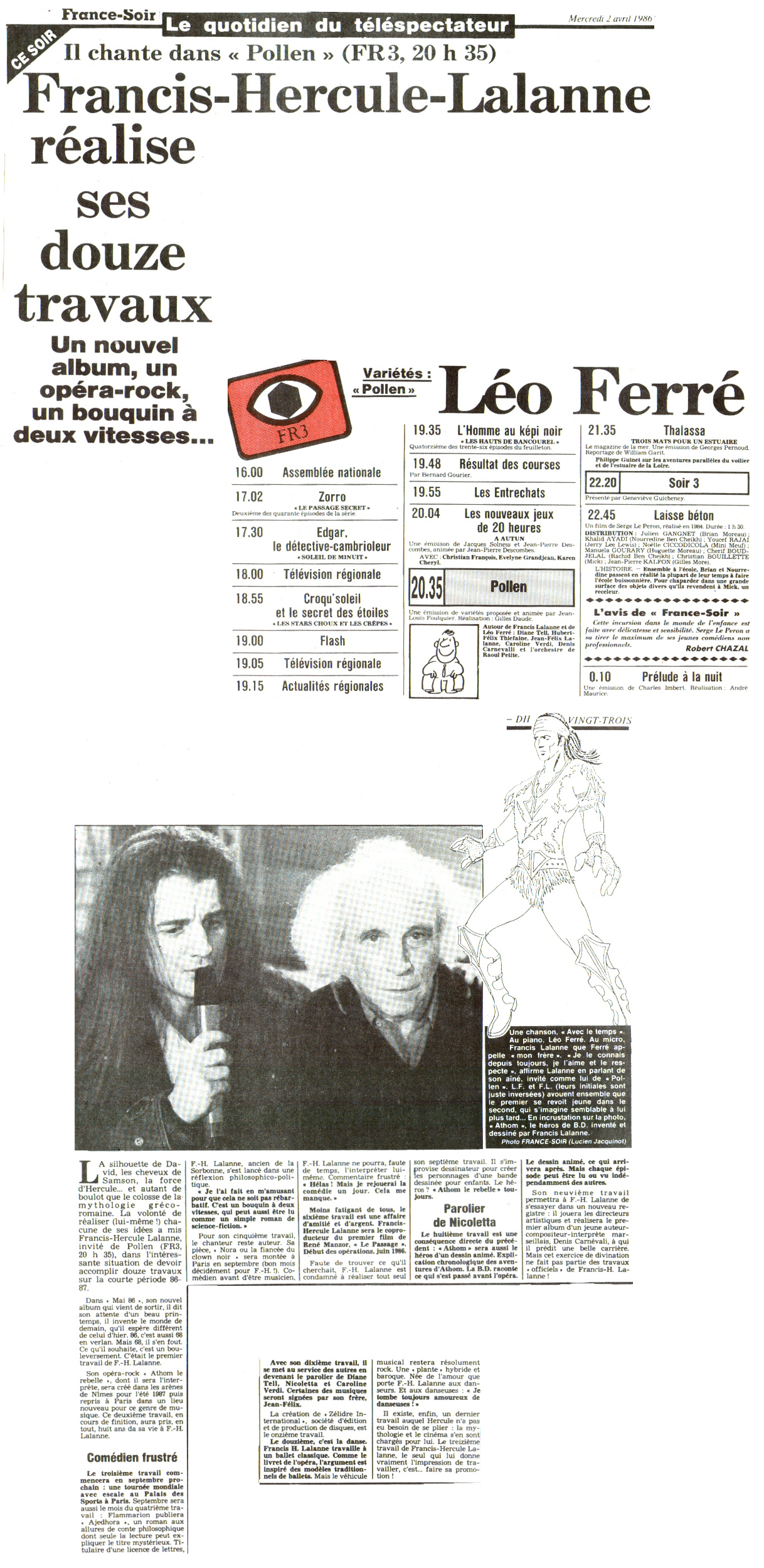 • Après 10 ans d'absence Léo Ferré Supplémentaire 1er avril