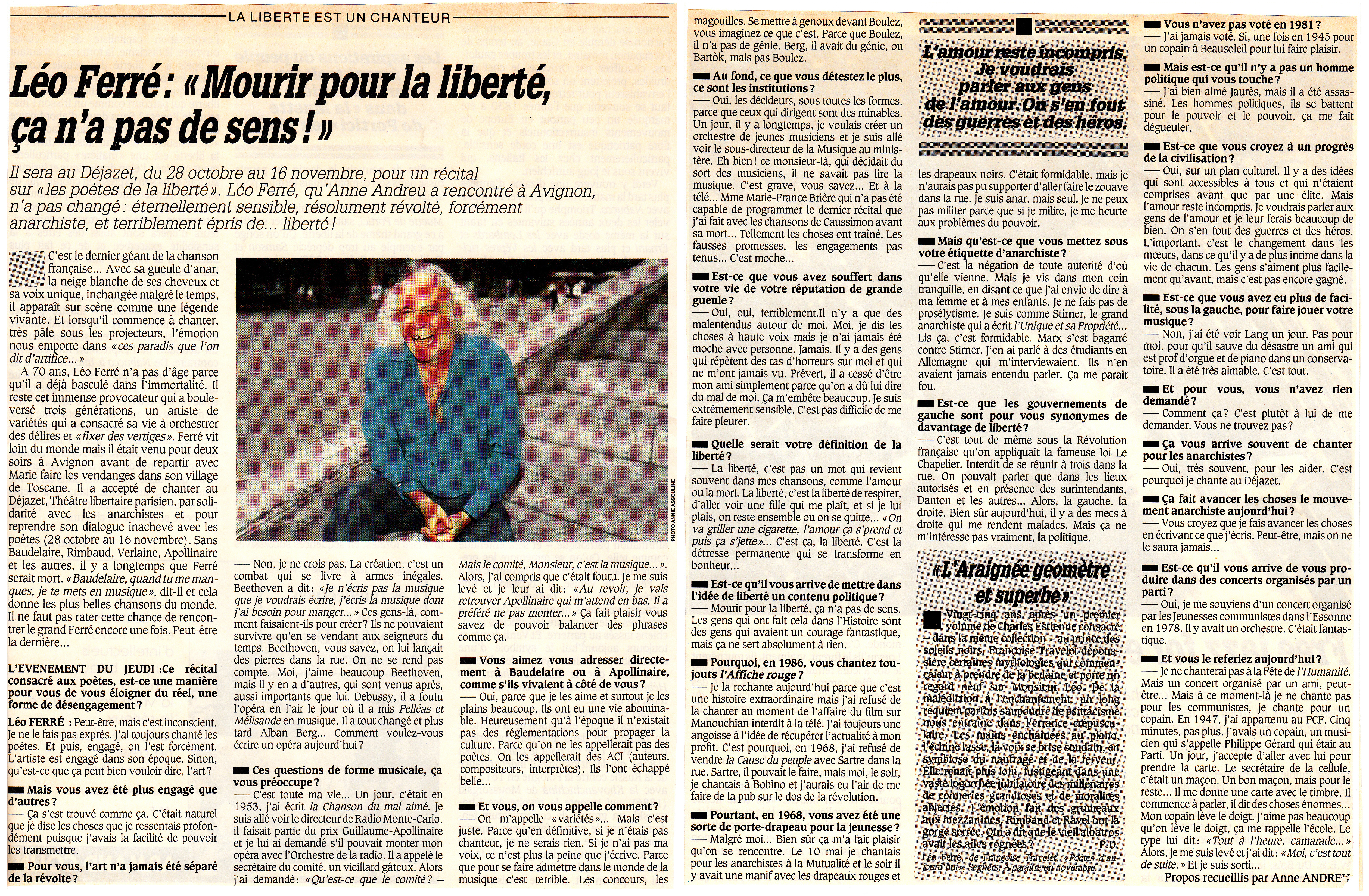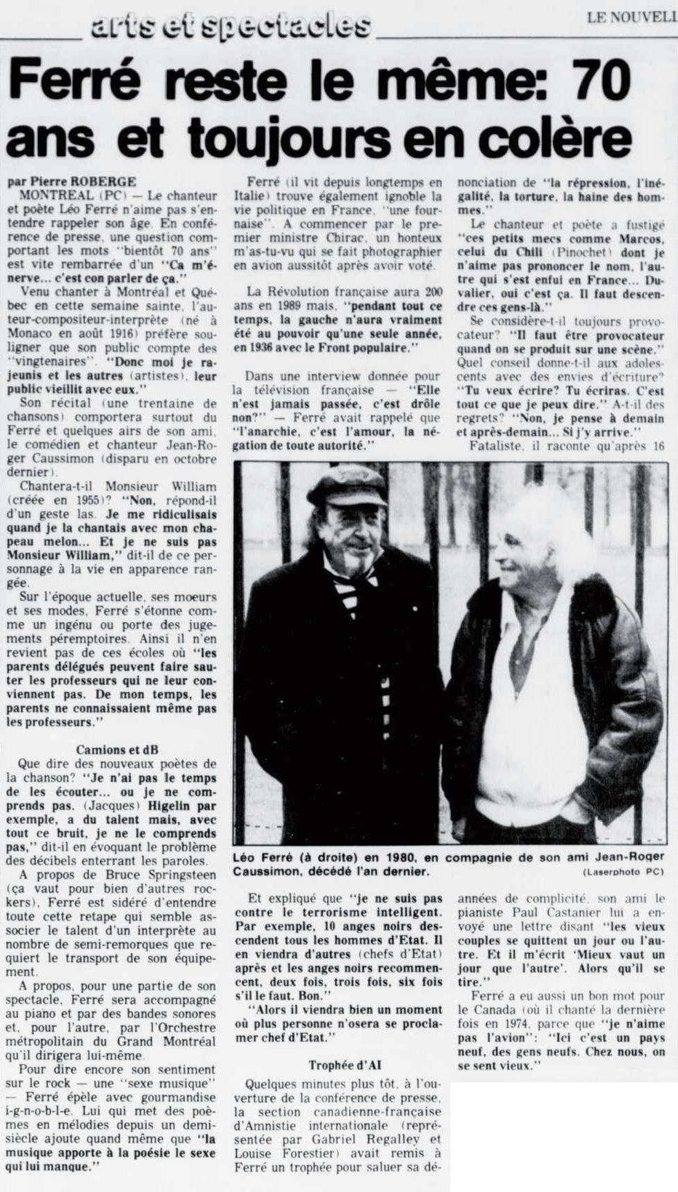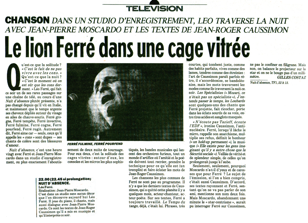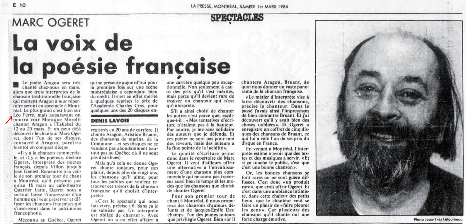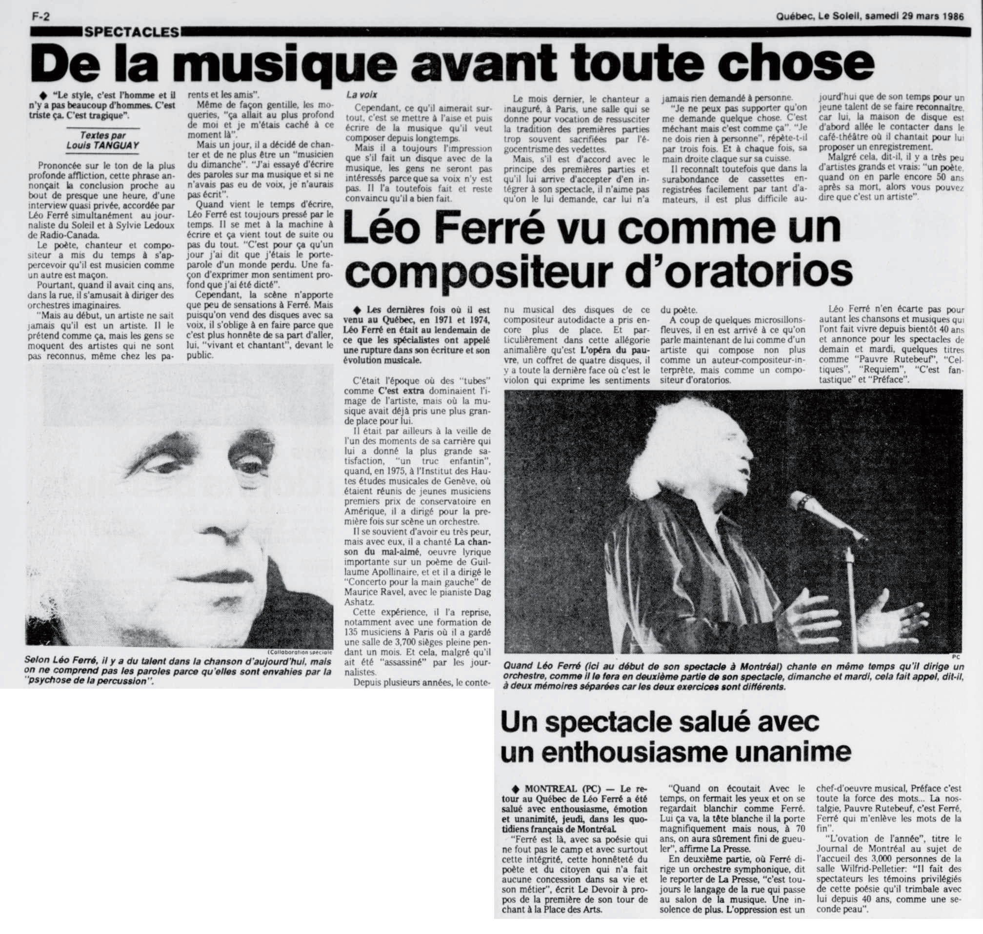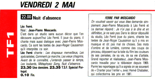 • Après 10 ans d'absence Léo Ferré Supplémentaire 1er avril