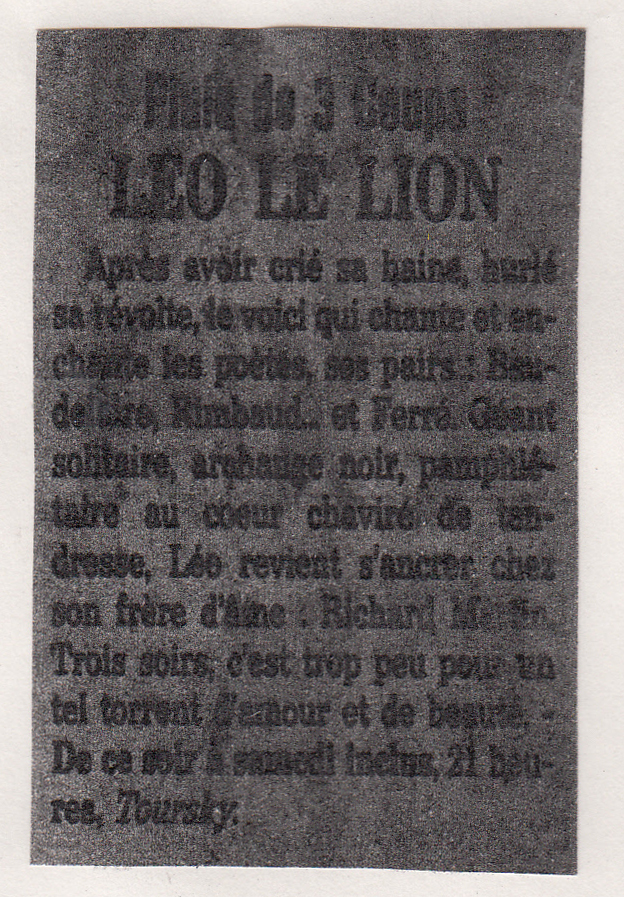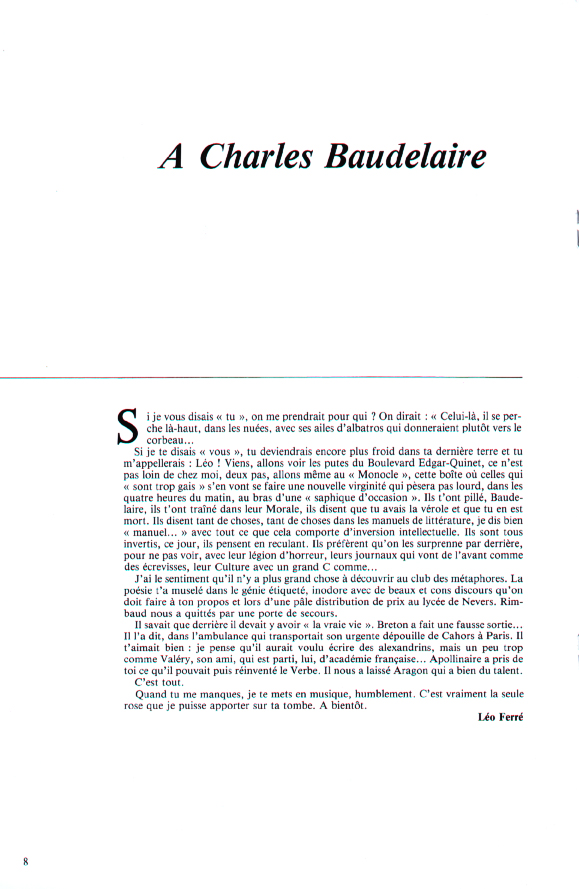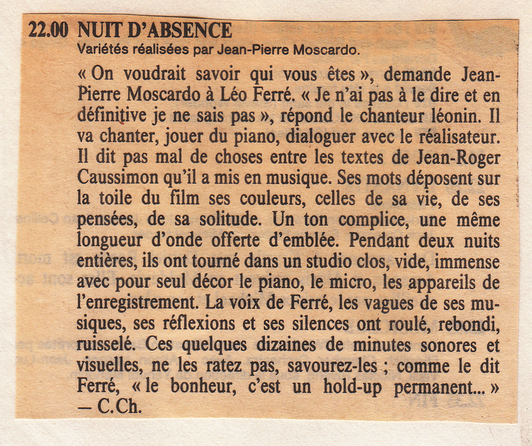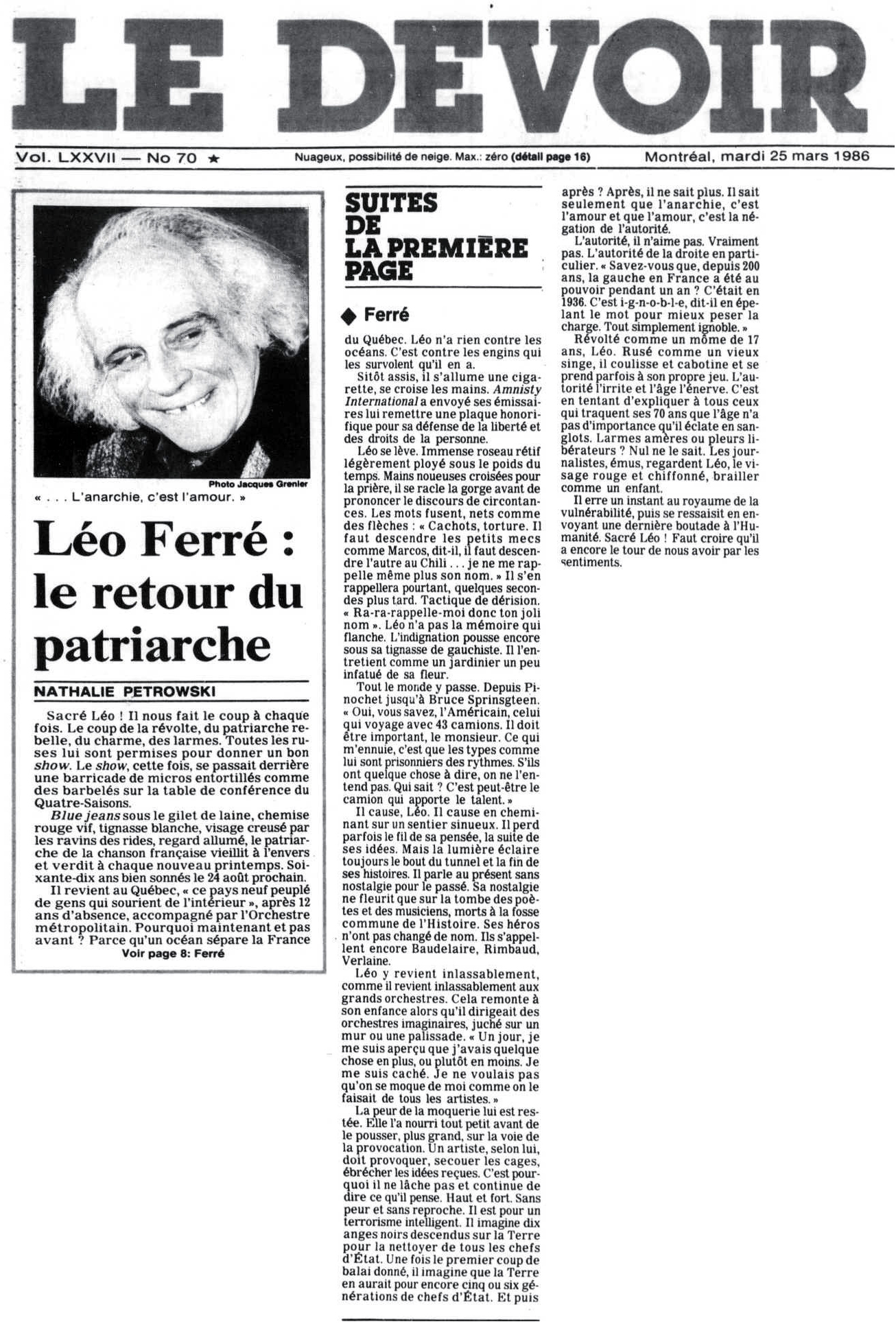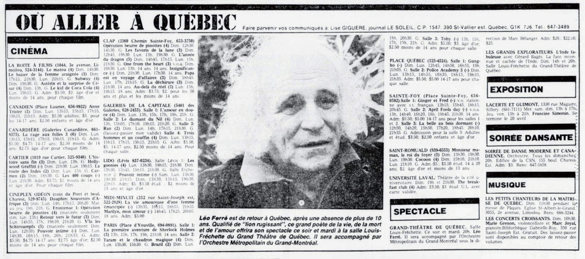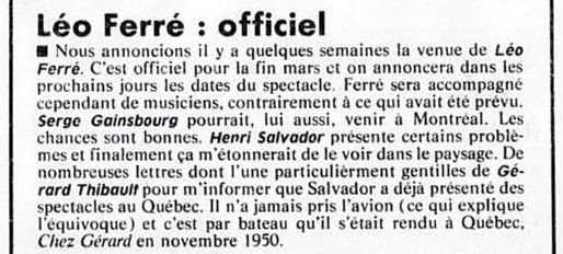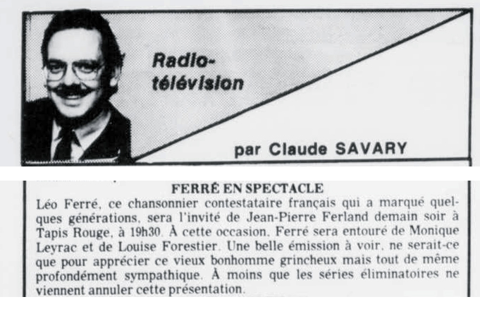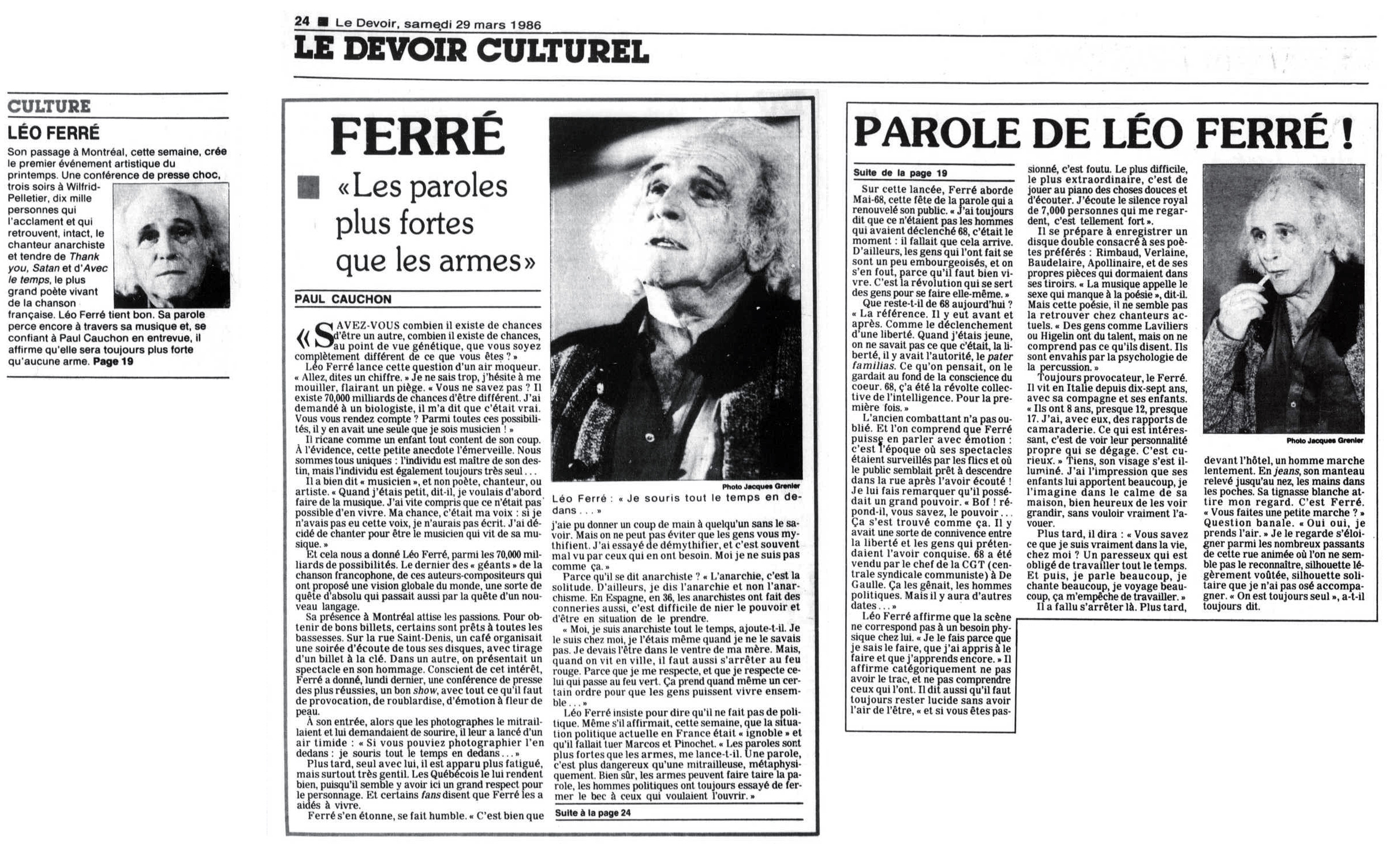 • Après 10 ans d'absence Léo Ferré Supplémentaire 1er avril