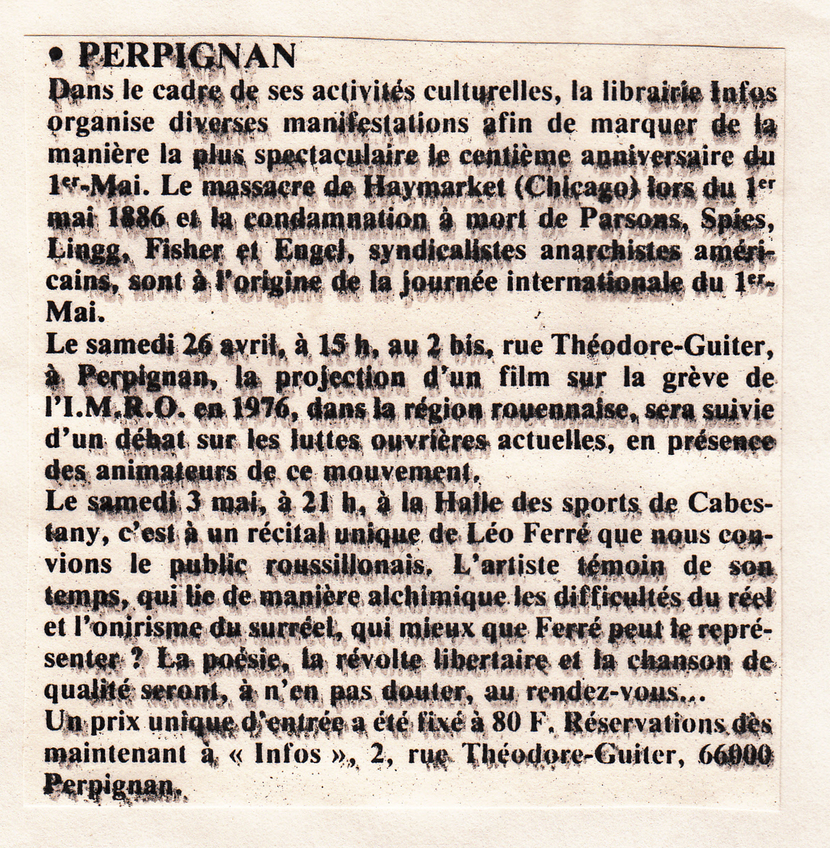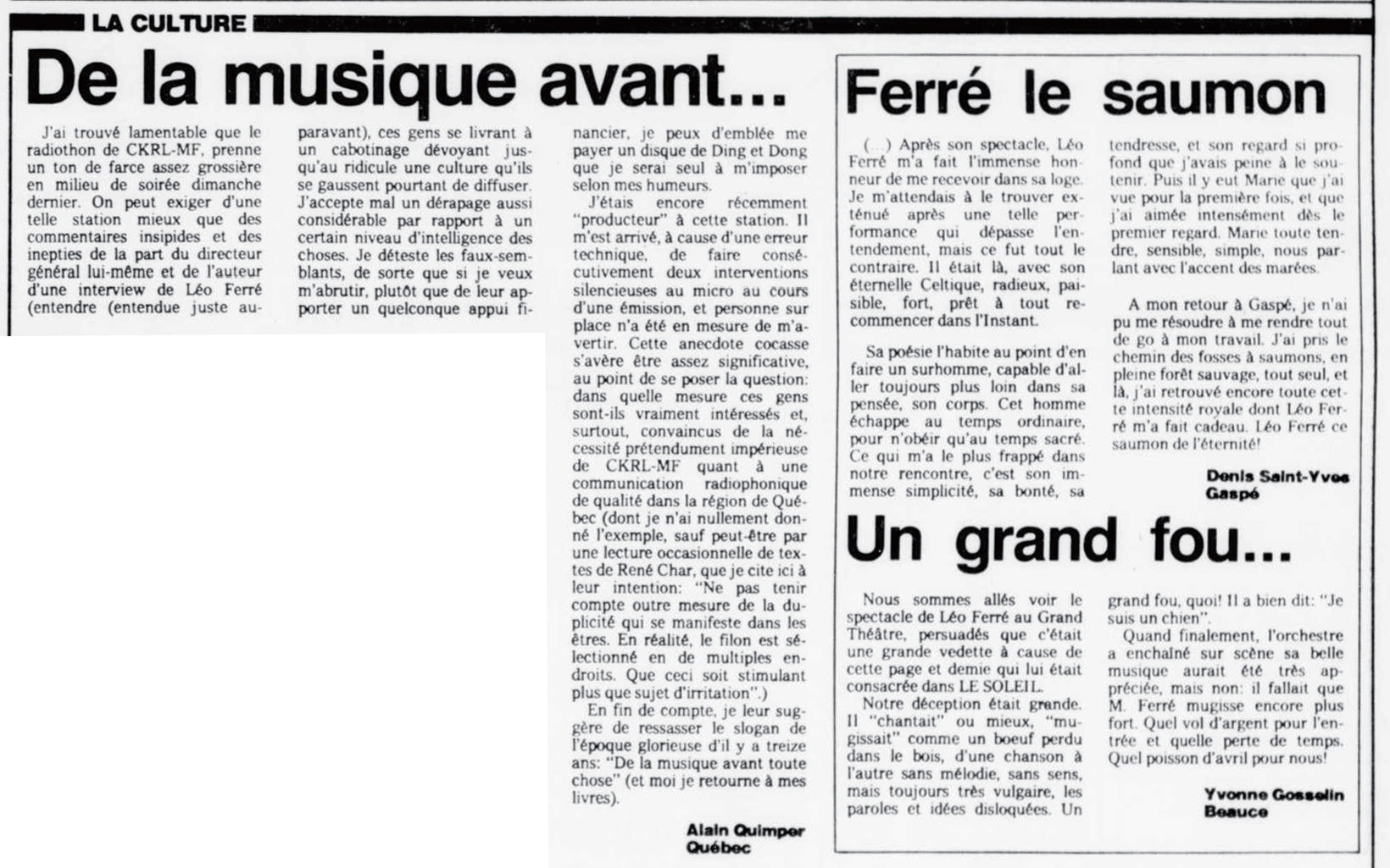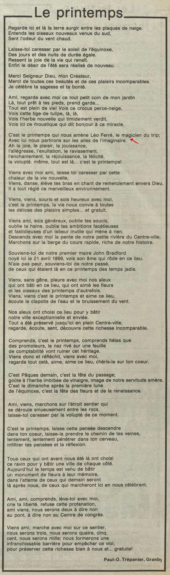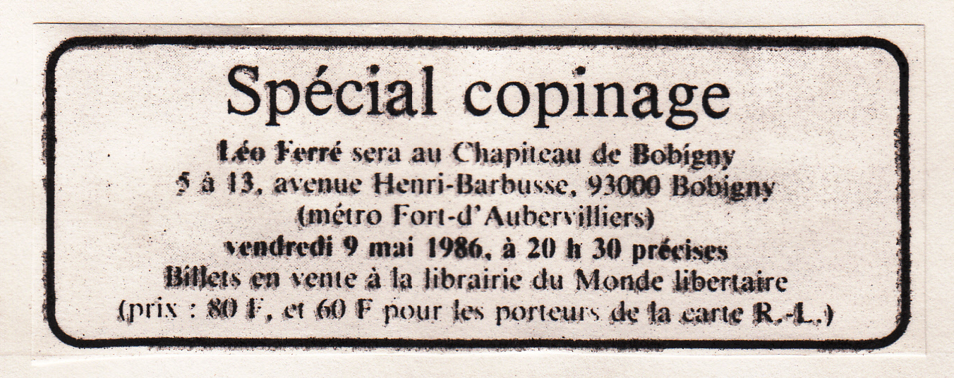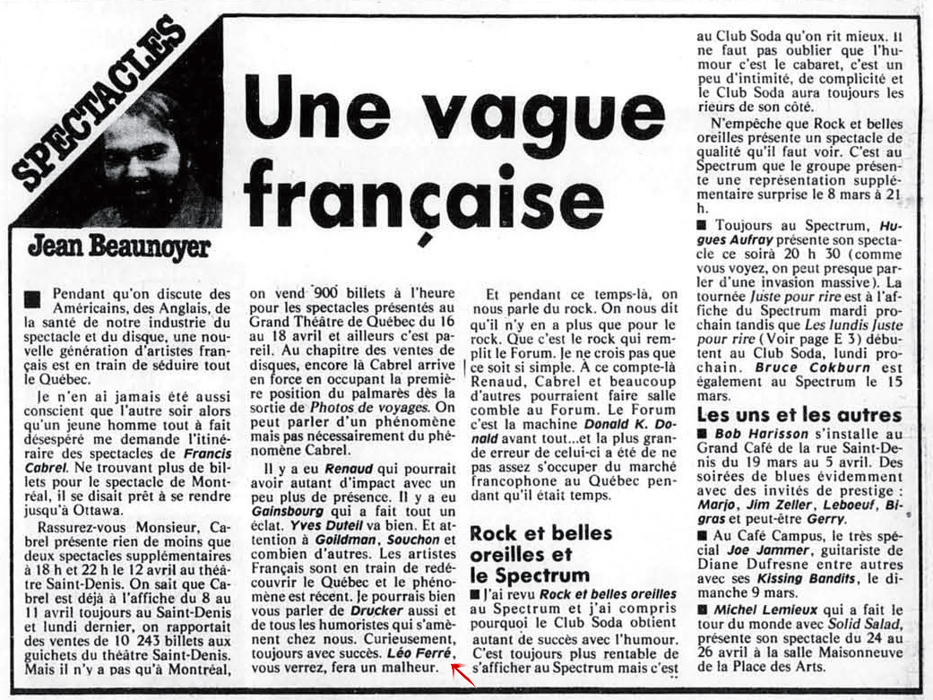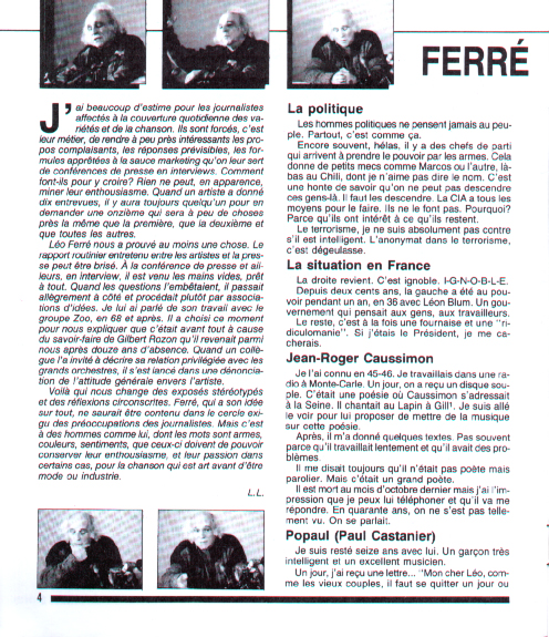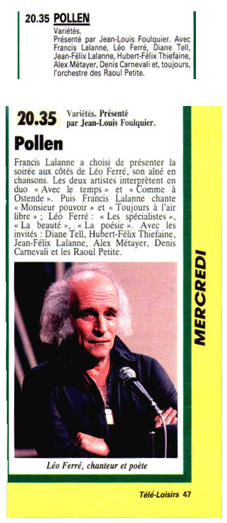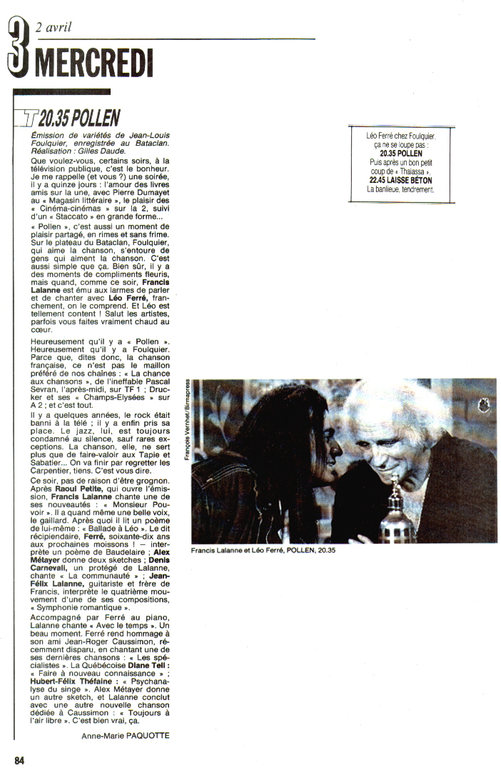 • Après 10 ans d'absence Léo Ferré Supplémentaire 1er avril