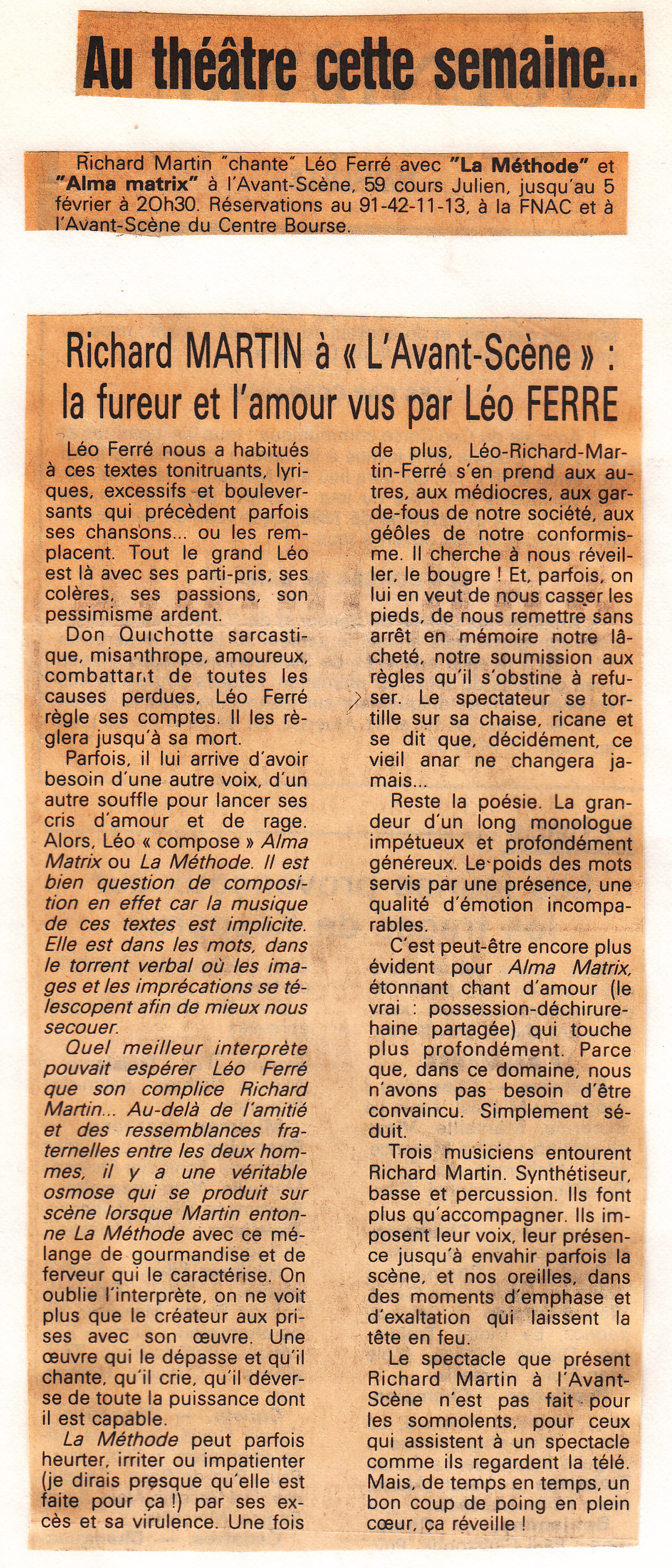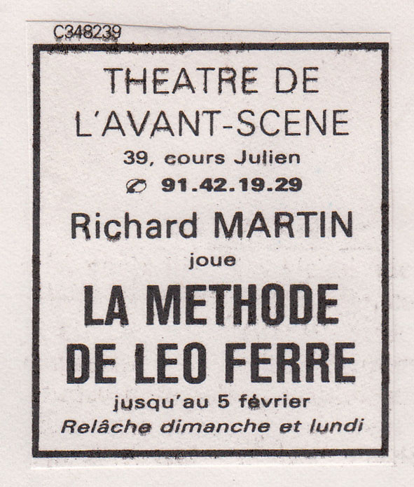 • Richard Martin à "L'Avant scène" : la fureur et l'amour vus par Léo Ferré