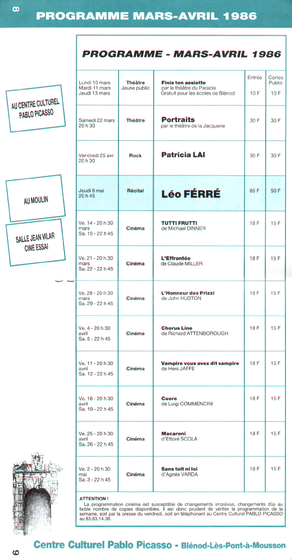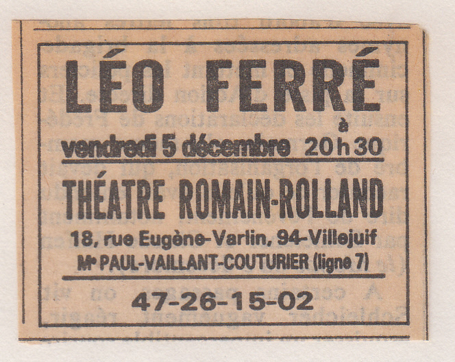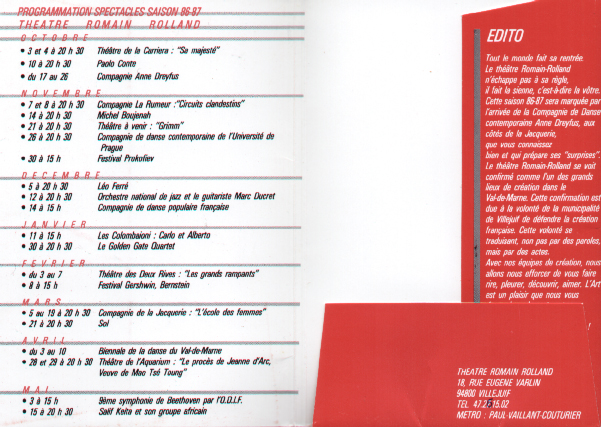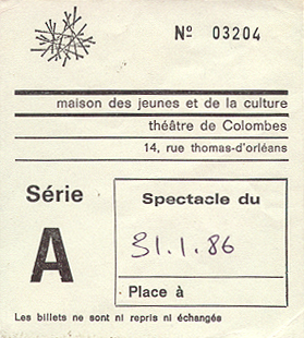 Villejuif, théâtre Romain Rolland du 05/12/1986