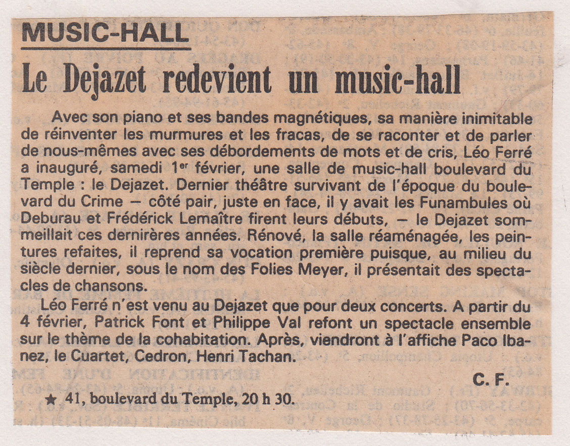 Au TLP Dejazet Music-Hall : ... et Léo Ferré