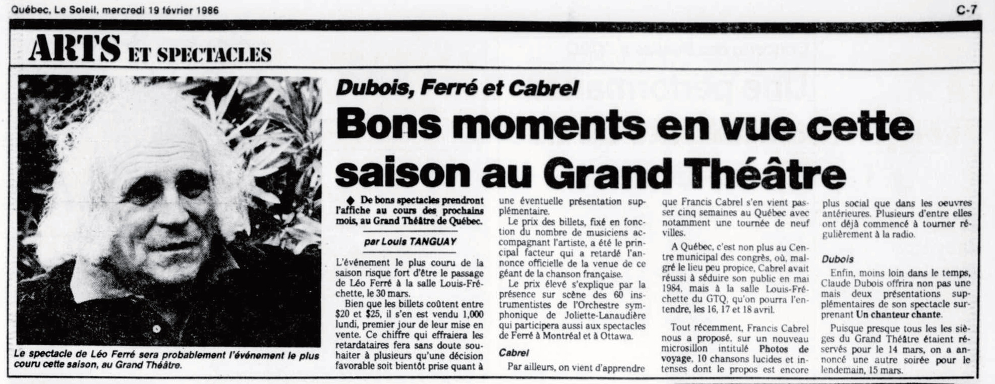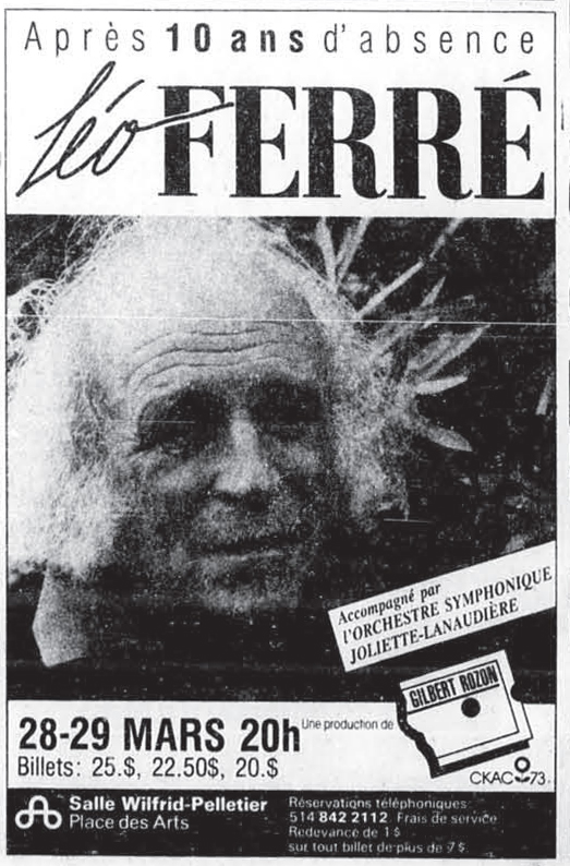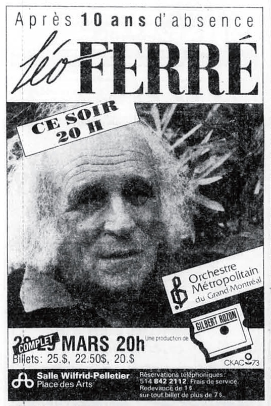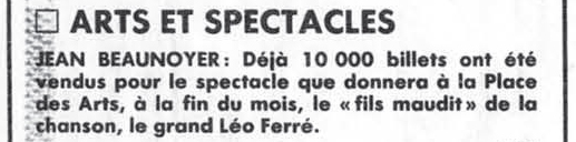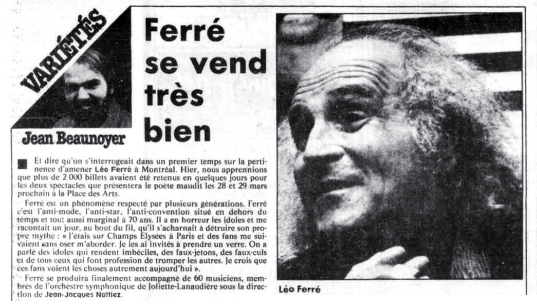 • À la Place des Arts, 10 000 billets vendus - Ferré, le fils maudit...
