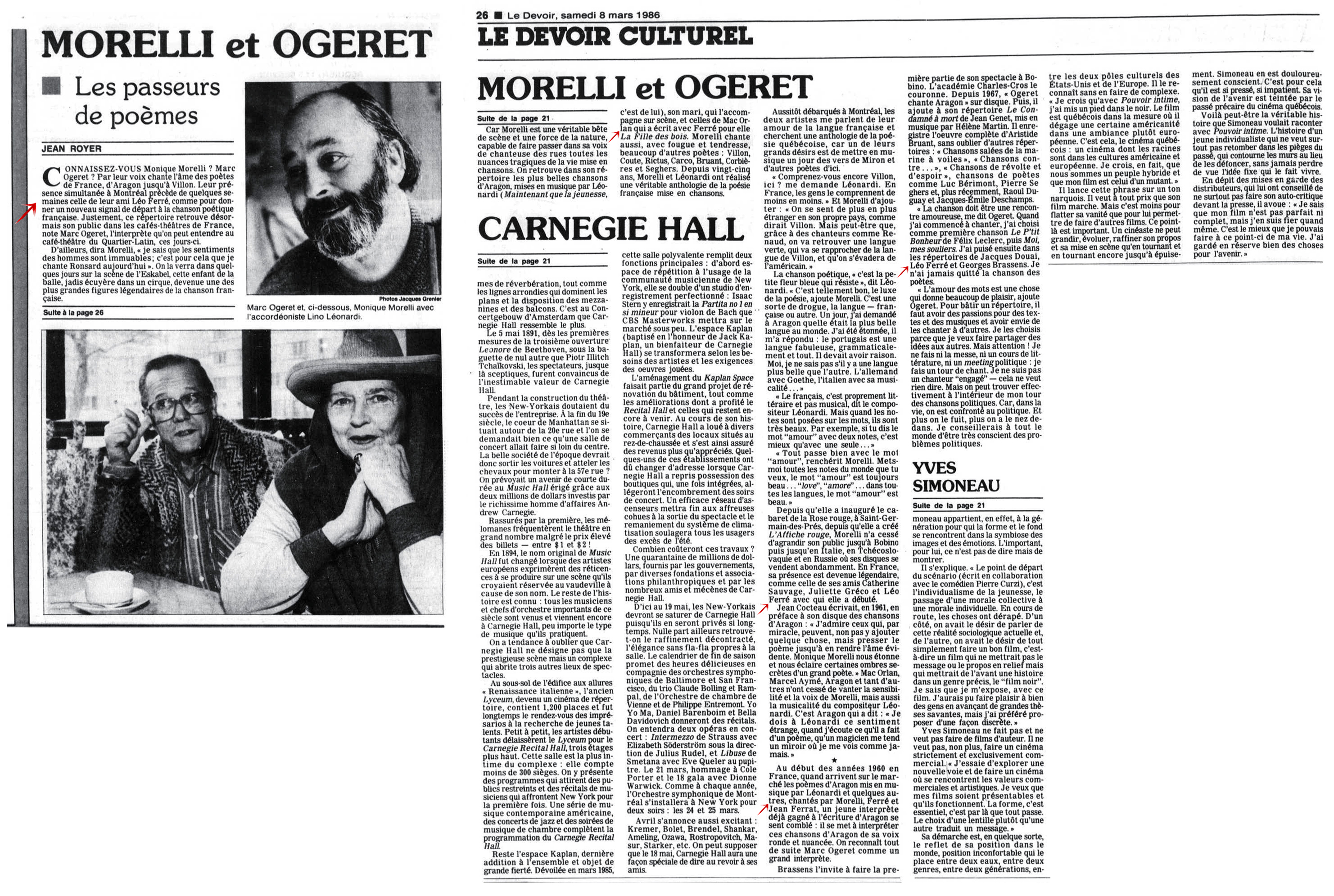 La Presse, 12 mars 1986, D. Arts et spectacles