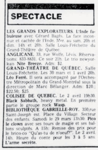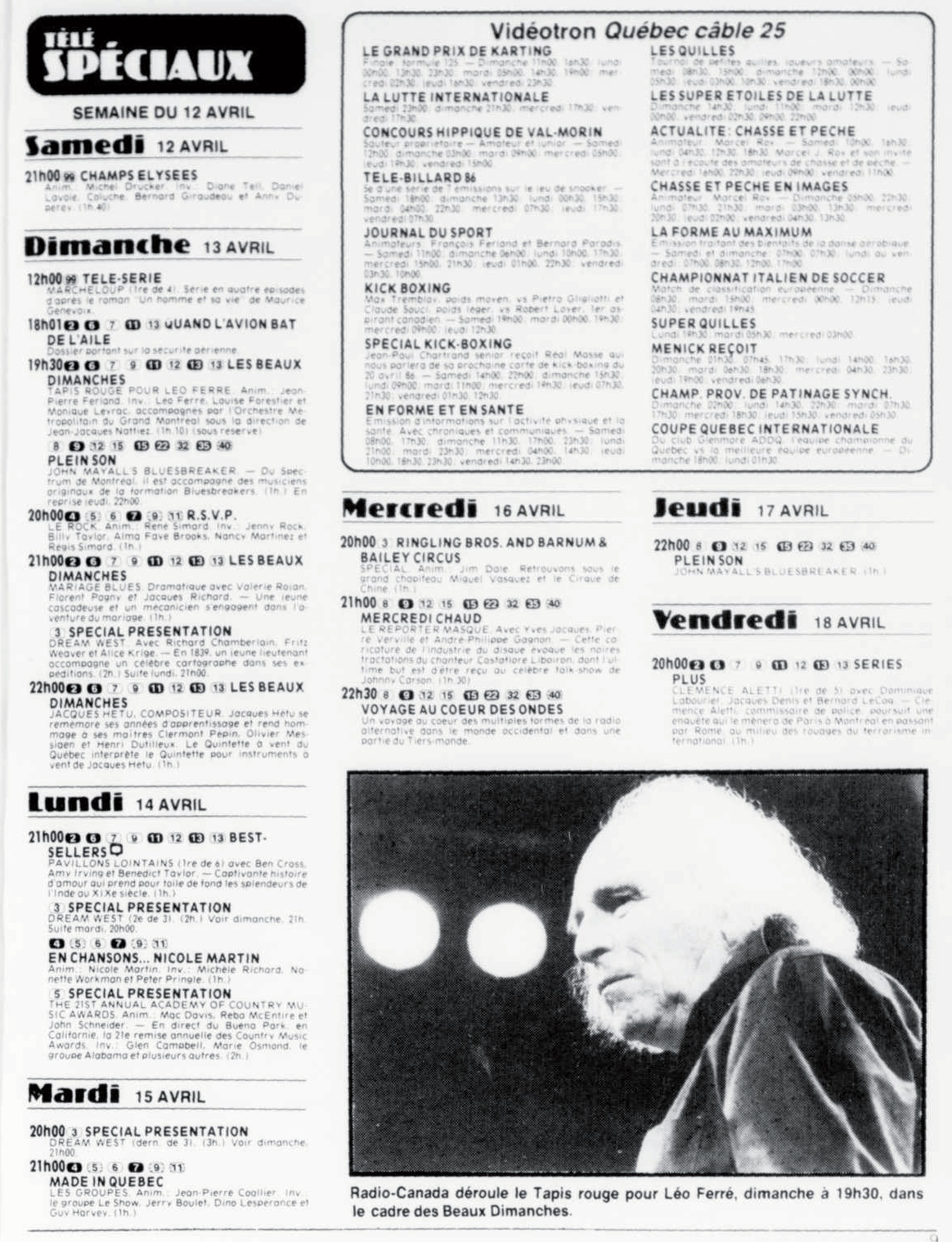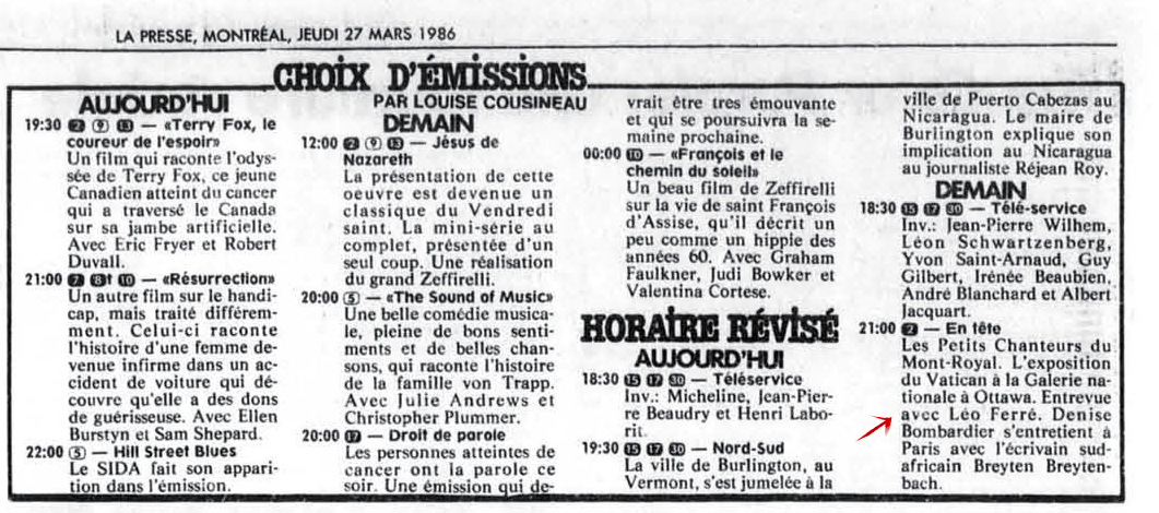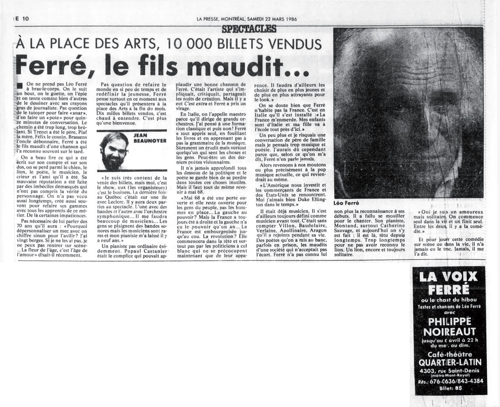 La Presse, 22 mars 1986, E. Arts et spectacles