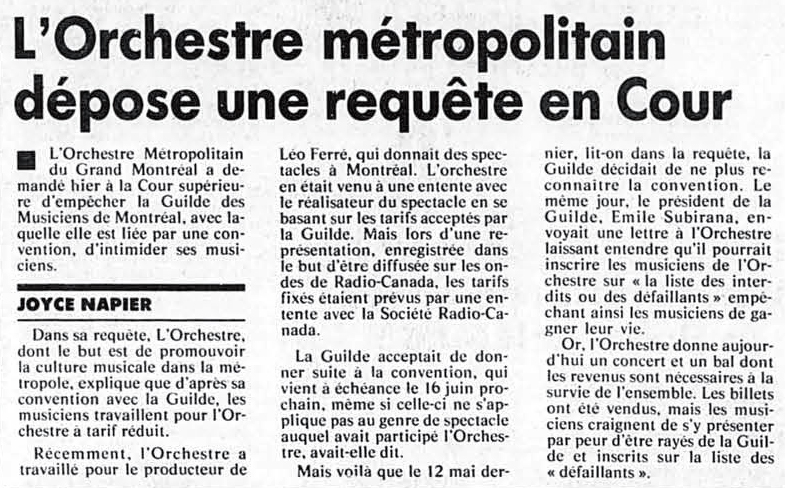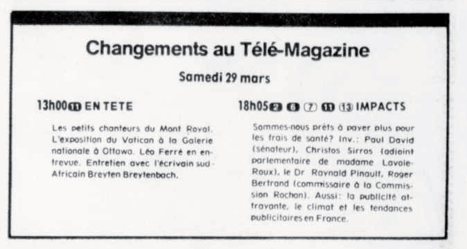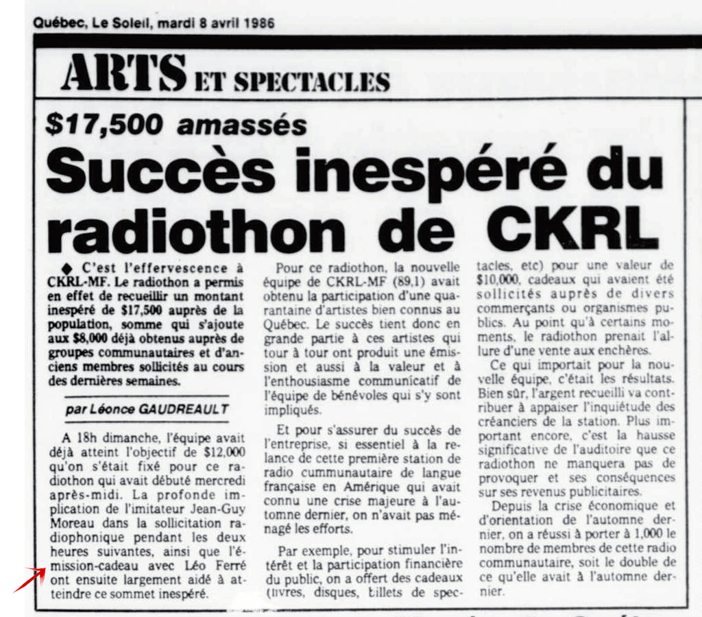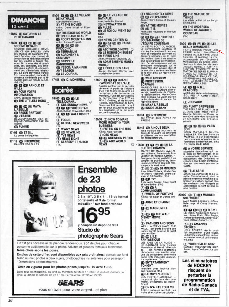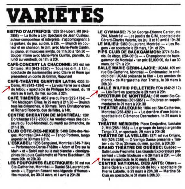 La Presse, 22 mars 1986, E. Arts et spectacles